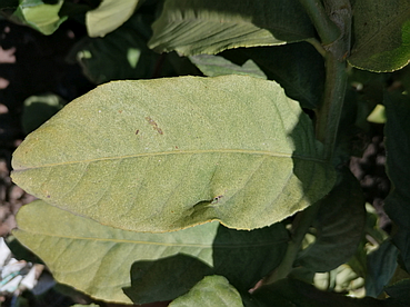 Records: in Madeira, E. africanus was collected in four locations and four host plants (Table 1). Mites were found mainly on the upper surface of the leaves, particularly near the mid-rib, and feeding damage was observed (Figure 3).