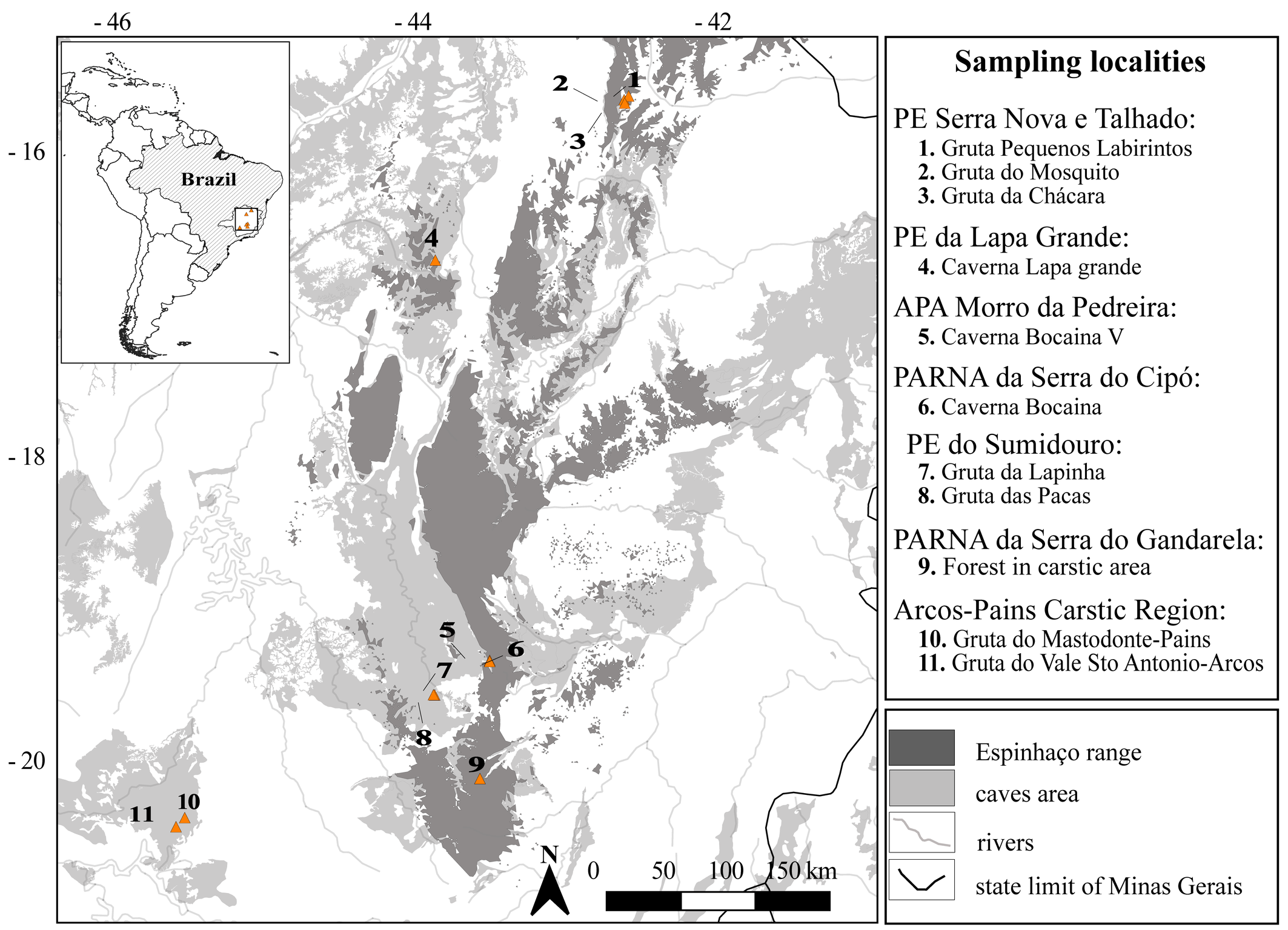 We are grateful to the Program for Technological Development in Tools for Health-PDTISFIOCRUZ for use of its facilities, especially to Renata de B. R. Oliveira who assisted with sequencing. This study was supported by resources from FAPEMIG-VALE (Edital 07/2018-Research in Speleology, process RDP 00107-18). The field trip to the Pains municipality region was supported by FAPEMIG-VALE (Edital 07/2018-Research in Speleology, process RDP-00079-18). ARP is supported by a PQ–2 CNPq fellowship (process 309979/2021-8) and BKGA and SGSC by a FAPEMIG scholarship (Graduate Support Program PAPG). SGSC thanks the Coordenação de Aperfeiçoamento de Pessoal de Nível Superior (CAPES – Print, Finance Code 001) for providing his scholarships. This study is part of the first author's PhD thesis in the post-graduation Program in Zoology-UFMG.