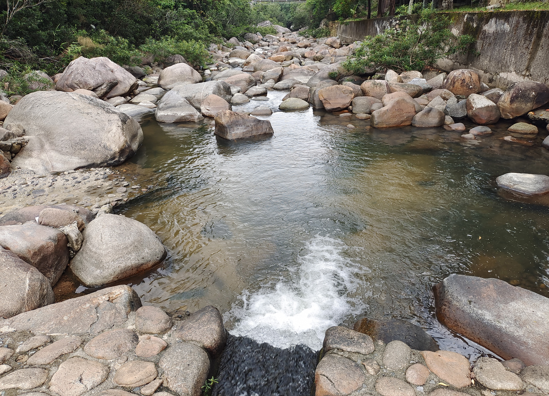Habitat — Stream with numerous rocks and aquatic plants at the bottom (Figure 13).