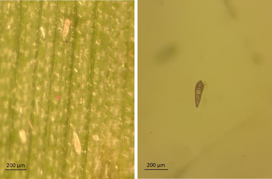 Although the mite has been discovered for decades, sampling protocols for SRM have not been developed or published yet. The microscopic sizes of females and males are only about 140–200 µm and 120–180 µm long, respectively, making mites' observation and detection very challenging and hindering the sampling program development. Consequently, SRM scouting will be laborious and time-consuming to be accurately quantified, especially when a large sample size must be taken, and mite populations are large to be counted, if it is needed.