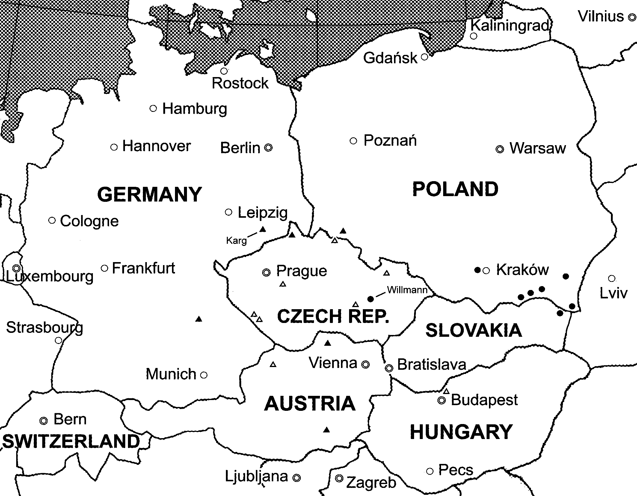 The material under study was collected during faunal research in Austria, Czech Republic, Germany, Poland and Slovakia. Mites were routinely extracted from forest litter into 70% ethanol using Berlese funnels, mounted in Hoyer's medium on glass slides, cured for several days in an oven (60° C), and studied using an Olympus BX51 microscope, fitted with a drawing tube. All measurements are expressed in micrometres, taken as follows: idiosoma measurements were made along the sagittal line (length), and at the widest place (width); setal lengths were measured from the alveolus to the apex of the seta; the peritreme length was measured, including the stigma; Ta IV was measured without the apotele. Drawings were made with the aid of Corel Draw X8 and a Wacom Intuos Graphic Tablet. The system of dorsal, ventral, palp and leg setal notations was based on Evans and Till (1979), and the poroidotaxy and adenotaxy on Moraza and Peña (2005), with some necessary adjustments for Parasitidae. In the species under study both females and males were available, but the developmental stages were not present. The points where both species were collected to date are present in Figure 12.