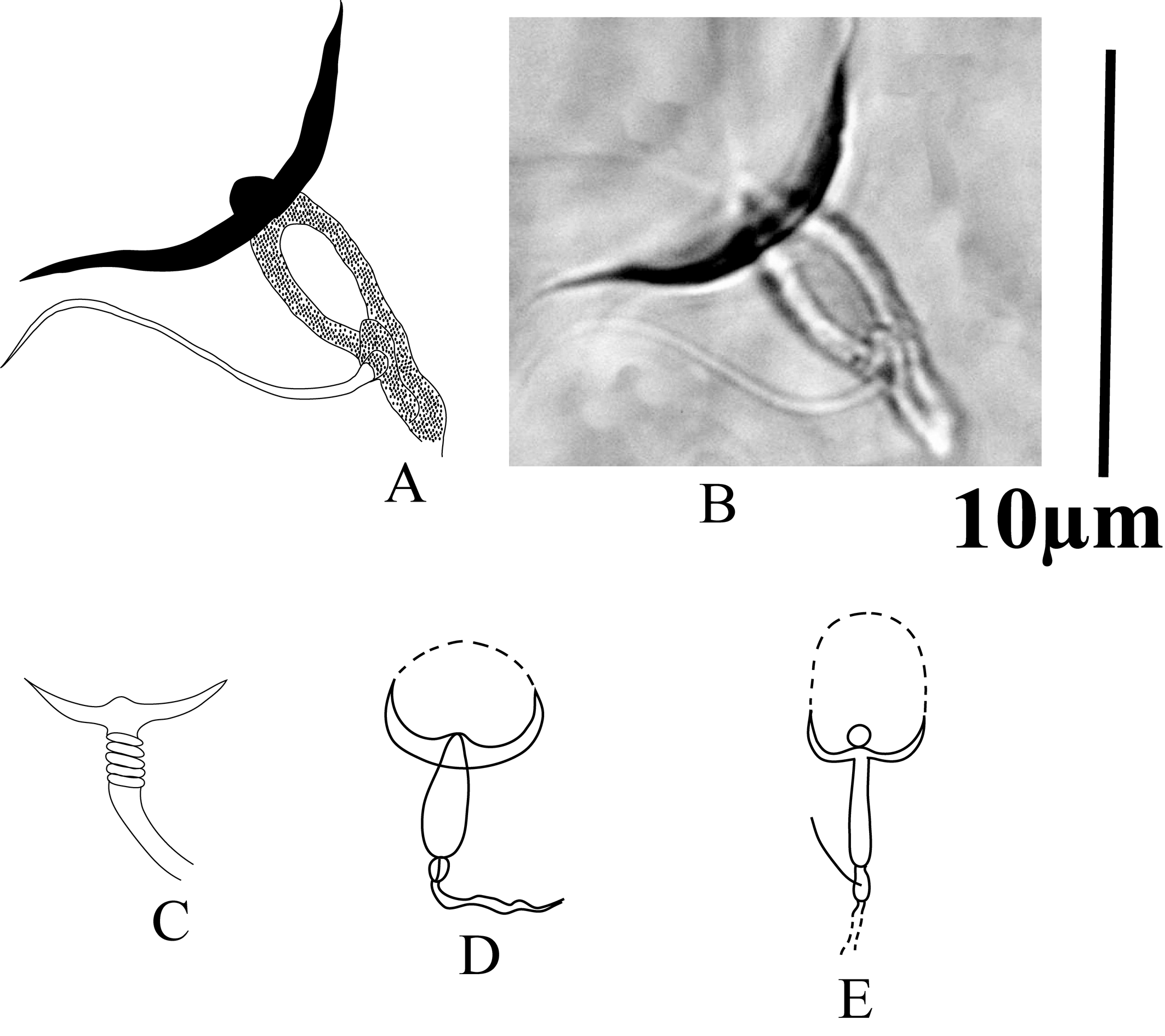 Chelicerae — (Figure 4A). Spermatodactyl T-shaped with slightly developed toe, but the axes of shaft and toe make almost right angle, shaft 18–19 long, toe 4–5 long. Movable cheliceral digit 17–19 long, fixed digit 19–21 long.