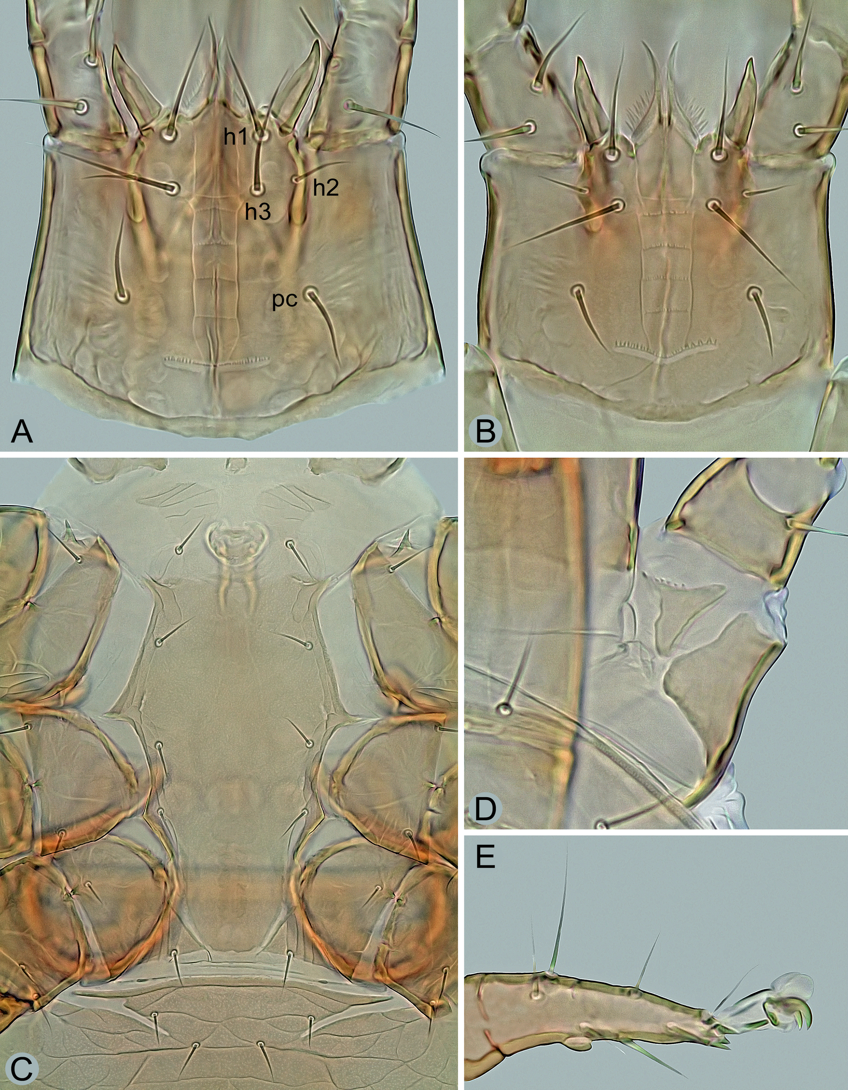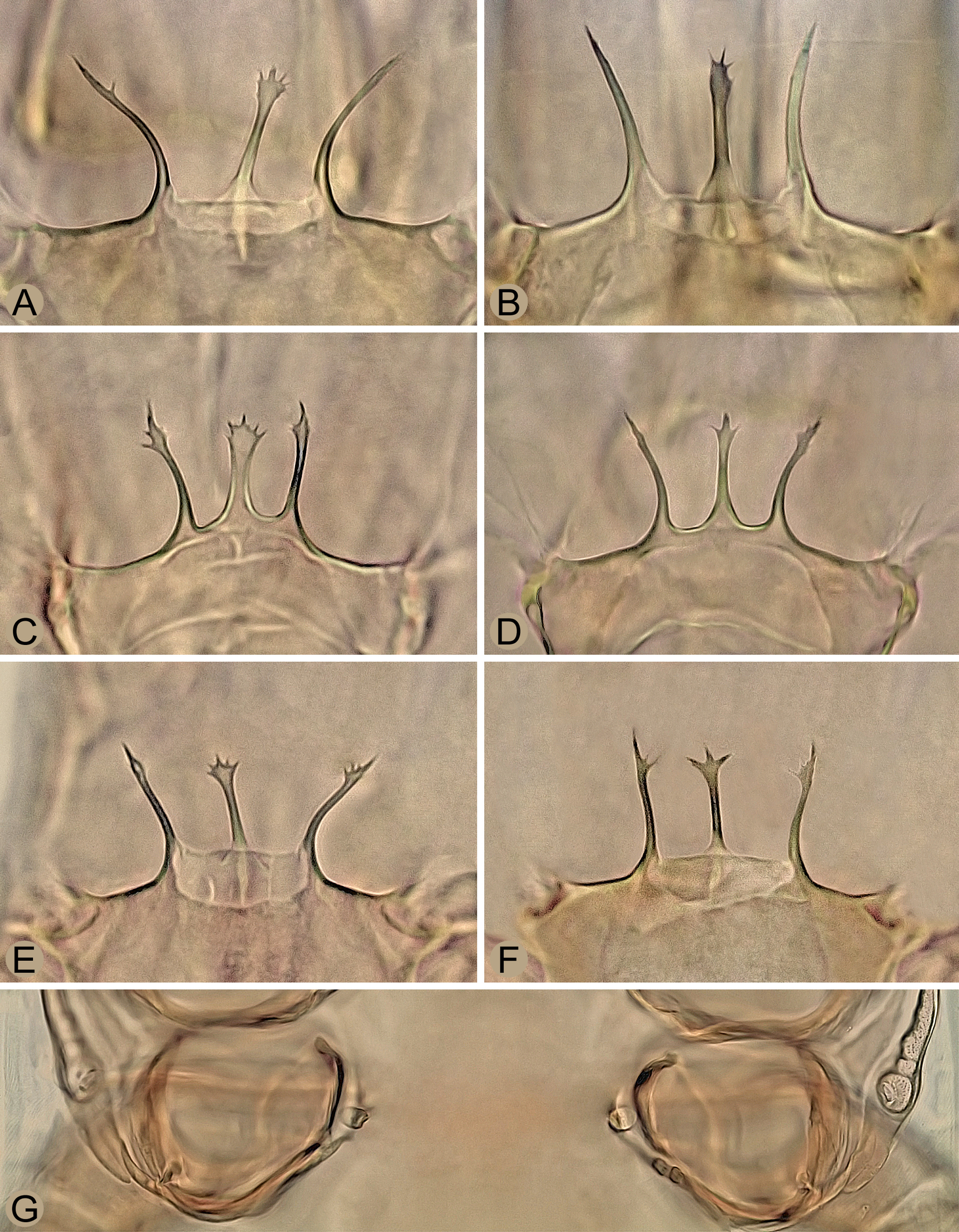 Sperm induction system – (Figures 3C–E and 6G). Normal for the genus, with a pair of well-sclerotized spherical structures (8–9 μm in size), each connected to inner margin of coxa IV and a hyaline sac-like membrane.