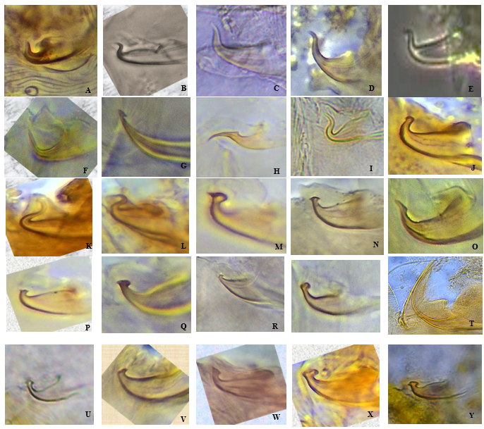 Taxonomic key for the identification of the tribes, genera and species of spider mites in agricultural ecosystems of Kerala is presented here. The structure of aedeagus of different species studied is furnished in Figure 2.