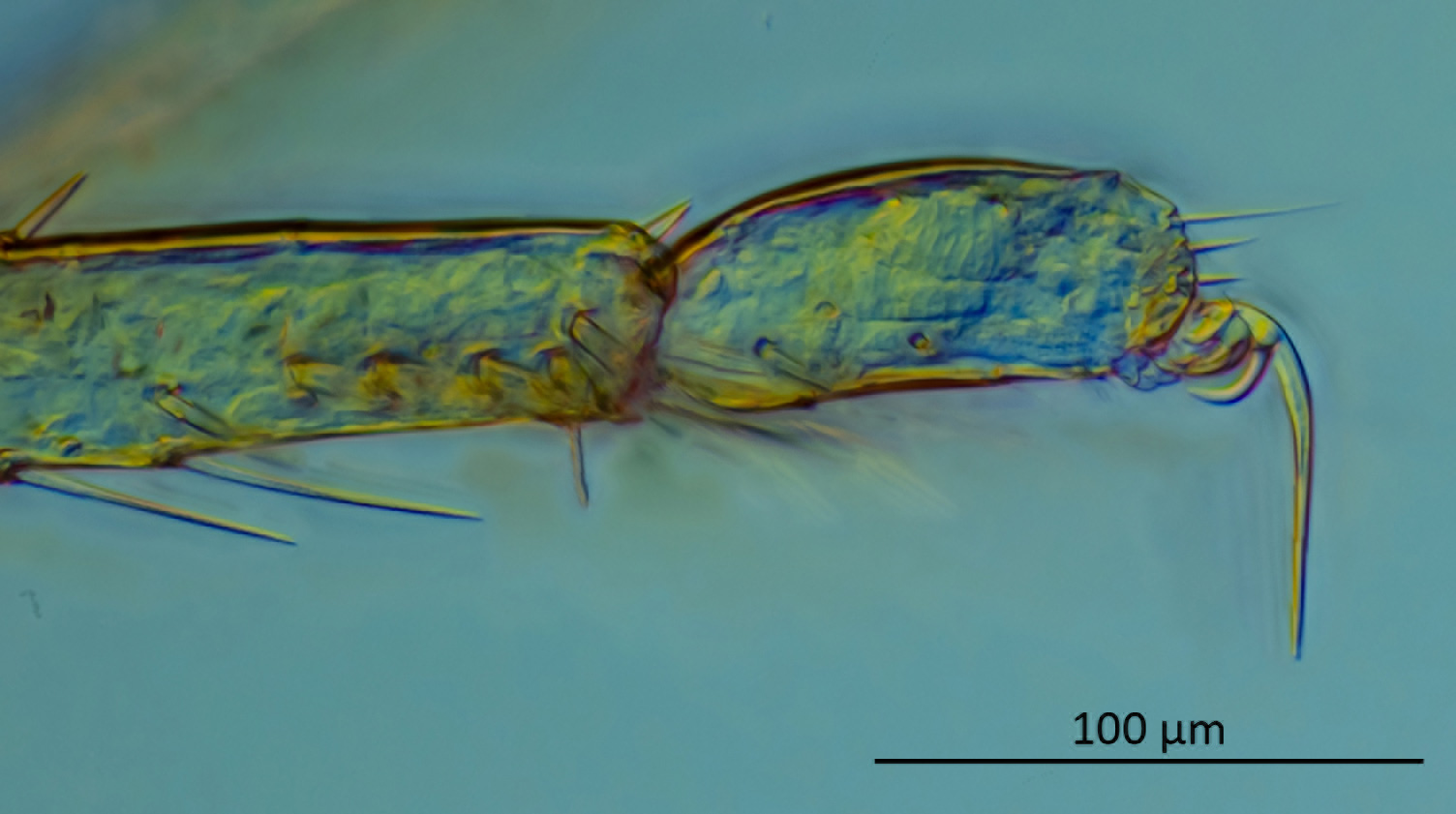 At first glance, males of both species appear very similar. They both possess an elongated posterior claw of the third pair of legs (Figure 1), and their genital fields are largely similar. However, upon closer examination, several morphological differences become apparent.