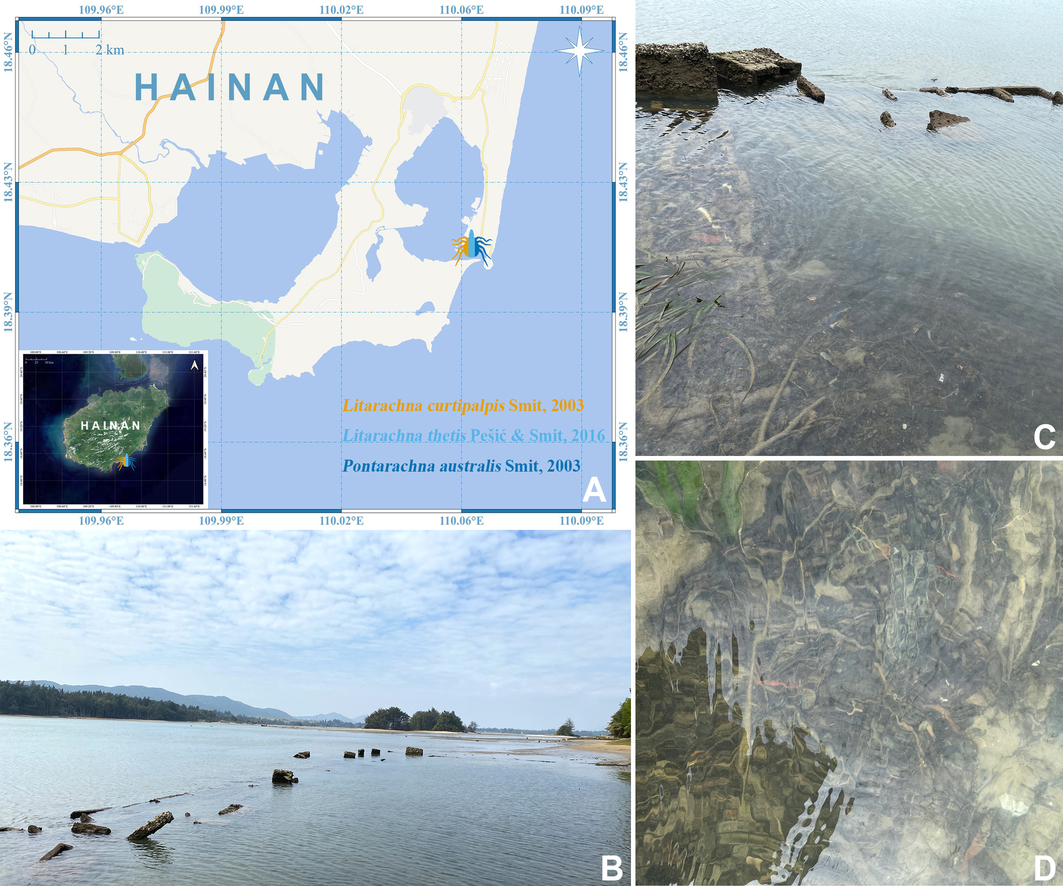 In China, three species have been reported, i.e. Litarachna hongkongensis Smit, 2002 (Hong Kong), Pontarachna formosae Lohmann, 1909 (Taiwan) and Pontarachna australis Smit, 2003 (Taiwan) (Pešić et al. 2008; Chatterjee et al. 2019; Jin et al. 2024). After recent collections from Hainan Island, we obtained three species, i.e. Litarachna curtipalpis Smit, 2003, Litarachna thetis Pešić & Smit, 2016 and Pontarachna australis Smit, 2003. More detailed characters were observed by camera, optical microscope and SEM, which will be discussed in this paper.