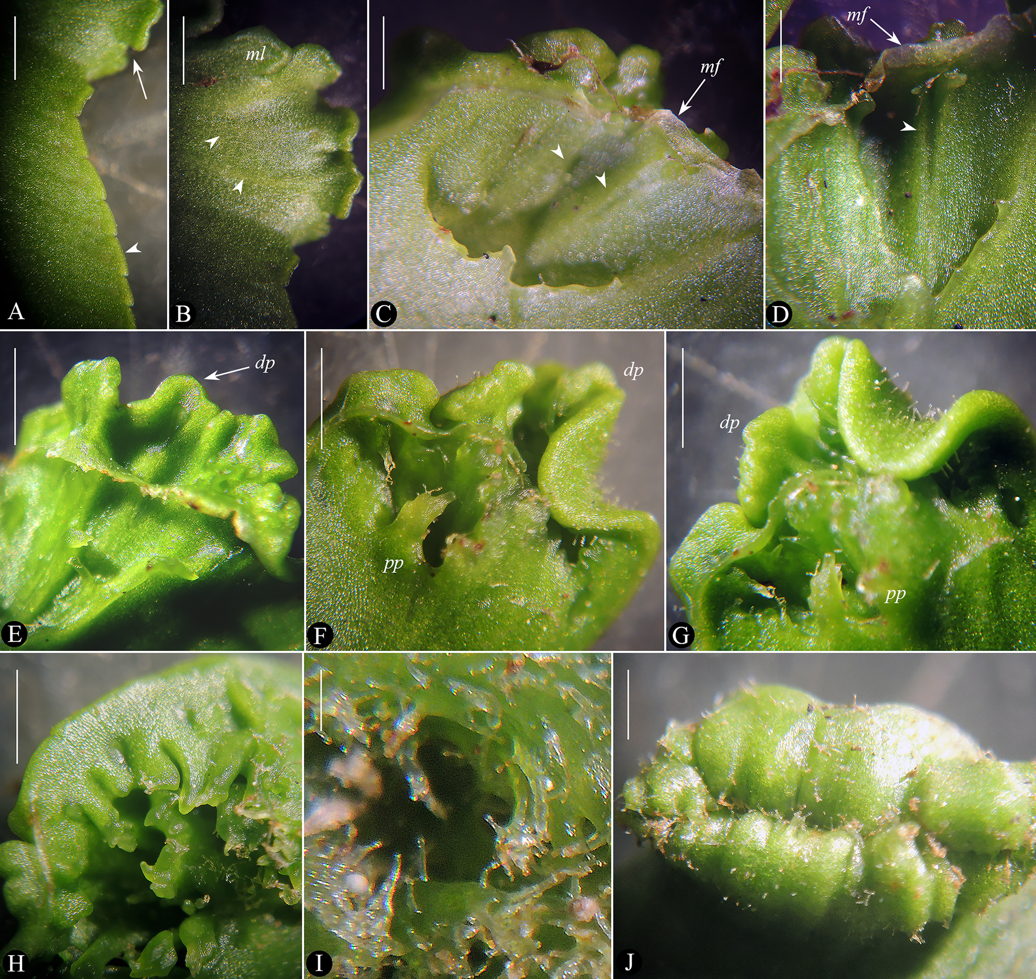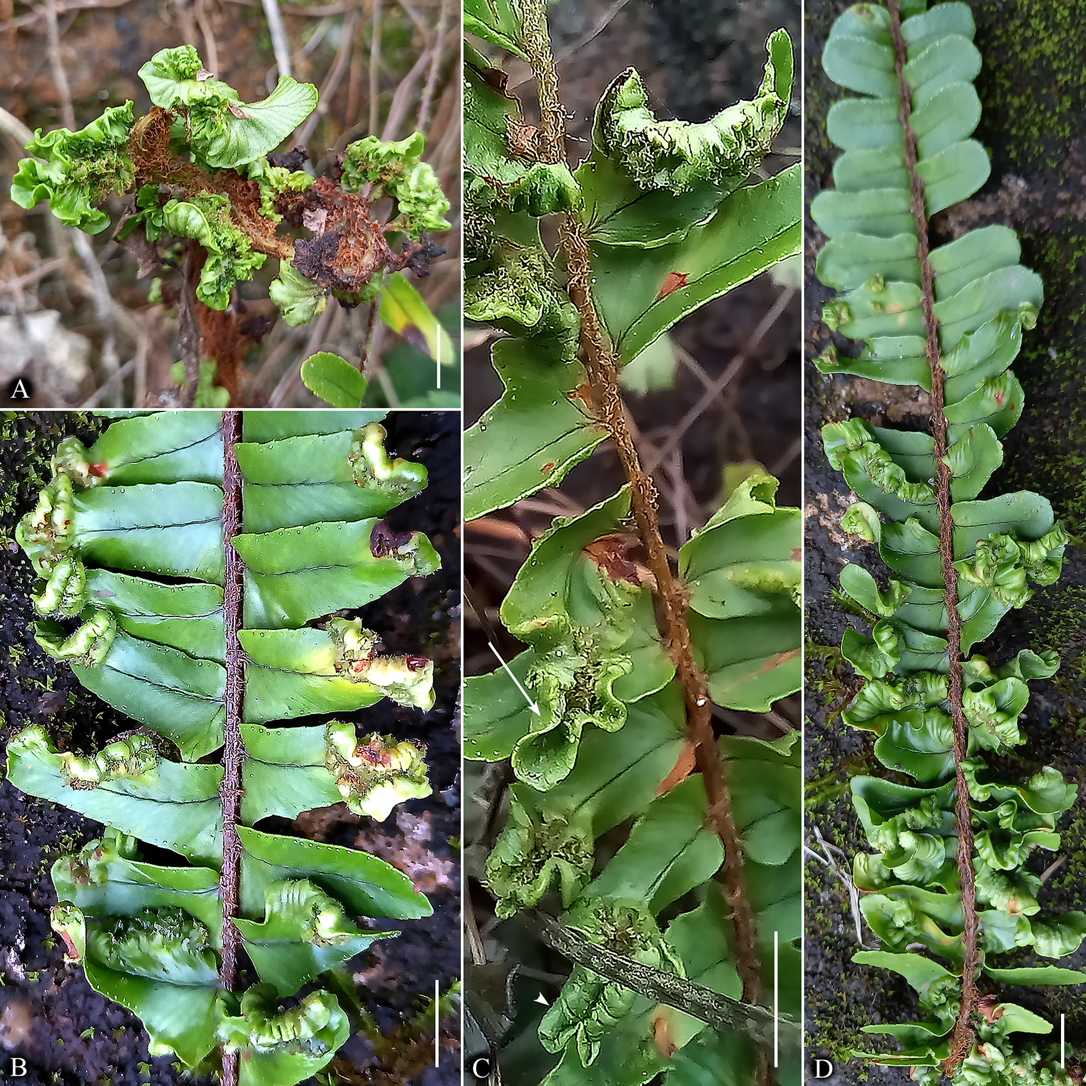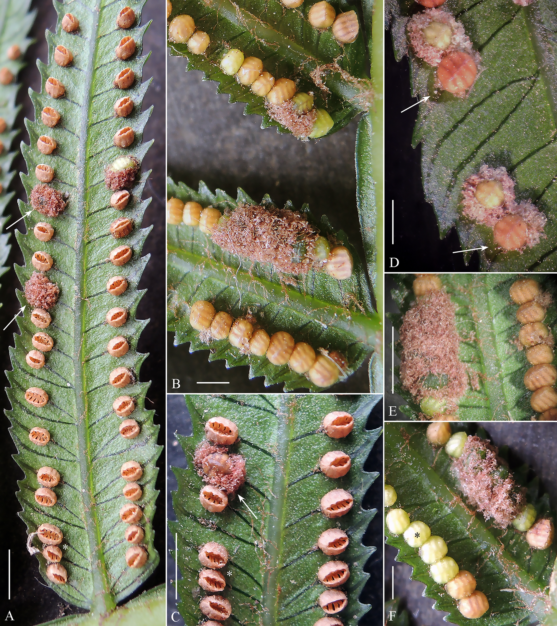Remarks — The gall formation process in N. cordifolia resembles the development of marginal leaf-rolling galls induced by eriophyoid mites on leaves of various dicotyledonous plants. These pathological morphogenetic processes in ferns and angiosperms may share elements of genetic developmental programs common across different phylogenetic lineages of land plants, which are exploited by gall-inducing mites. Remarkably, recent studies on regulatory gene expression in Fragaria viridis (Rosaceae) leaf galls caused by the eriophyoid mite Fragariocoptes setiger (Nalepa, 1894) (Eriophyoidea: Phytoptidae) revealed localized alterations in leaf epidermis dorsoventral polarity (Paponova et al. 2021). Future research should examine whether similar polarity changes occur in eriophyoid mite galls on other hosts, including ferns.