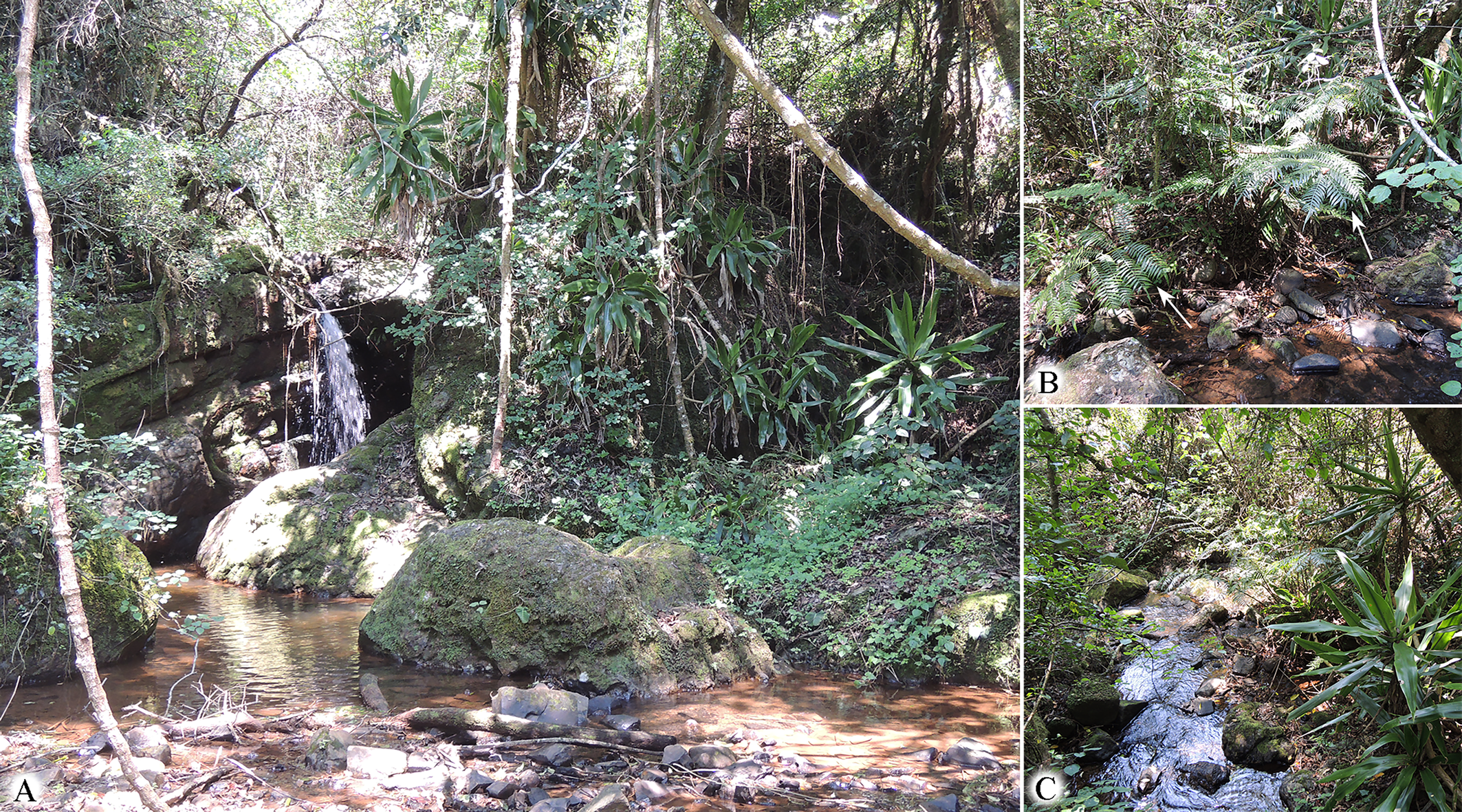 SOUTH AFRICA: Mpumalanga Prov., near Sabie, Bridal Veil Falls, 25°04′55.2″S 30°43′29.2″E (Figure 5).