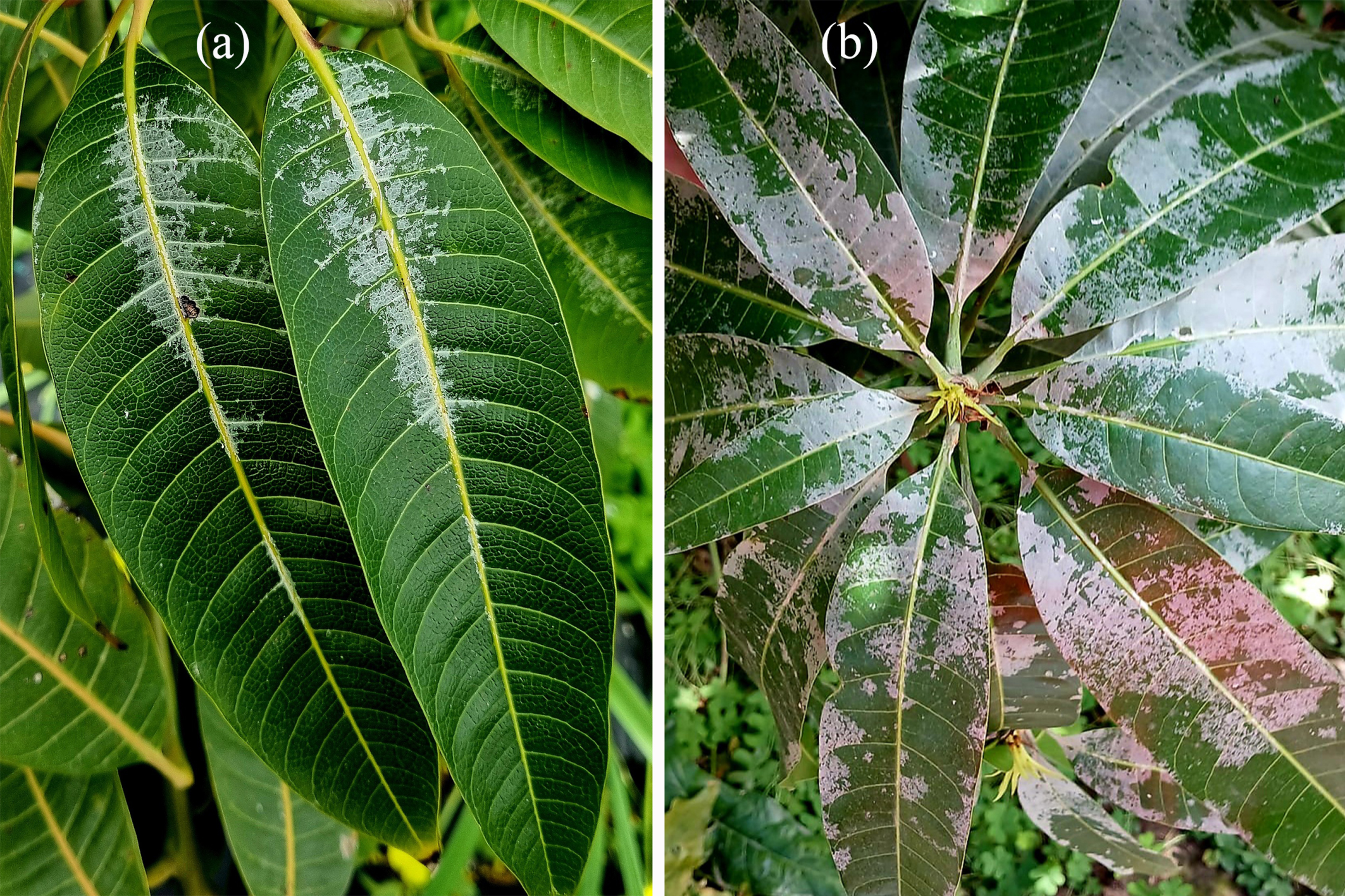 Regardless of the leaf-coating nature, Ramani (2019) found conspicuous changes in the mesophyll tissues of the infested parts of the mango leaves, consisting of a reduction in cell size and of chloroplasts number in the palisade tissues. Moreover, the dense leaf coating hindering light penetration leads to a significant reduction in photosynthesis, accelerating the plant defoliation (Ramani 2019).