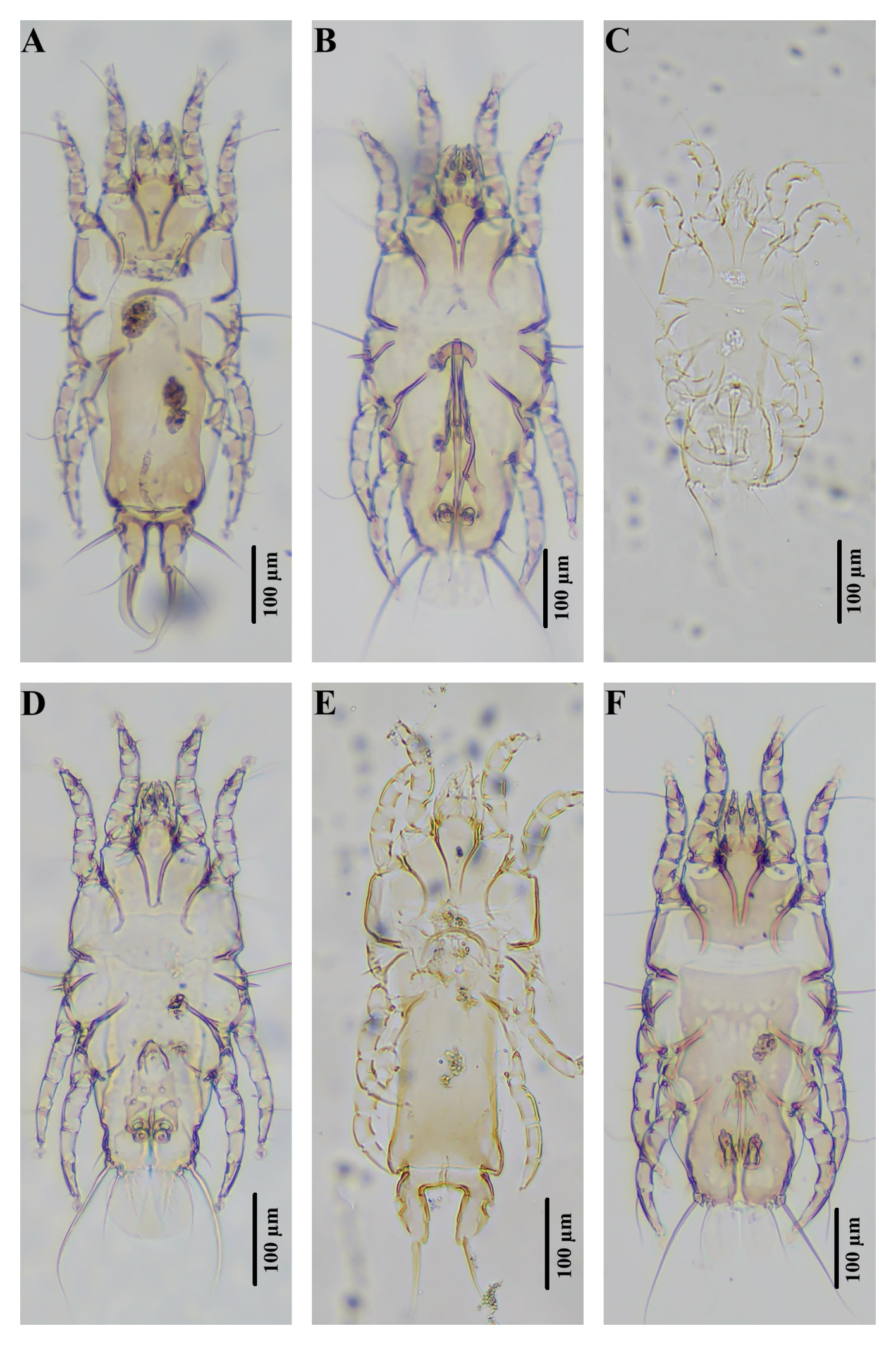 This genus currently comprises 11 species associated with birds of the order Passeriformes (Chang et al. 2018). As of now, there are no records of any species from this genus in the acarological literature of Türkiye. Due to the specimen being a deformed female, Anhemialges was identified only at the genus level (Fig. 5: A). However, considering the lengths and proportions of the dorsal macrosetae (d2 and e2) of the female specimen, it is highly likely that this specimen represents Anhemialges aegithalos Chang, Wang & Liu, 2018, or a species very close to this species.