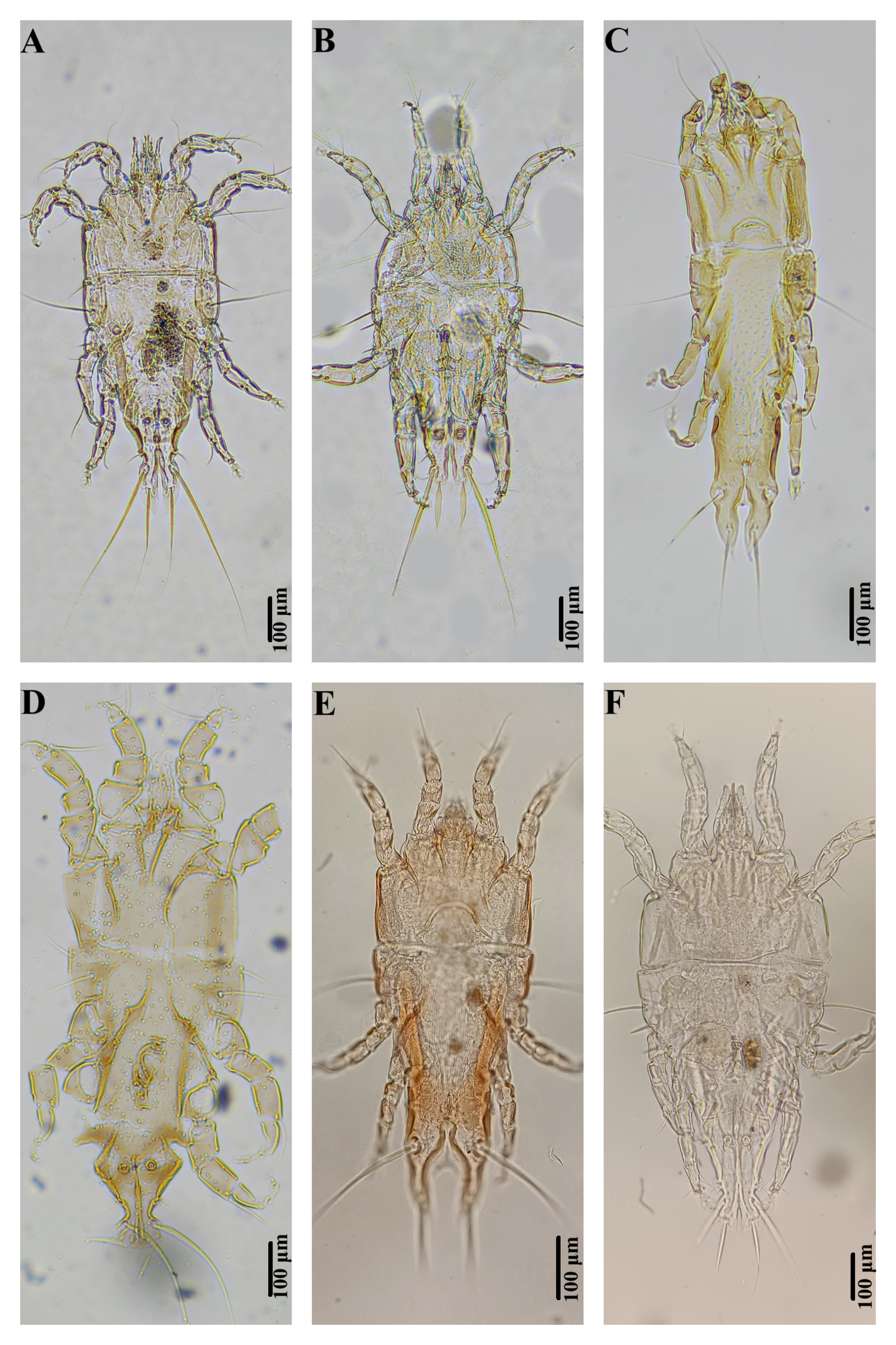 Mites of this family, associated with hosts belonging to a very wide spectrum of orders, ranging from the most archaic (Apterygiformes) to passerines (Passeriformes). More than 200 species in 34 genera and seven subfamilies have been described in studies conducted so far (Gaud and Atyeo 1996; Mironov 2019; Schatz et al. 2011; Mironov 2021; Waki et al. 2024; Mironov et al. 2024). In the present study, ten species-level taxa and two genus-level taxa from four genera of this family were identified (Tables 1 and 2).