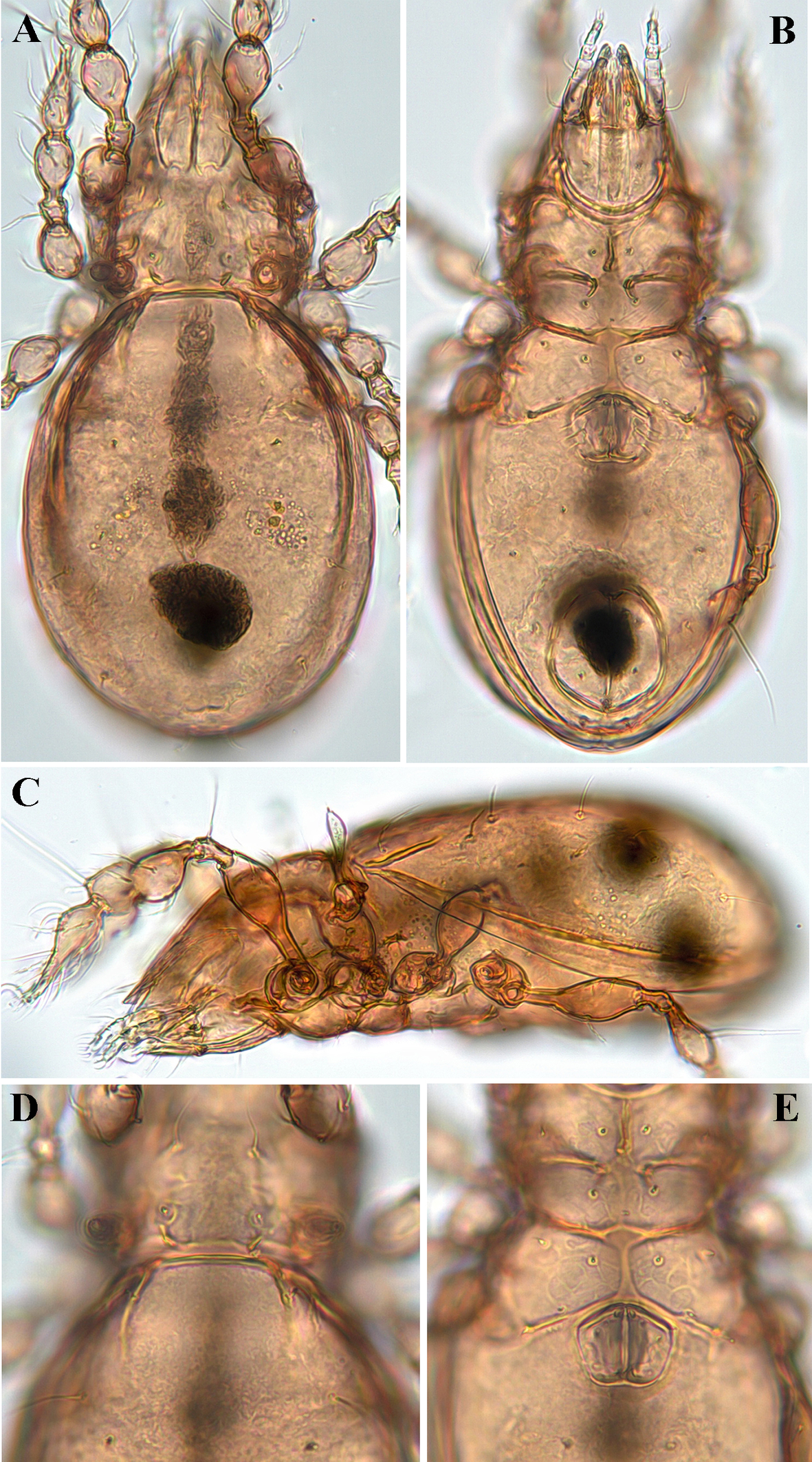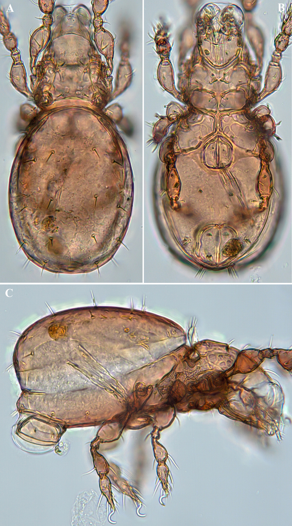Body lengths were measured in lateral view, from the tip of the rostrum to the posterior edge of the ventral plate. Notogastral width refers to the maximum width of the notogaster. Lengths of body setae were measured in lateral aspect. All measurement values are given in micrometres, and average measurement values are given in parentheses after the range.