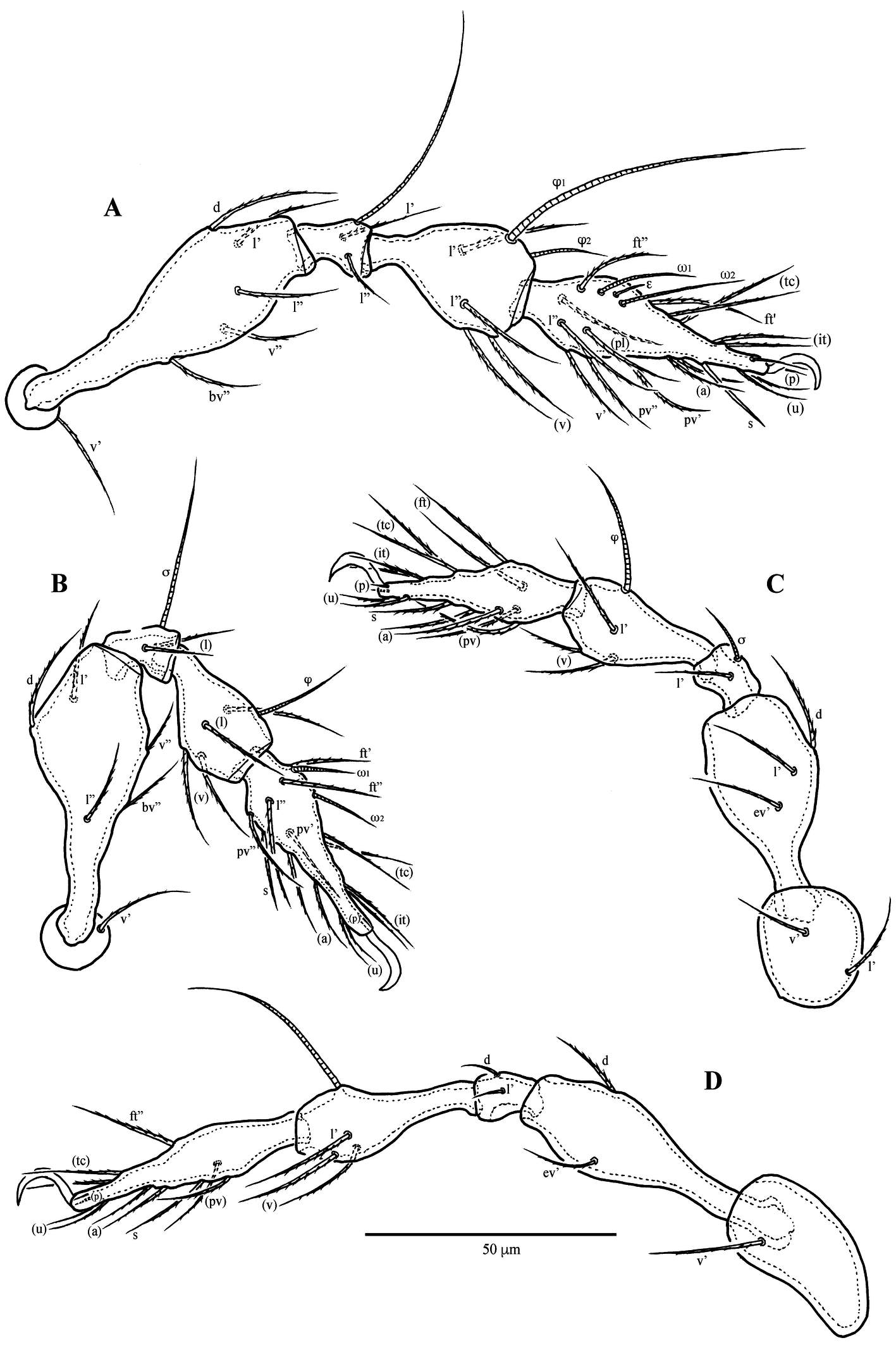 Download as Note: Roman letters refer to normal setae, Greek letters to solenidia, ɛ to famulus; single prime (’) designates setae on the anterior and double prime (") setae on the posterior side of a given leg segments; parentheses refer to a pair of setae.