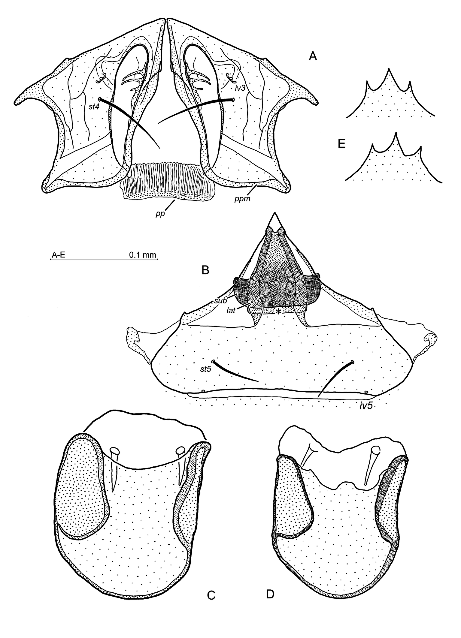 Paratypes — three females (slides no. 2980 B, F) and two males (slides no. 2980 C, D), collection data, as in the holotype.