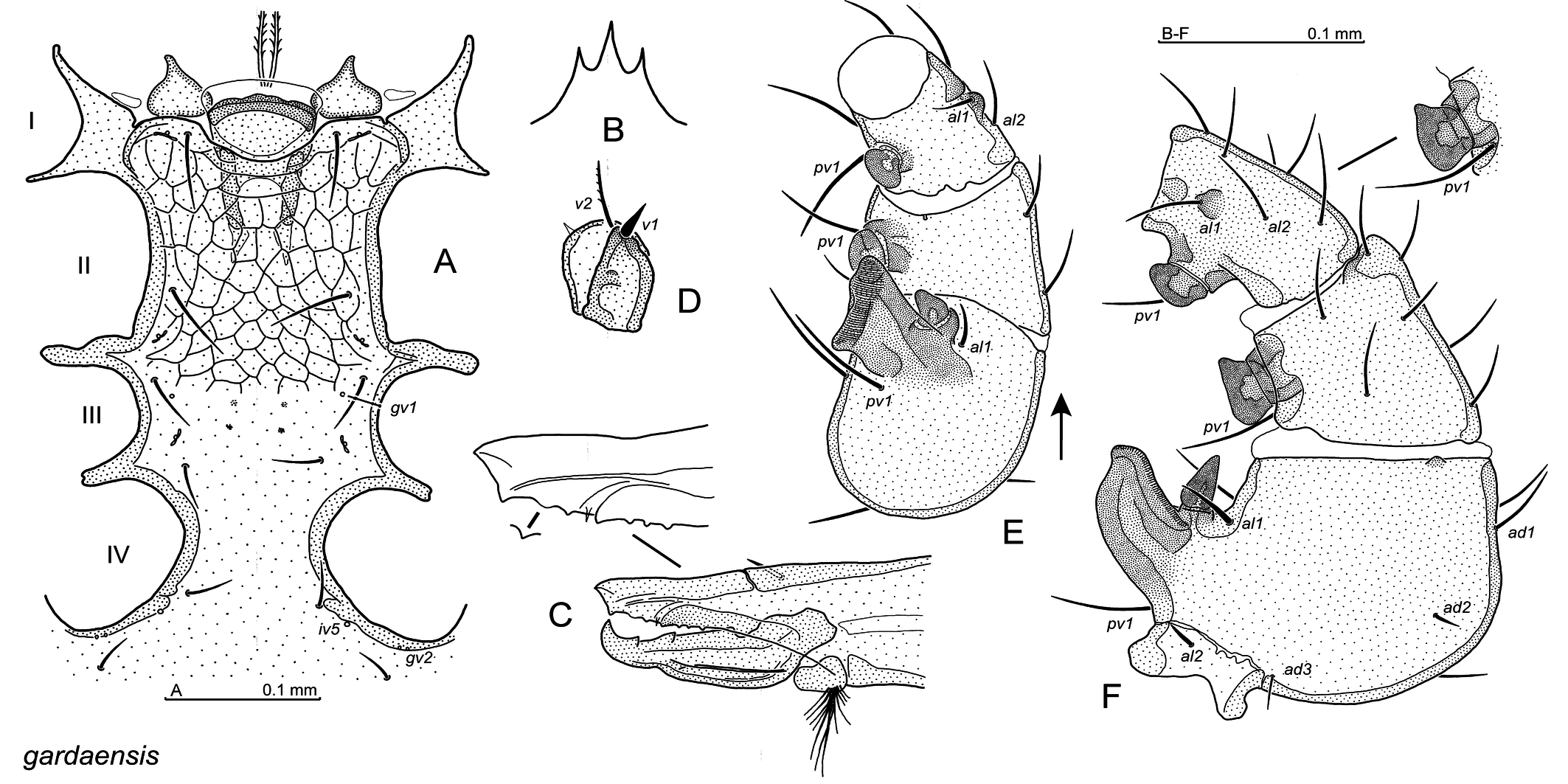 ...... A. gardaensis Witaliński, 2024 (Figs 8B, 12A-F)