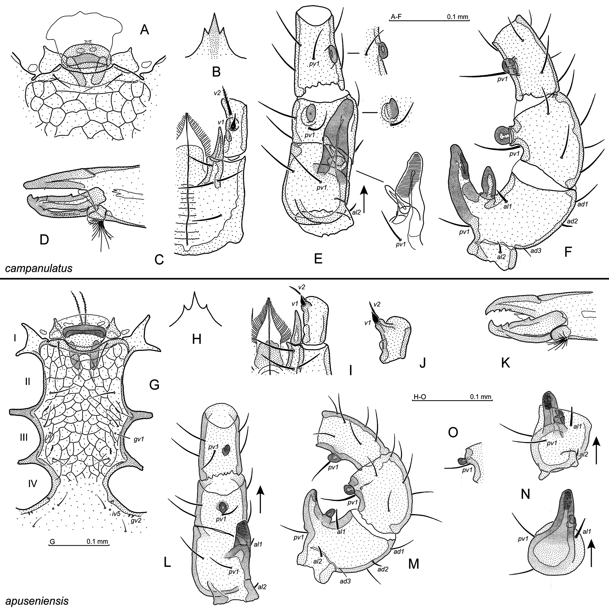 ...... A. apuseniensis Witaliński, 2024c (Figs 2B–E, 4A–E)