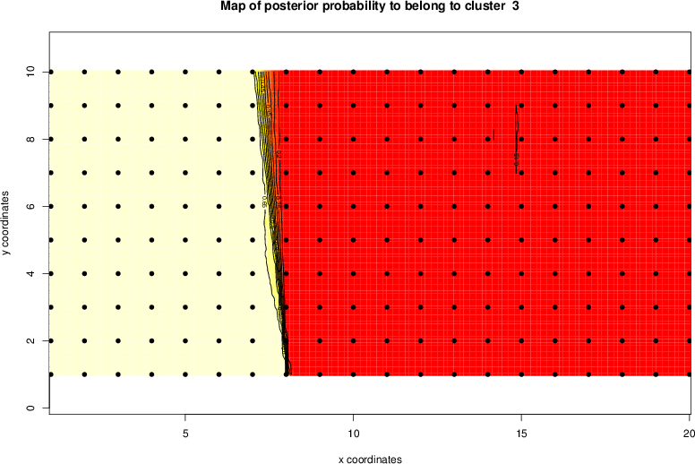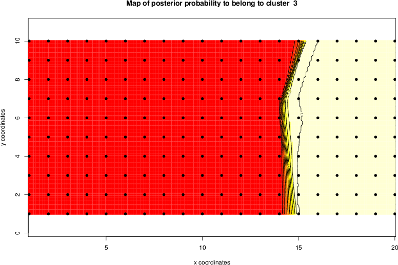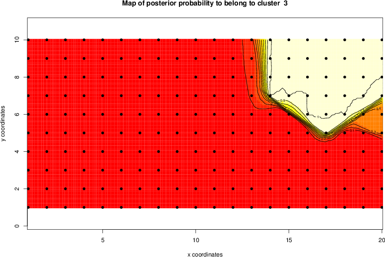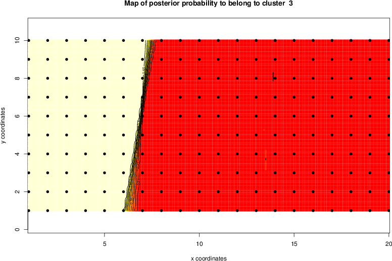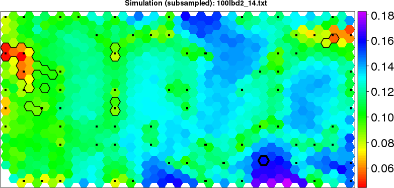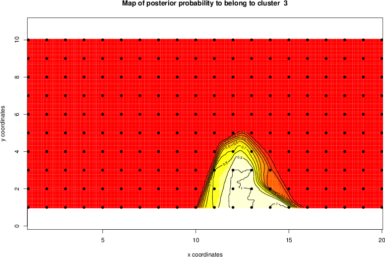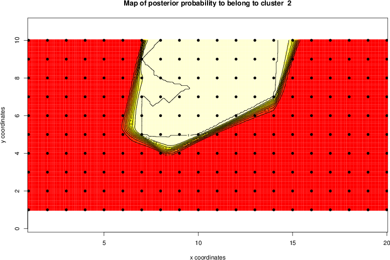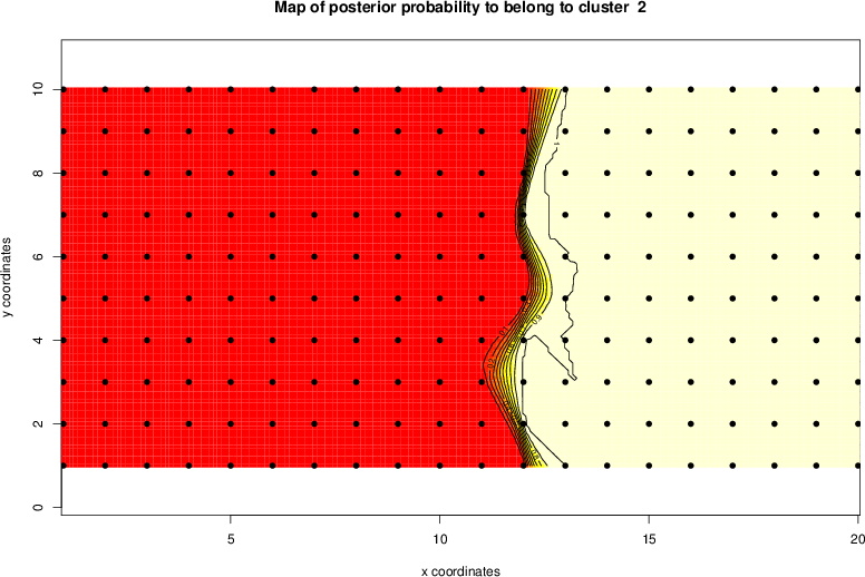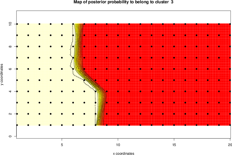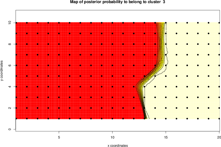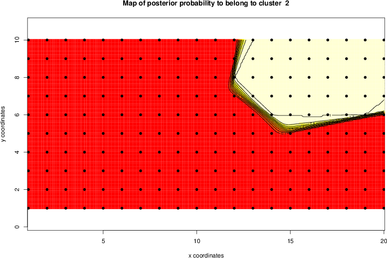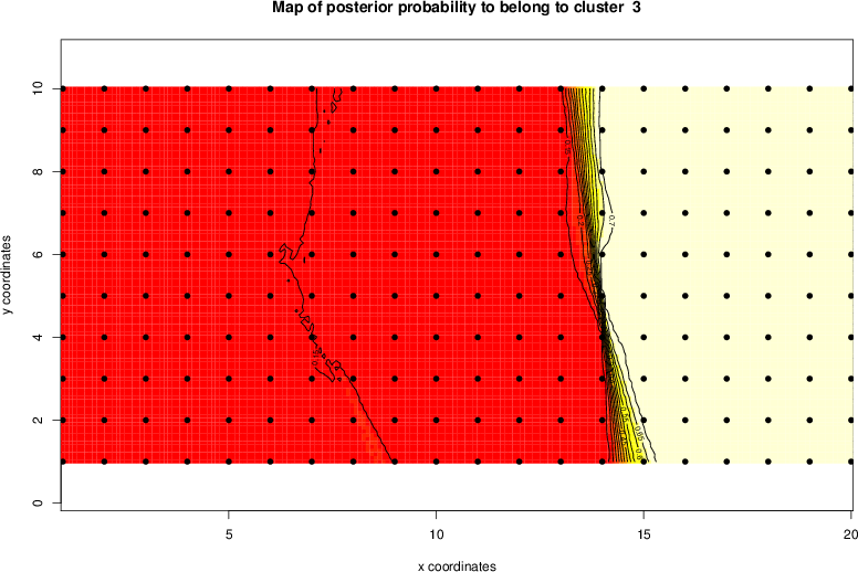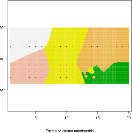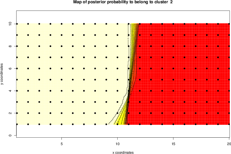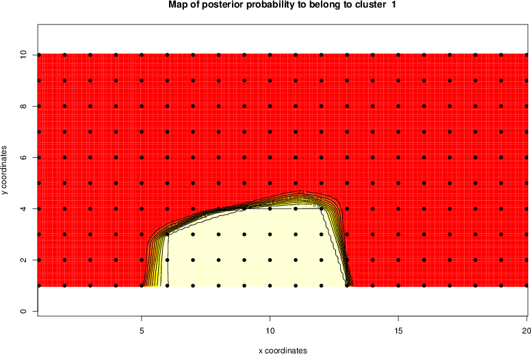 Simulated data | Geographical plots of weighted mean of all ellipse values (i.e., individual genetic distances ar of Rousset 2000) and significant barrier (cells with differentiation values higher than expected under a random distribution (no FDR applied) are materialized with thick black borders) | Idem, Benjamini-Yekutieli FDR applied | MAPI analysis (no FDR applied) with subsampled (75/200) dataset | MAPI analysis (Benjamini-Yekutieli FDR applied) with subsampled (75/200) dataset | Best probability memberships | Probability memberships for cluster 1 | Probability memberships for cluster 2 | Probability memberships for cluster 3 | Probability memberships for cluster 4 | Probability memberships for cluster 5 | Best probability memberships | Probability memberships for cluster 1 | Probability memberships for cluster 2 | Probability memberships for cluster 3 | Probability memberships for cluster 4 | Probability memberships for cluster 5 | Scatter plot showing the first two components of the DAPC (when K*>2) or density plot showing the first principal component of the DAPC (when K*=2) | Probability memberships for cluster 1 | Probability memberships for cluster 2 | Probability memberships for cluster 3 | Probability memberships for cluster 4 | Probability memberships for cluster 5 | Scatter plot showing the first two components of the DAPC (when K*>2) or density plot showing the first principal component of the DAPC (when K*=2) | Probability memberships for cluster 1 | Probability memberships for cluster 2 | Probability memberships for cluster 3 | Probability memberships for cluster 4 | Probability memberships for cluster 5 |