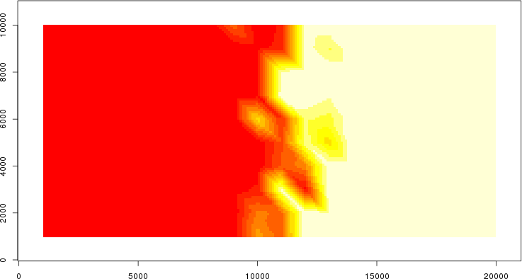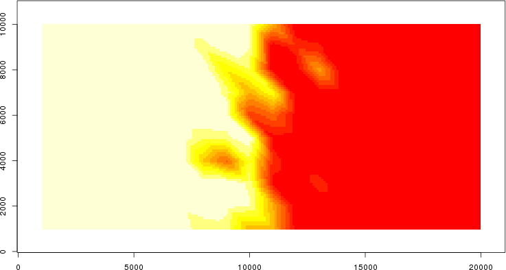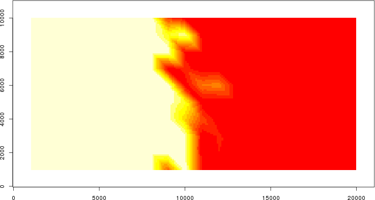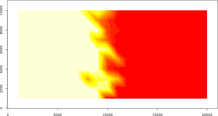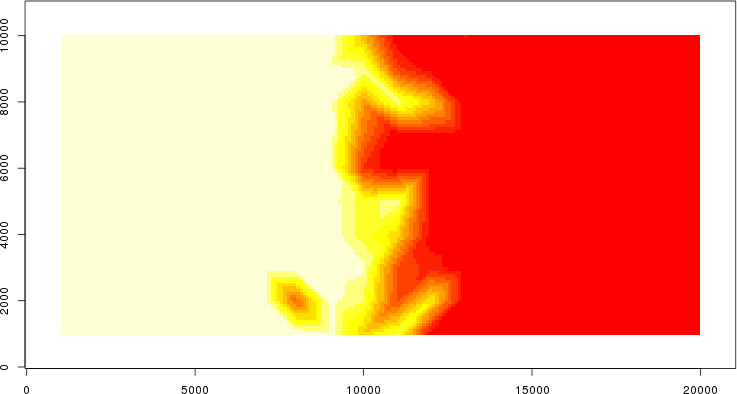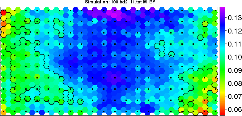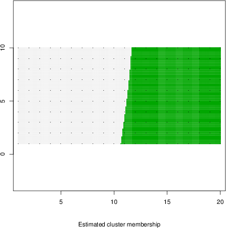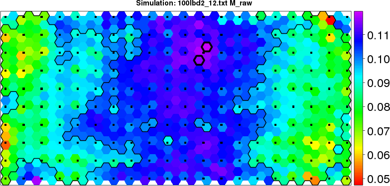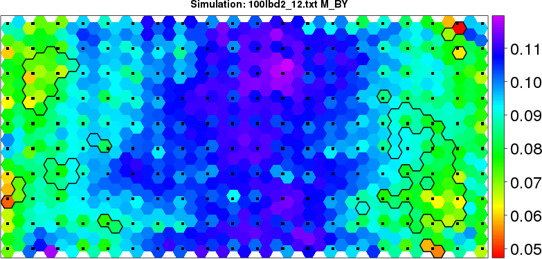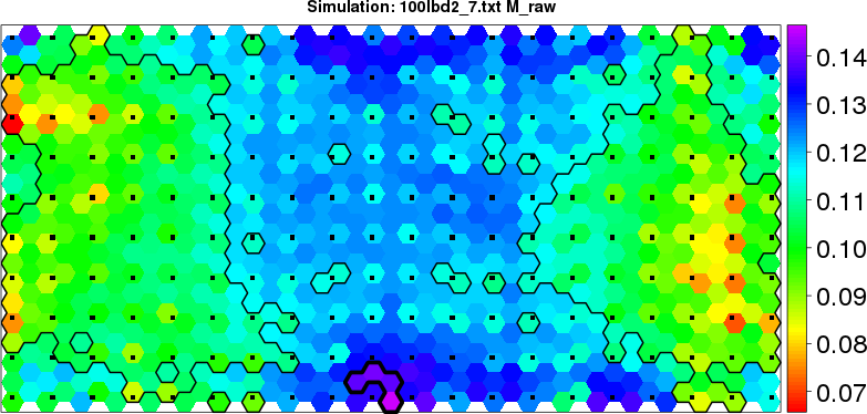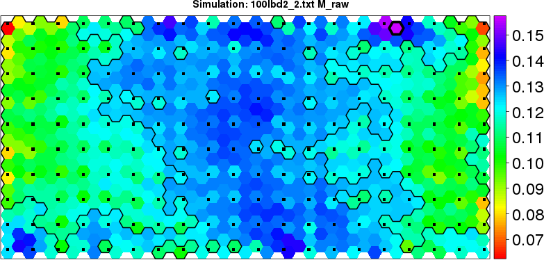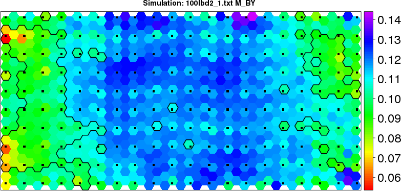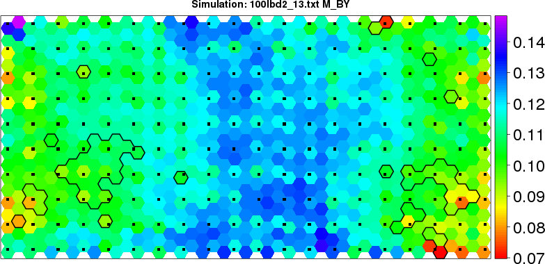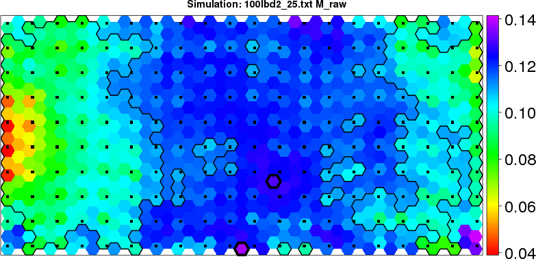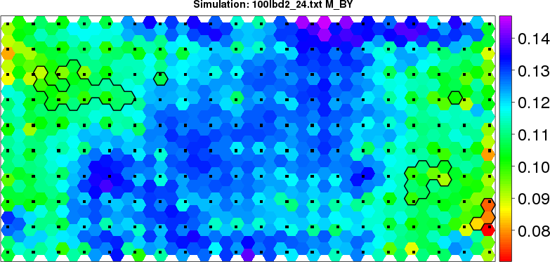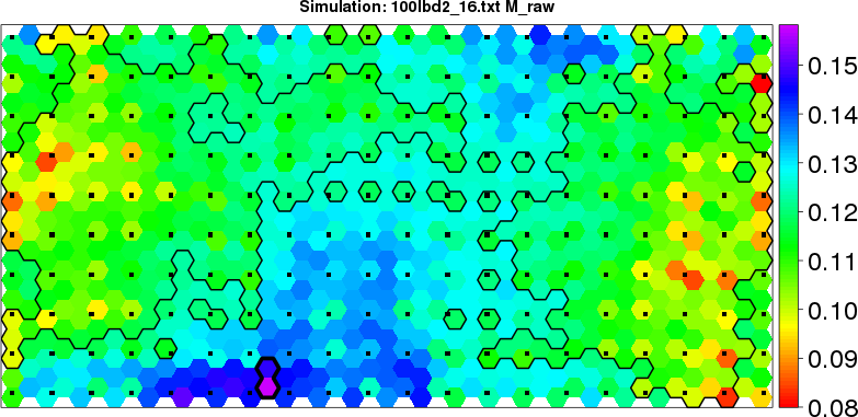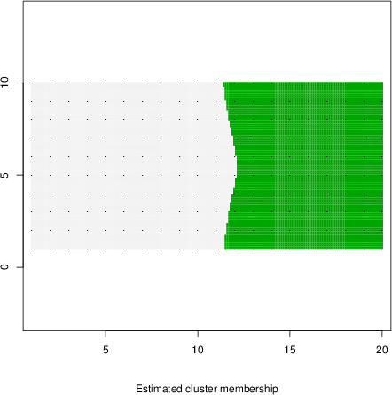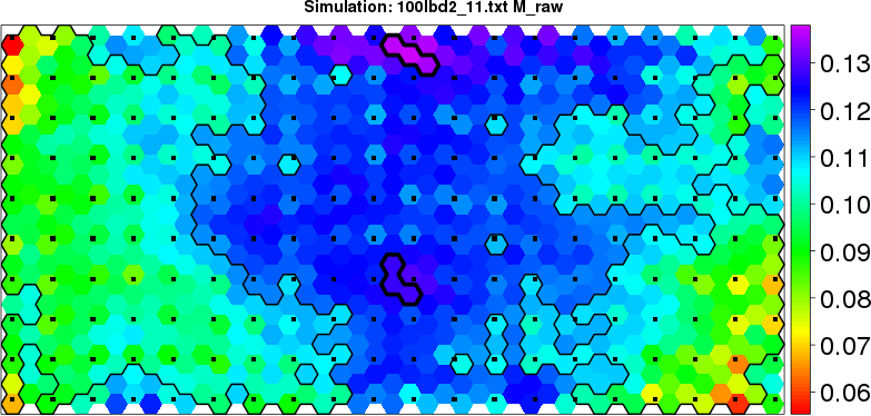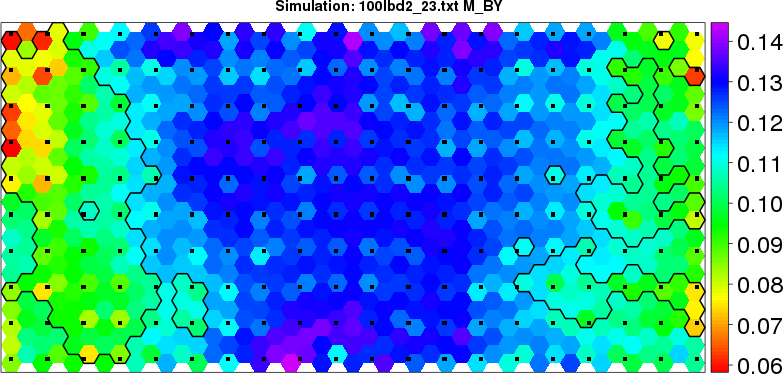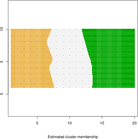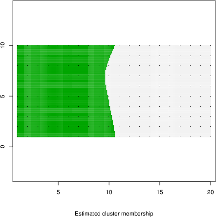 Simulated data | Geographical plots of weighted mean of all ellipse values (i.e., individual genetic distances ar of Rousset 2000) and significant barrier (cells with differentiation values higher than expected under a random distribution (no FDR applied) are materialized with thick black borders) | Idem, Benjamini-Yekutieli FDR applied | MAPI analysis (no FDR applied) with subsampled (75/200) dataset | MAPI analysis (Benjamini-Yekutieli FDR applied) with subsampled (75/200) dataset | Best probability memberships | Probability memberships for cluster 1 | Probability memberships for cluster 2 | Probability memberships for cluster 3 | Probability memberships for cluster 4 | Probability memberships for cluster 5 | Best probability memberships | Probability memberships for cluster 1 | Probability memberships for cluster 2 | Probability memberships for cluster 3 | Probability memberships for cluster 4 | Probability memberships for cluster 5 | Scatter plot showing the first two components of the DAPC (when K*>2) or density plot showing the first principal component of the DAPC (when K*=2) | Probability memberships for cluster 1 | Probability memberships for cluster 2 | Probability memberships for cluster 3 | Probability memberships for cluster 4 | Probability memberships for cluster 5 | Scatter plot showing the first two components of the DAPC (when K*>2) or density plot showing the first principal component of the DAPC (when K*=2) | Probability memberships for cluster 1 | Probability memberships for cluster 2 | Probability memberships for cluster 3 | Probability memberships for cluster 4 | Probability memberships for cluster 5 |