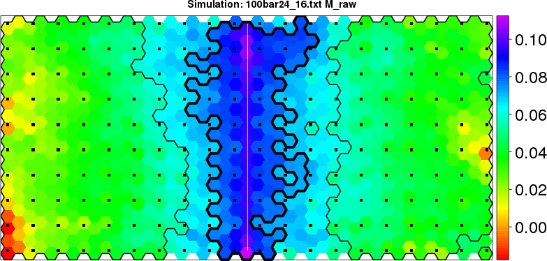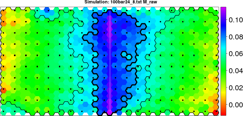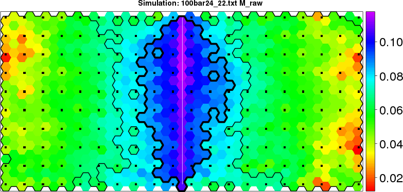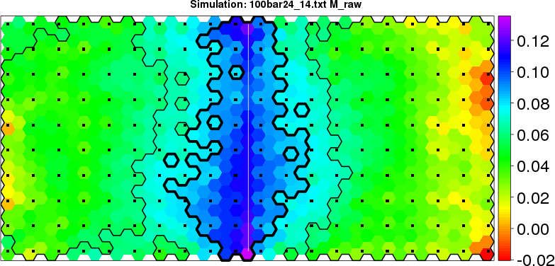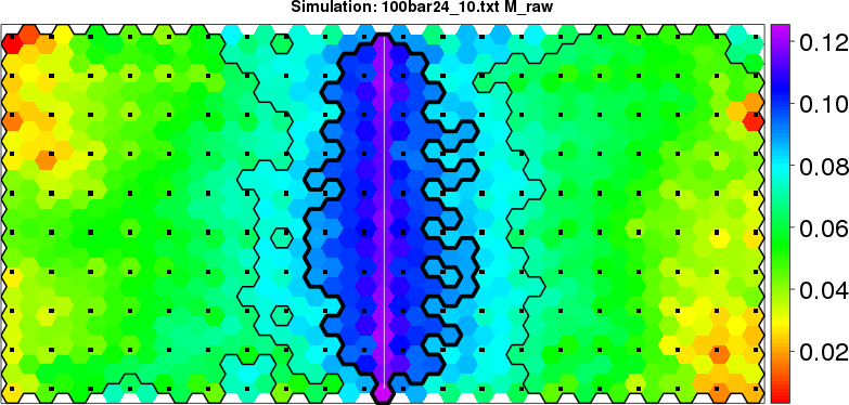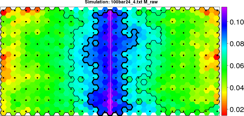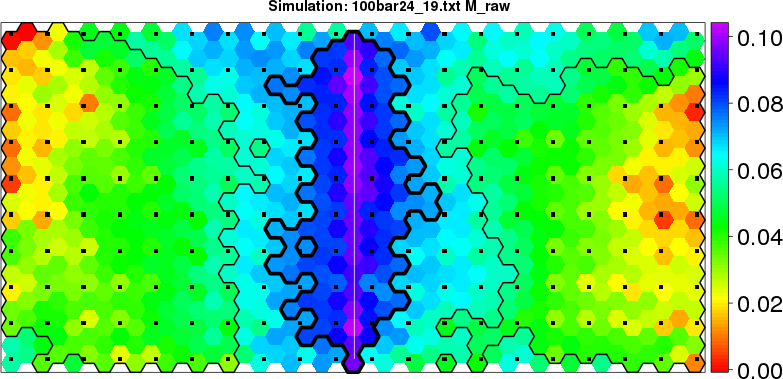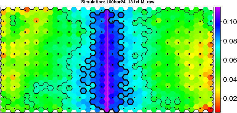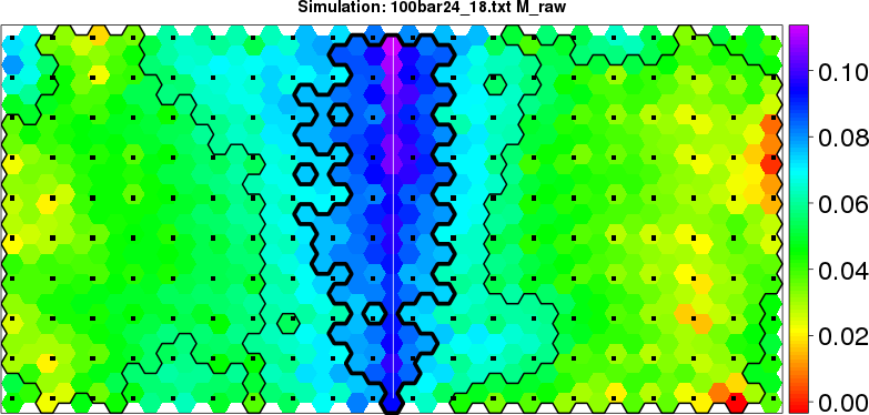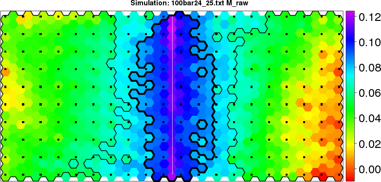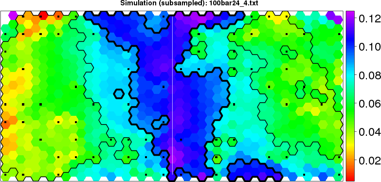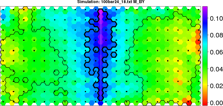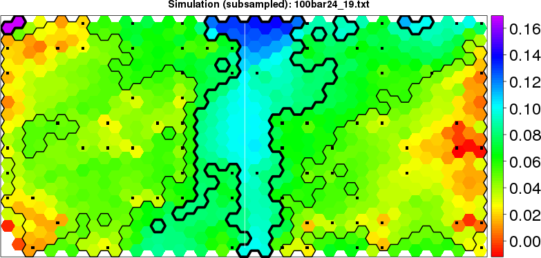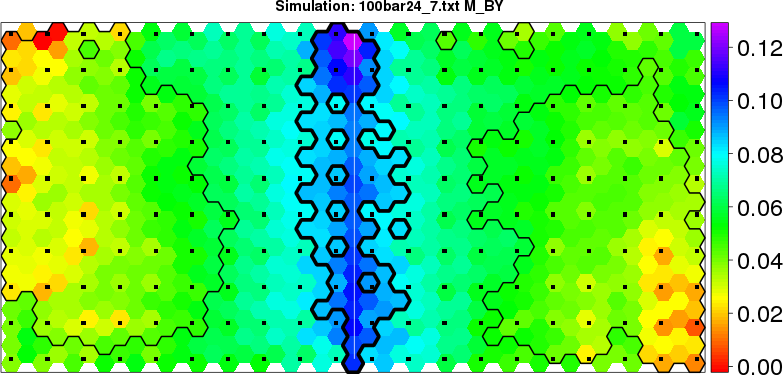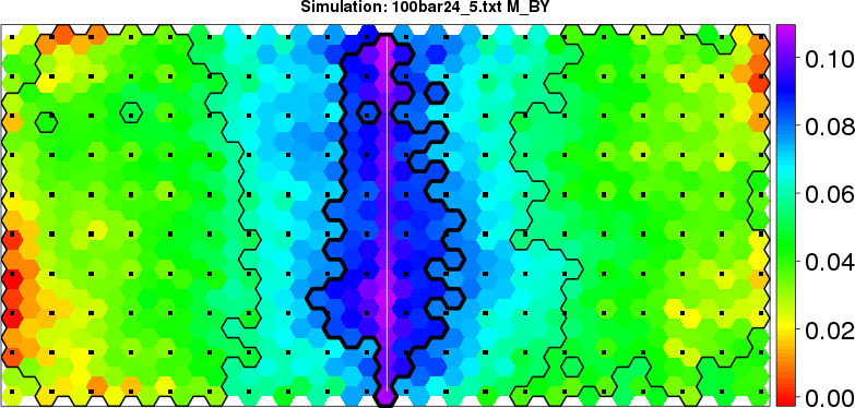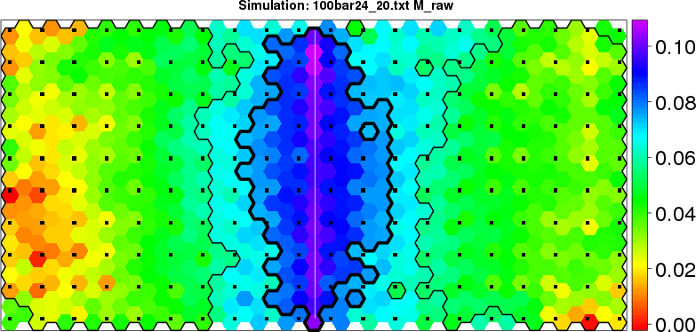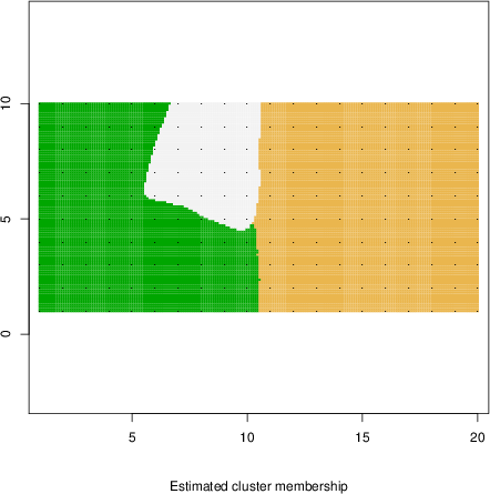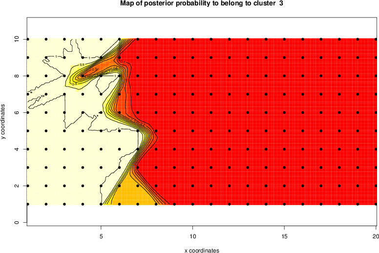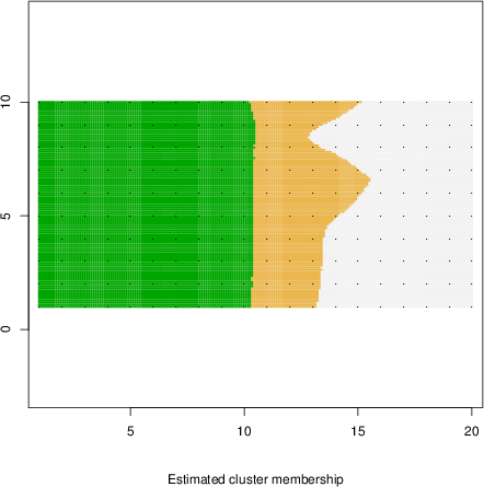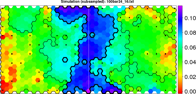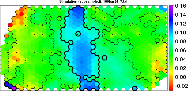 Simulated data | Geographical plots of weighted mean of all ellipse values (i.e., individual genetic distances ar of Rousset 2000) and significant barrier (cells with differentiation values higher than expected under a random distribution (no FDR applied) are materialized with thick black borders) | Idem, Benjamini-Yekutieli FDR applied | MAPI analysis (no FDR applied) with subsampled (75/200) dataset | MAPI analysis (Benjamini-Yekutieli FDR applied) with subsampled (75/200) dataset | Best probability memberships | Probability memberships for cluster 1 | Probability memberships for cluster 2 | Probability memberships for cluster 3 | Probability memberships for cluster 4 | Probability memberships for cluster 5 | Best probability memberships | Probability memberships for cluster 1 | Probability memberships for cluster 2 | Probability memberships for cluster 3 | Probability memberships for cluster 4 | Probability memberships for cluster 5 | Scatter plot showing the first two components of the DAPC (when K*>2) or density plot showing the first principal component of the DAPC (when K*=2) | Probability memberships for cluster 1 | Probability memberships for cluster 2 | Probability memberships for cluster 3 | Probability memberships for cluster 4 | Probability memberships for cluster 5 | Scatter plot showing the first two components of the DAPC (when K*>2) or density plot showing the first principal component of the DAPC (when K*=2) | Probability memberships for cluster 1 | Probability memberships for cluster 2 | Probability memberships for cluster 3 | Probability memberships for cluster 4 | Probability memberships for cluster 5 |