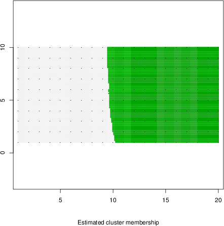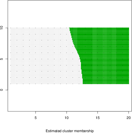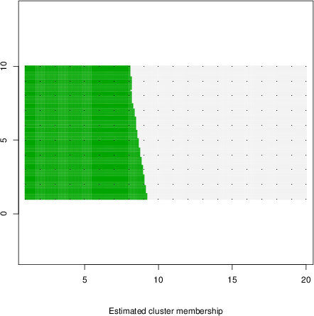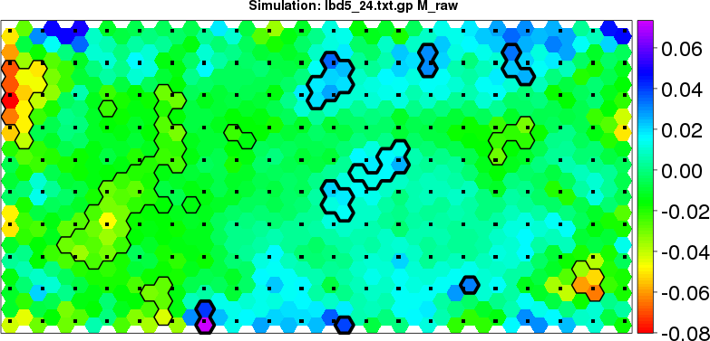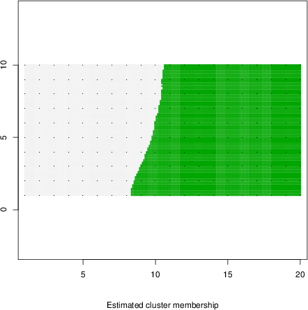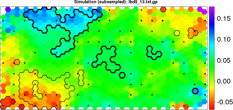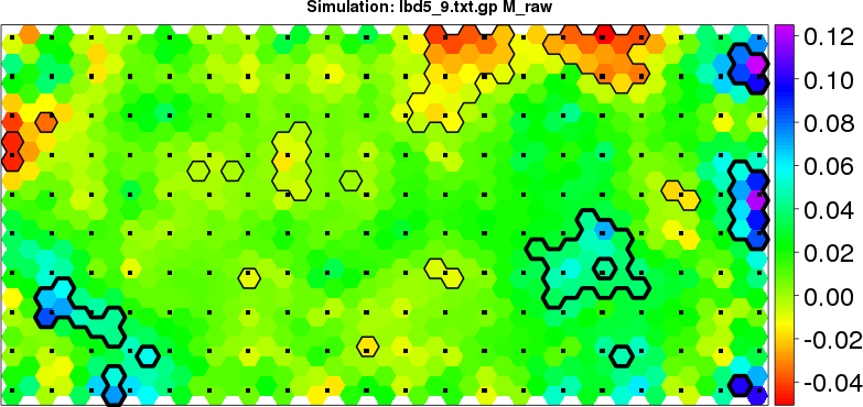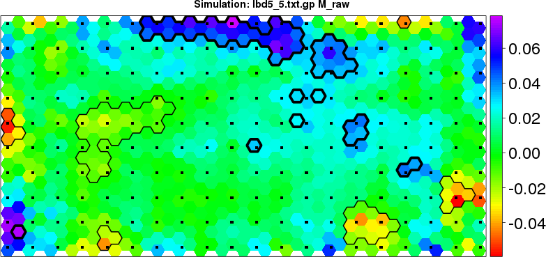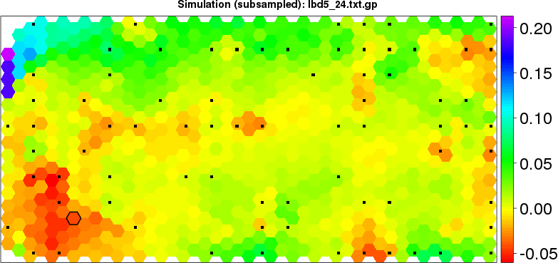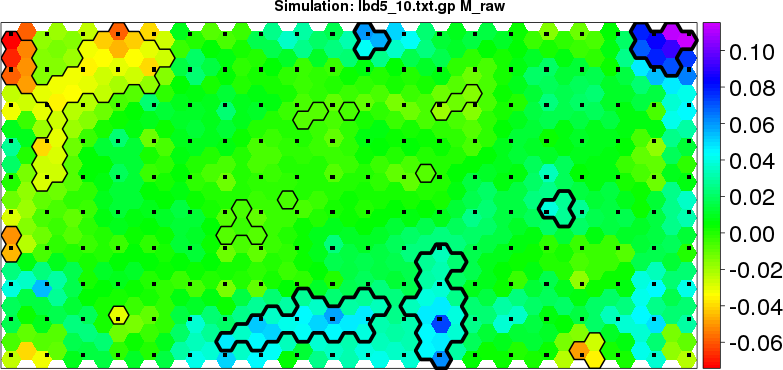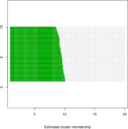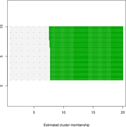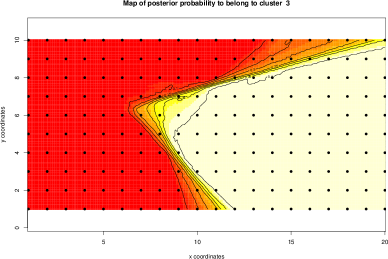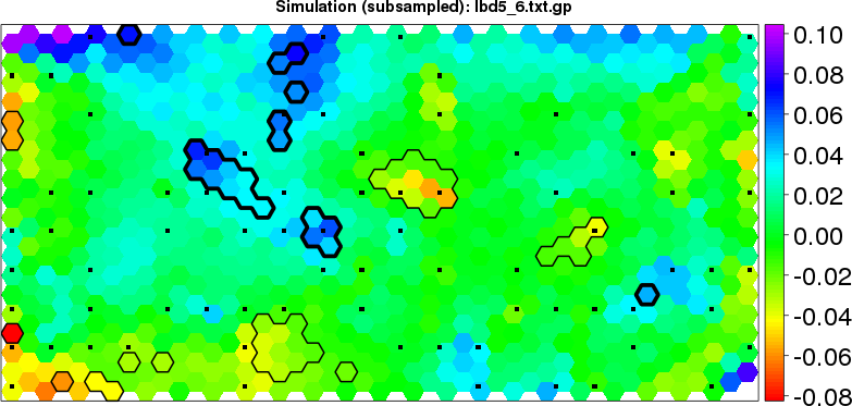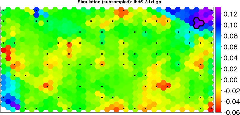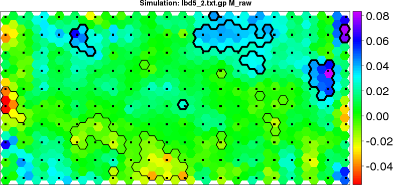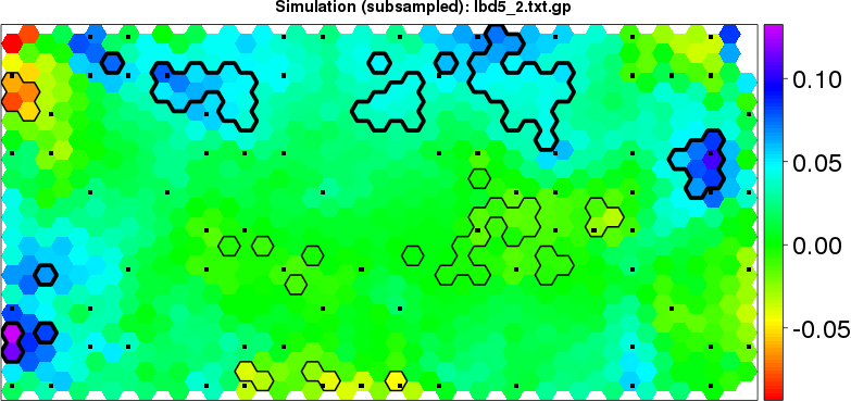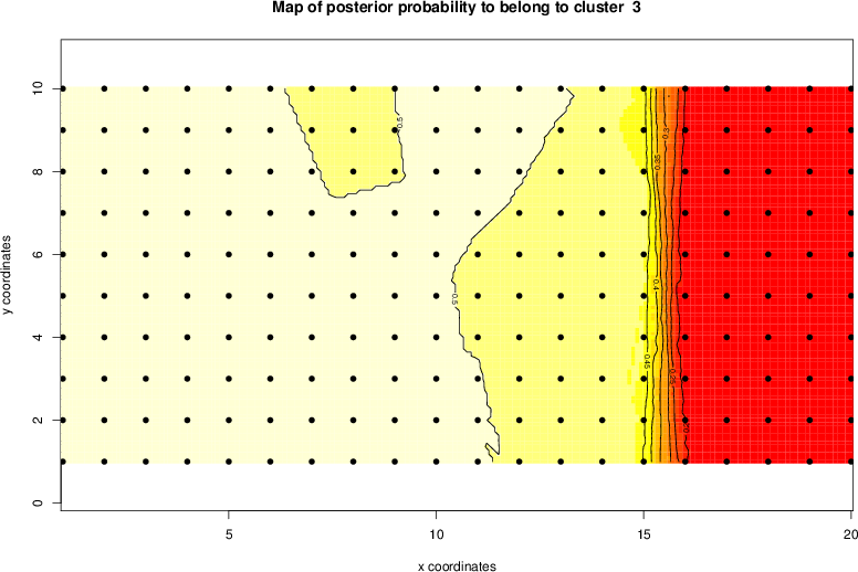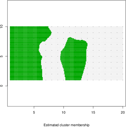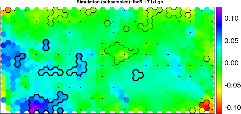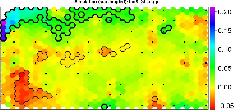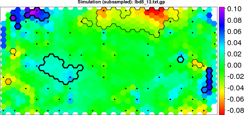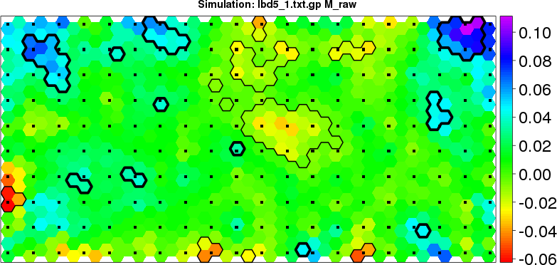 Simulated data | Geographical plots of weighted mean of all ellipse values (i.e., individual genetic distances ar of Rousset 2000) and significant barrier (cells with differentiation values higher than expected under a random distribution (no FDR applied) are materialized with thick black borders) | Idem, Benjamini-Yekutieli FDR applied | MAPI analysis (no FDR applied) with subsampled (75/200) dataset | MAPI analysis (Benjamini-Yekutieli FDR applied) with subsampled (75/200) dataset | Best probability memberships | Probability memberships for cluster 1 | Probability memberships for cluster 2 | Probability memberships for cluster 3 | Probability memberships for cluster 4 | Probability memberships for cluster 5 | Best probability memberships | Probability memberships for cluster 1 | Probability memberships for cluster 2 | Probability memberships for cluster 3 | Probability memberships for cluster 4 | Probability memberships for cluster 5 | Scatter plot showing the first two components of the DAPC (when K*>2) or density plot showing the first principal component of the DAPC (when K*=2) | Probability memberships for cluster 1 | Probability memberships for cluster 2 | Probability memberships for cluster 3 | Probability memberships for cluster 4 | Probability memberships for cluster 5 | Scatter plot showing the first two components of the DAPC (when K*>2) or density plot showing the first principal component of the DAPC (when K*=2) | Probability memberships for cluster 1 | Probability memberships for cluster 2 | Probability memberships for cluster 3 | Probability memberships for cluster 4 | Probability memberships for cluster 5 |