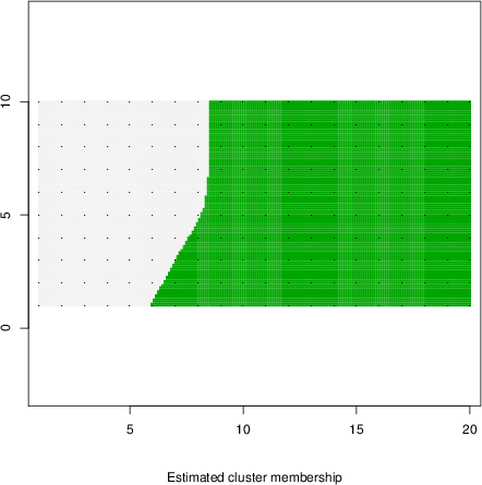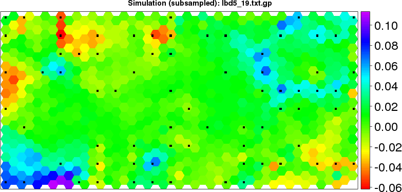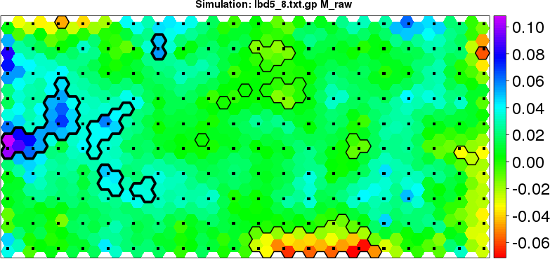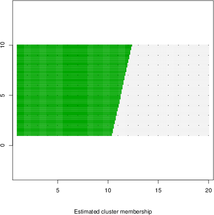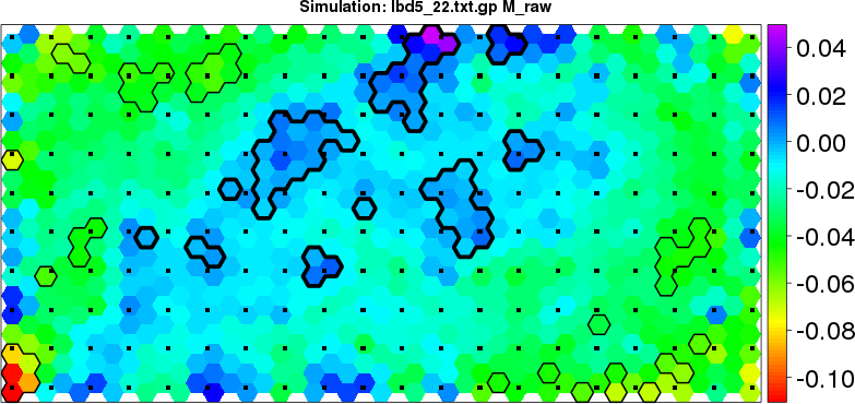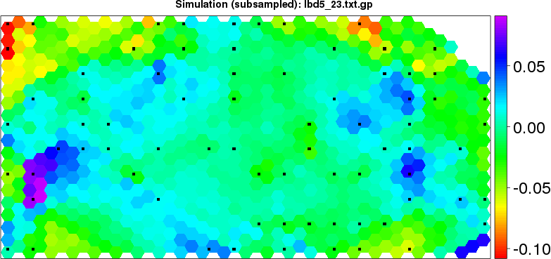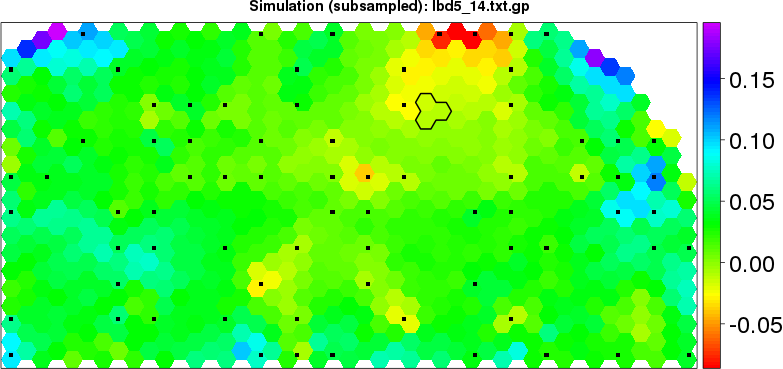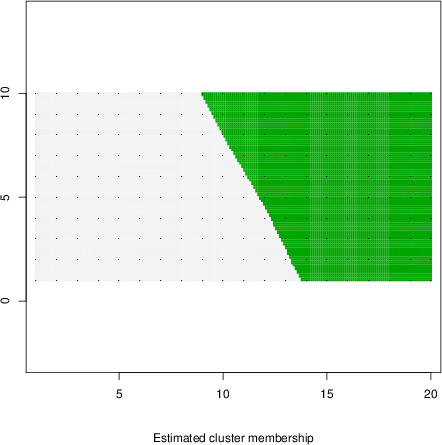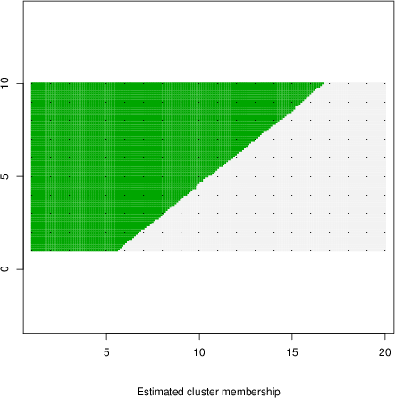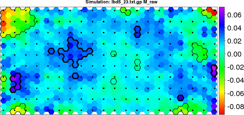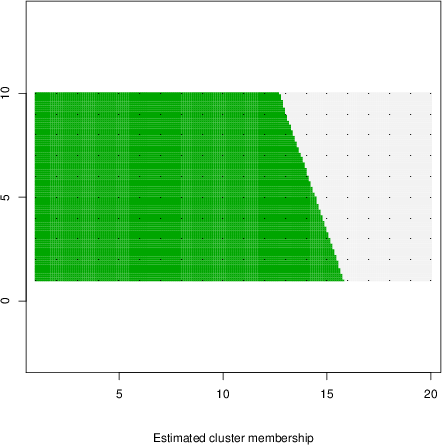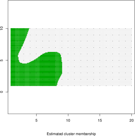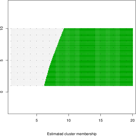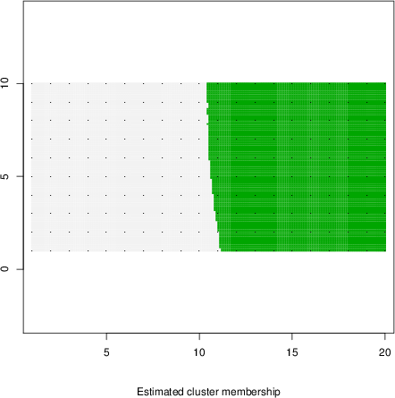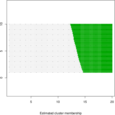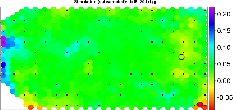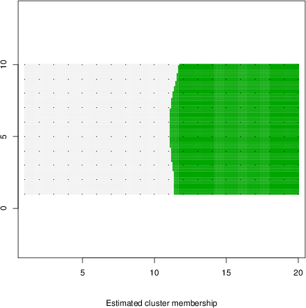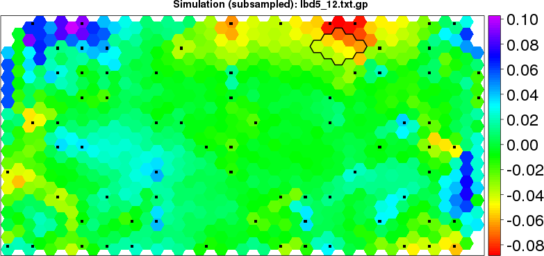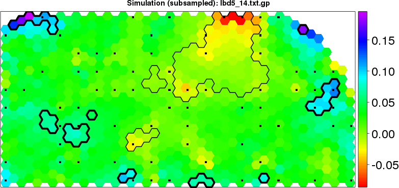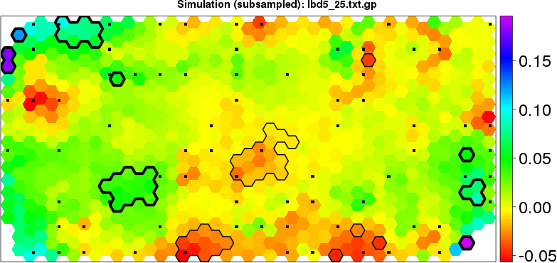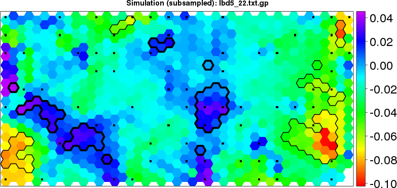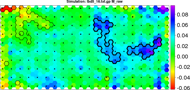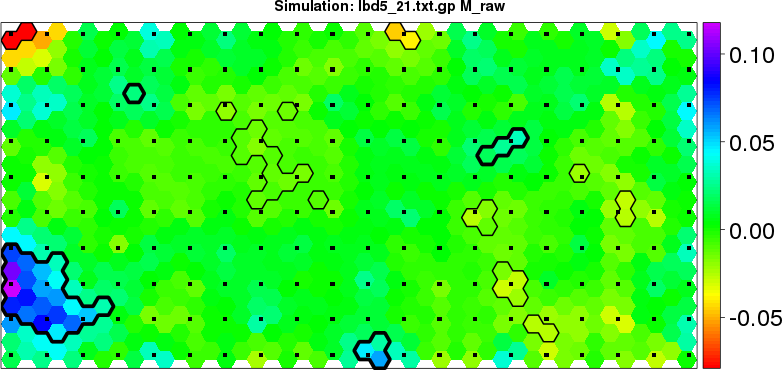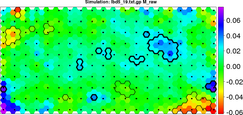 Simulated data | Geographical plots of weighted mean of all ellipse values (i.e., individual genetic distances ar of Rousset 2000) and significant barrier (cells with differentiation values higher than expected under a random distribution (no FDR applied) are materialized with thick black borders) | Idem, Benjamini-Yekutieli FDR applied | MAPI analysis (no FDR applied) with subsampled (75/200) dataset | MAPI analysis (Benjamini-Yekutieli FDR applied) with subsampled (75/200) dataset | Best probability memberships | Probability memberships for cluster 1 | Probability memberships for cluster 2 | Probability memberships for cluster 3 | Probability memberships for cluster 4 | Probability memberships for cluster 5 | Best probability memberships | Probability memberships for cluster 1 | Probability memberships for cluster 2 | Probability memberships for cluster 3 | Probability memberships for cluster 4 | Probability memberships for cluster 5 | Scatter plot showing the first two components of the DAPC (when K*>2) or density plot showing the first principal component of the DAPC (when K*=2) | Probability memberships for cluster 1 | Probability memberships for cluster 2 | Probability memberships for cluster 3 | Probability memberships for cluster 4 | Probability memberships for cluster 5 | Scatter plot showing the first two components of the DAPC (when K*>2) or density plot showing the first principal component of the DAPC (when K*=2) | Probability memberships for cluster 1 | Probability memberships for cluster 2 | Probability memberships for cluster 3 | Probability memberships for cluster 4 | Probability memberships for cluster 5 |