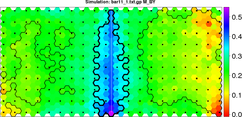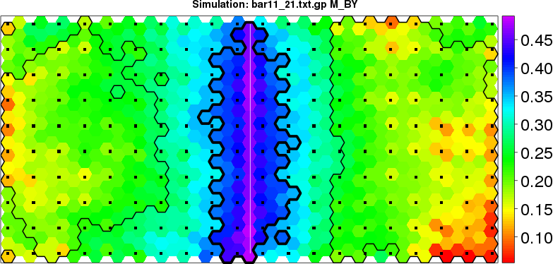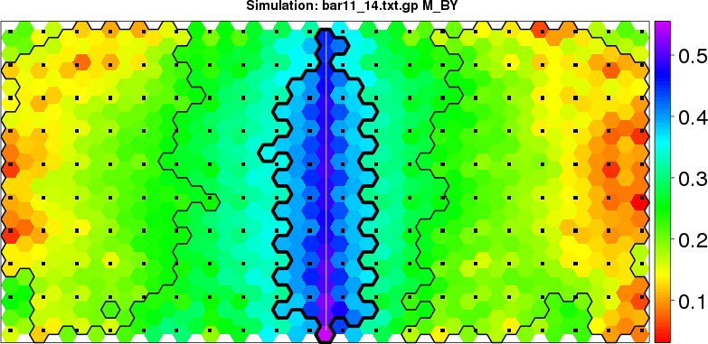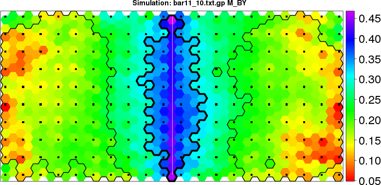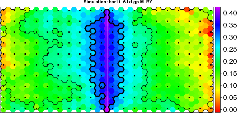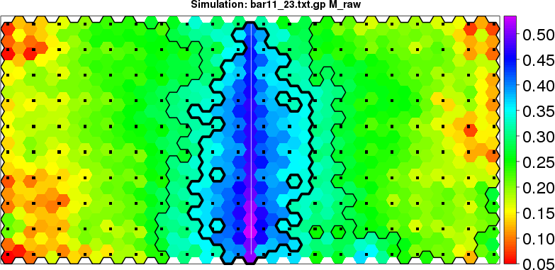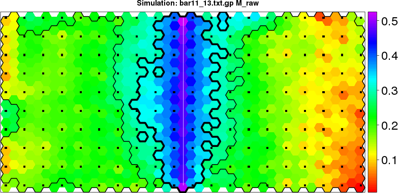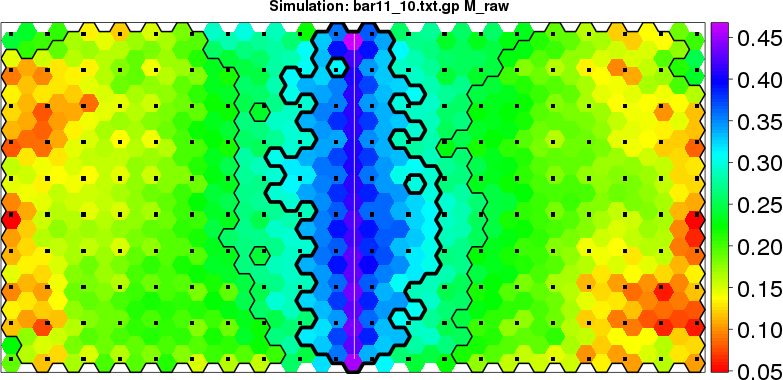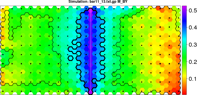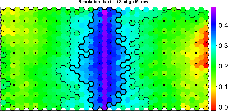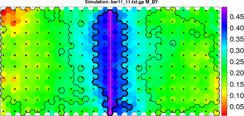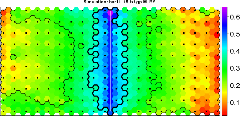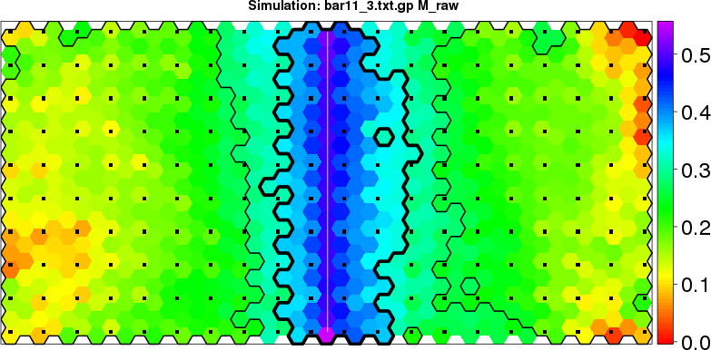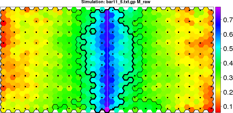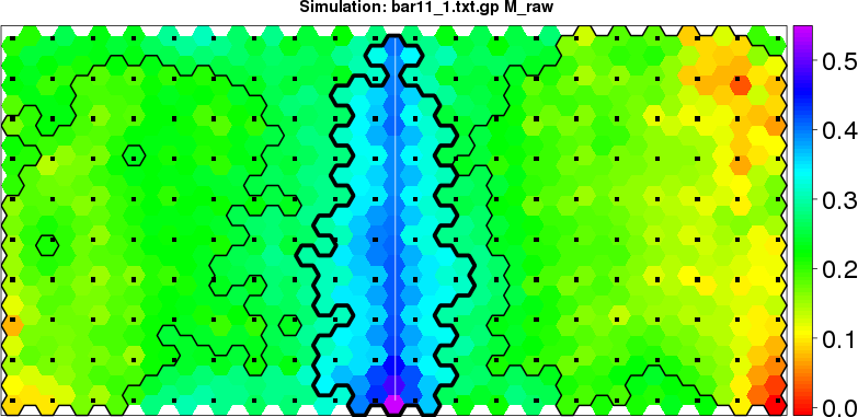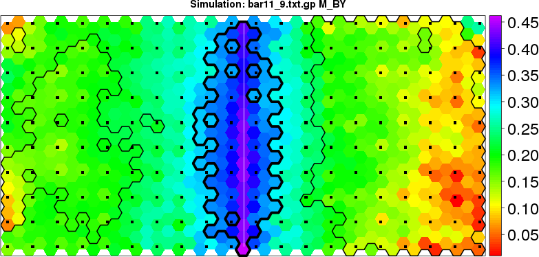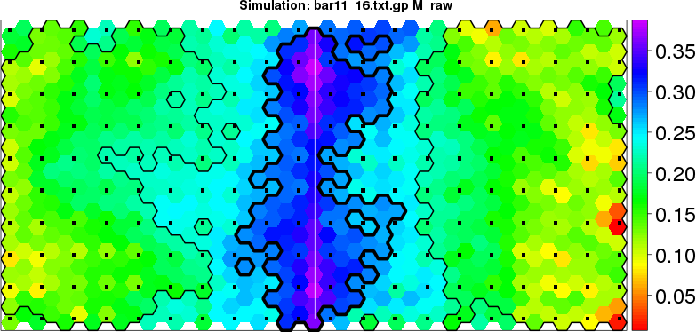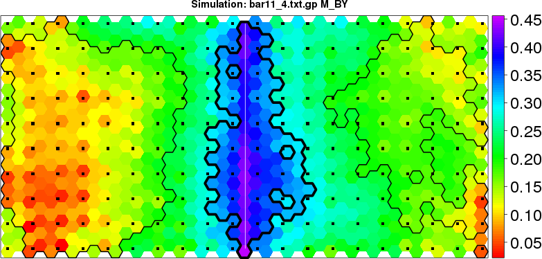 Simulated data | Geographical plots of weighted mean of all ellipse values (i.e., individual genetic distances ar of Rousset 2000) and significant barrier (cells with differentiation values higher than expected under a random distribution (no FDR applied) are materialized with thick black borders) | Idem, Benjamini-Yekutieli FDR applied | MAPI analysis (no FDR applied) with subsampled (75/200) dataset | MAPI analysis (Benjamini-Yekutieli FDR applied) with subsampled (75/200) dataset | Best probability memberships | Probability memberships for cluster 1 | Probability memberships for cluster 2 | Probability memberships for cluster 3 | Probability memberships for cluster 4 | Probability memberships for cluster 5 | Best probability memberships | Probability memberships for cluster 1 | Probability memberships for cluster 2 | Probability memberships for cluster 3 | Probability memberships for cluster 4 | Probability memberships for cluster 5 | Scatter plot showing the first two components of the DAPC (when K*>2) or density plot showing the first principal component of the DAPC (when K*=2) | Probability memberships for cluster 1 | Probability memberships for cluster 2 | Probability memberships for cluster 3 | Probability memberships for cluster 4 | Probability memberships for cluster 5 | Scatter plot showing the first two components of the DAPC (when K*>2) or density plot showing the first principal component of the DAPC (when K*=2) | Probability memberships for cluster 1 | Probability memberships for cluster 2 | Probability memberships for cluster 3 | Probability memberships for cluster 4 | Probability memberships for cluster 5 |
