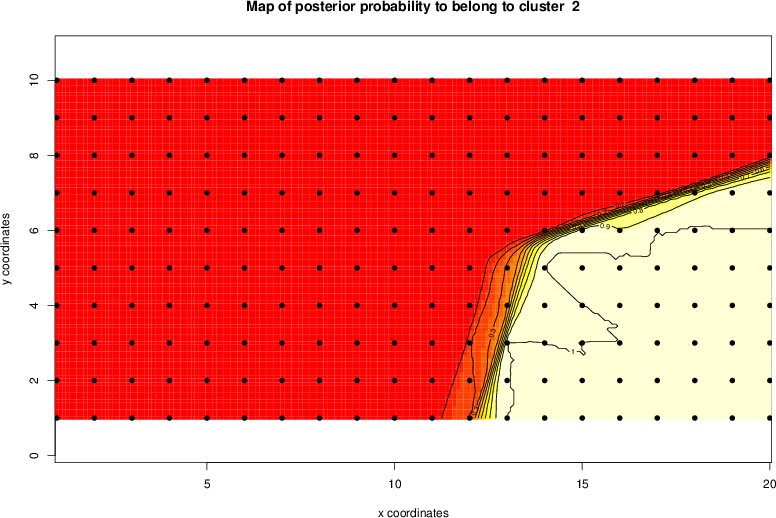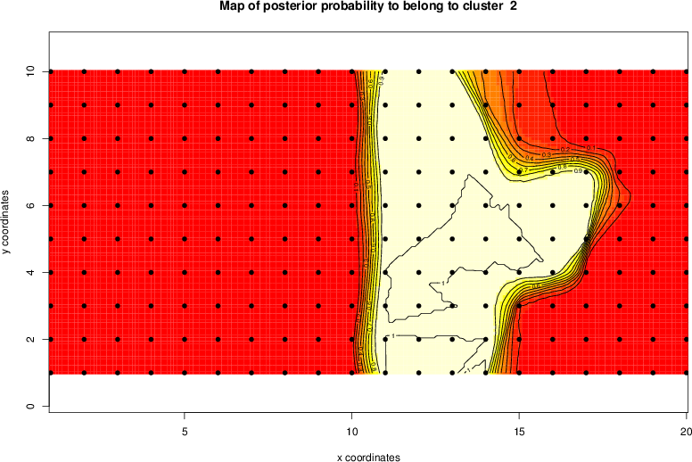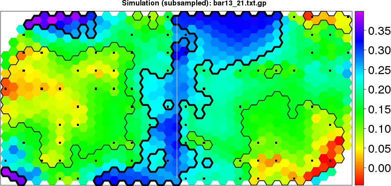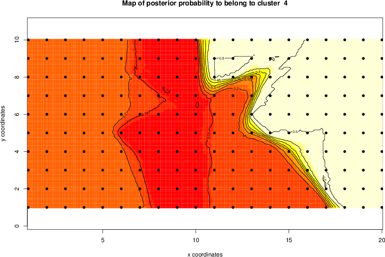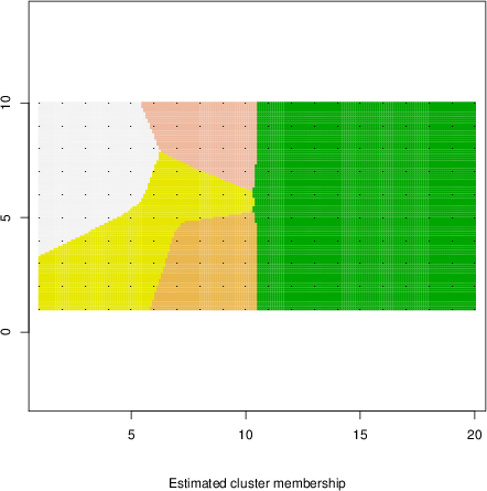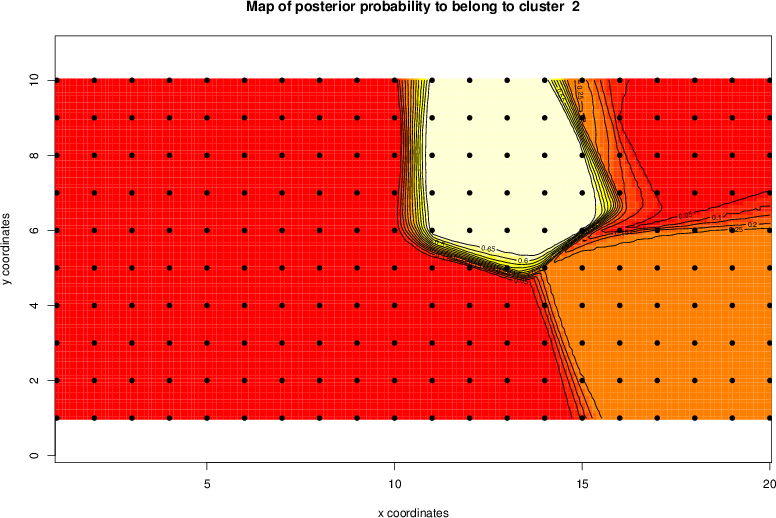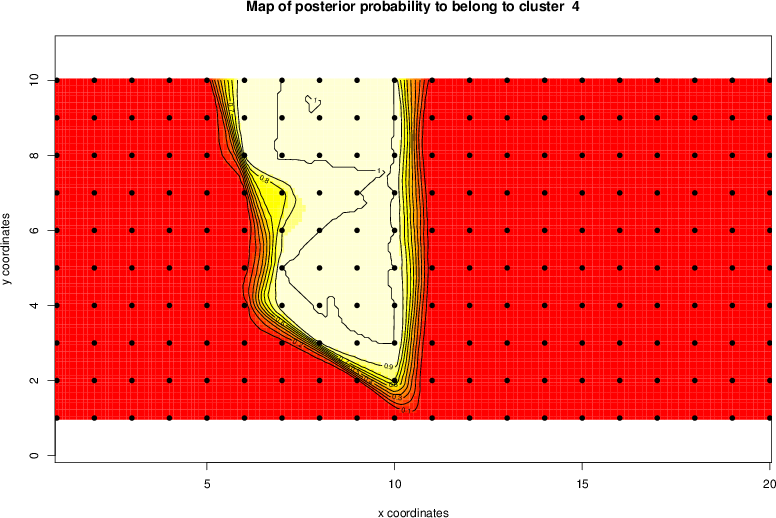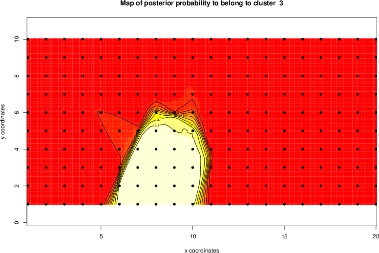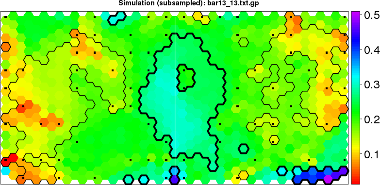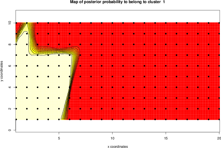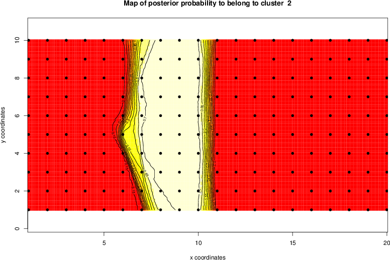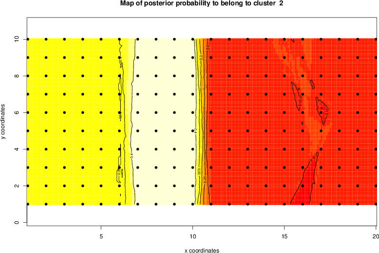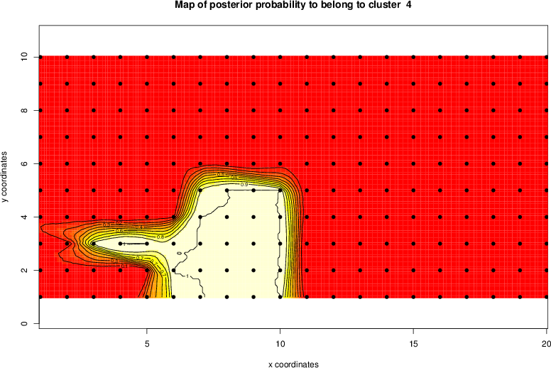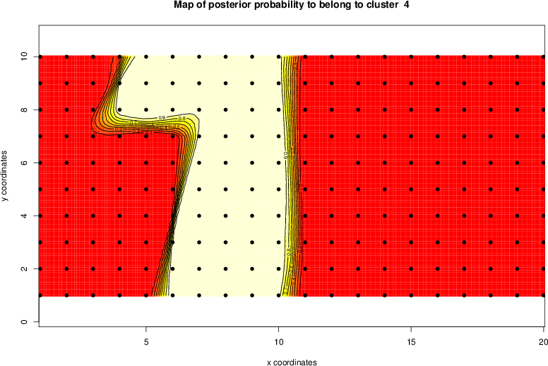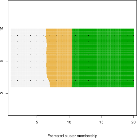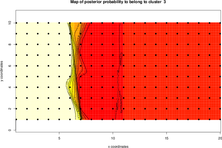 Simulated data | Geographical plots of weighted mean of all ellipse values (i.e., individual genetic distances ar of Rousset 2000) and significant barrier (cells with differentiation values higher than expected under a random distribution (no FDR applied) are materialized with thick black borders) | Idem, Benjamini-Yekutieli FDR applied | MAPI analysis (no FDR applied) with subsampled (75/200) dataset | MAPI analysis (Benjamini-Yekutieli FDR applied) with subsampled (75/200) dataset | Best probability memberships | Probability memberships for cluster 1 | Probability memberships for cluster 2 | Probability memberships for cluster 3 | Probability memberships for cluster 4 | Probability memberships for cluster 5 | Best probability memberships | Probability memberships for cluster 1 | Probability memberships for cluster 2 | Probability memberships for cluster 3 | Probability memberships for cluster 4 | Probability memberships for cluster 5 | Scatter plot showing the first two components of the DAPC (when K*>2) or density plot showing the first principal component of the DAPC (when K*=2) | Probability memberships for cluster 1 | Probability memberships for cluster 2 | Probability memberships for cluster 3 | Probability memberships for cluster 4 | Probability memberships for cluster 5 | Scatter plot showing the first two components of the DAPC (when K*>2) or density plot showing the first principal component of the DAPC (when K*=2) | Probability memberships for cluster 1 | Probability memberships for cluster 2 | Probability memberships for cluster 3 | Probability memberships for cluster 4 | Probability memberships for cluster 5 |