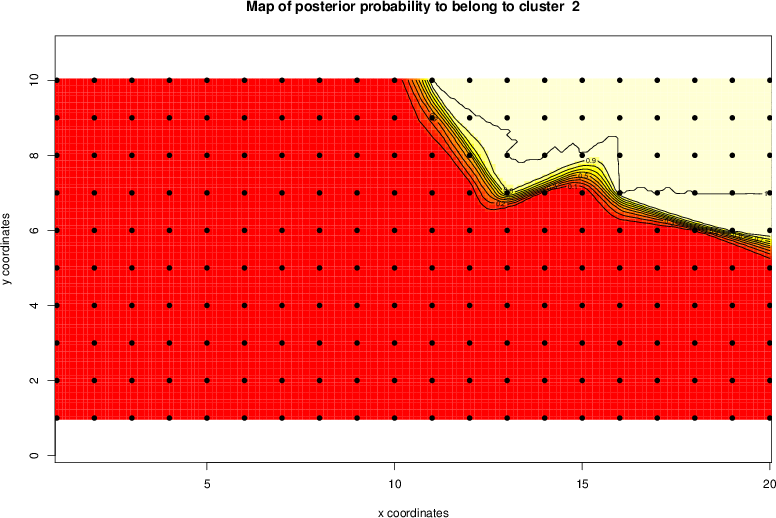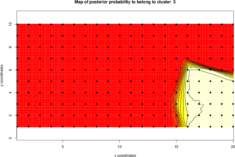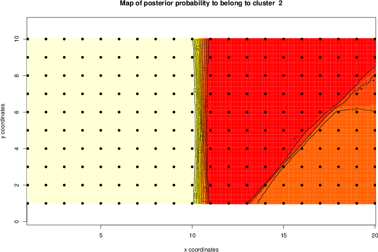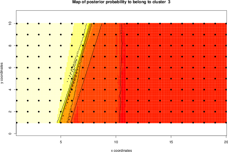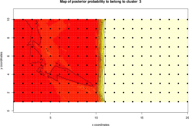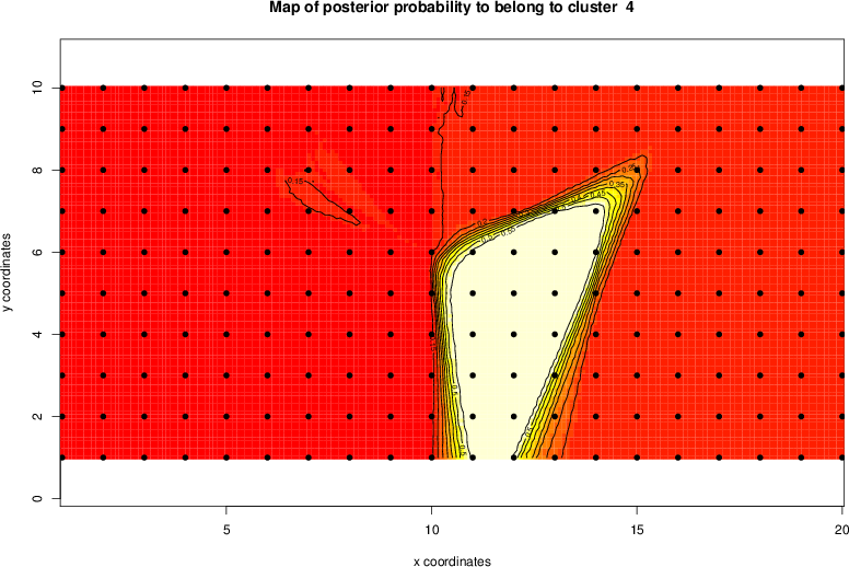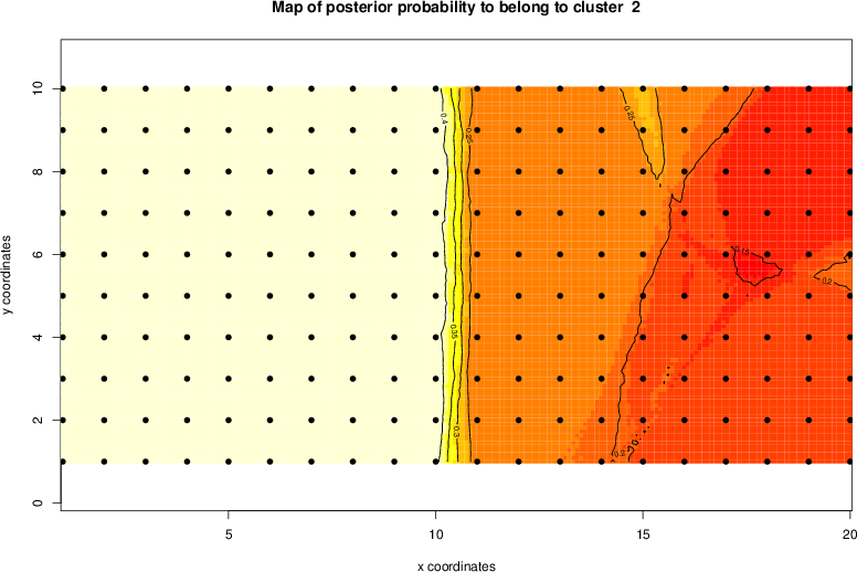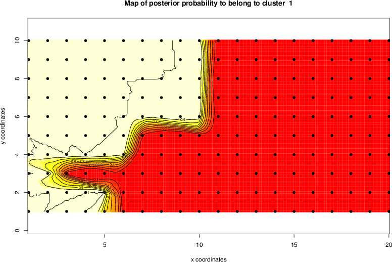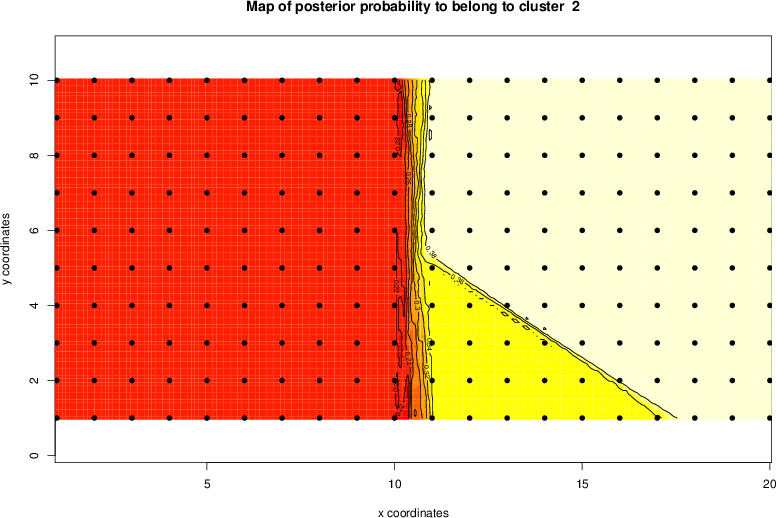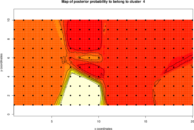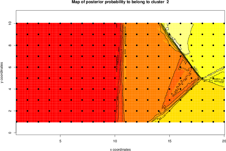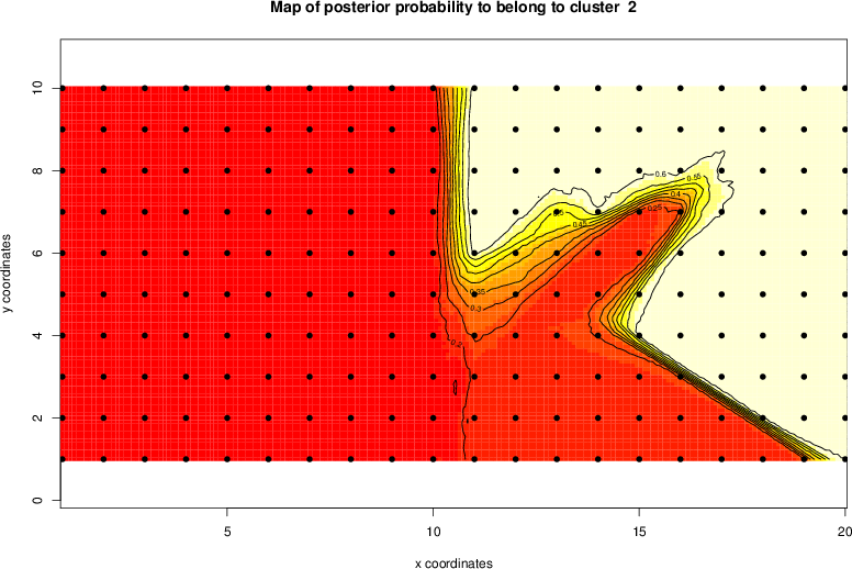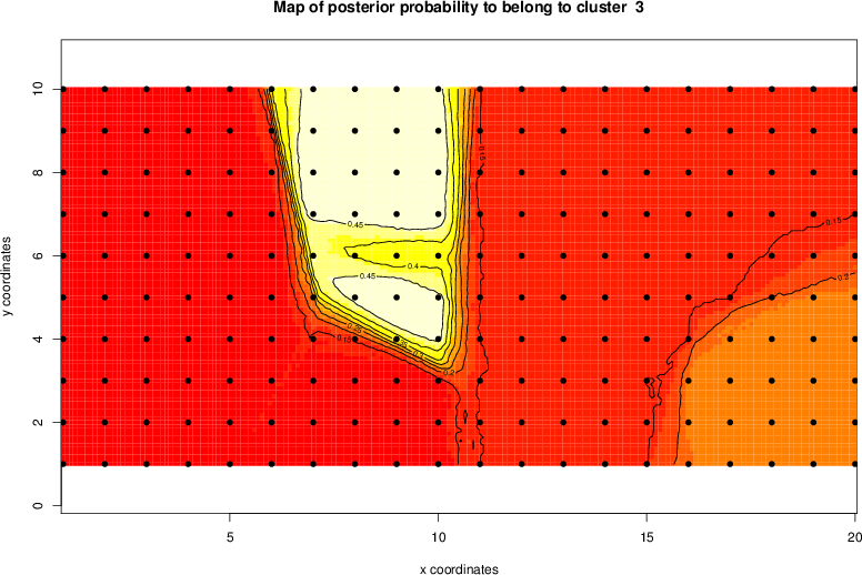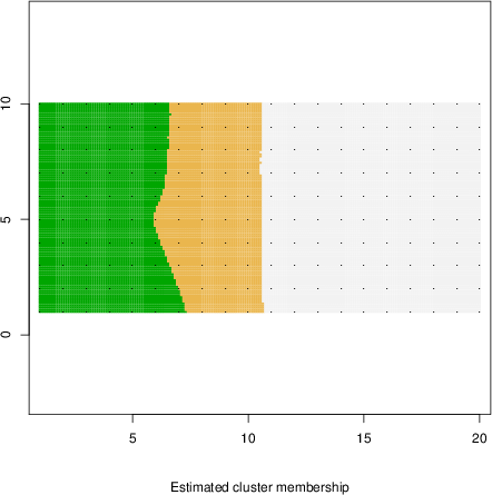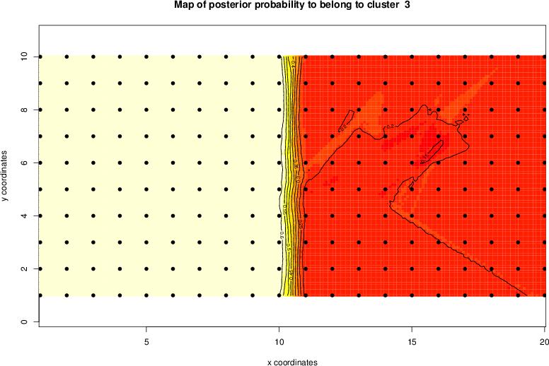 Simulated data | Geographical plots of weighted mean of all ellipse values (i.e., individual genetic distances ar of Rousset 2000) and significant barrier (cells with differentiation values higher than expected under a random distribution (no FDR applied) are materialized with thick black borders) | Idem, Benjamini-Yekutieli FDR applied | MAPI analysis (no FDR applied) with subsampled (75/200) dataset | MAPI analysis (Benjamini-Yekutieli FDR applied) with subsampled (75/200) dataset | Best probability memberships | Probability memberships for cluster 1 | Probability memberships for cluster 2 | Probability memberships for cluster 3 | Probability memberships for cluster 4 | Probability memberships for cluster 5 | Best probability memberships | Probability memberships for cluster 1 | Probability memberships for cluster 2 | Probability memberships for cluster 3 | Probability memberships for cluster 4 | Probability memberships for cluster 5 | Scatter plot showing the first two components of the DAPC (when K*>2) or density plot showing the first principal component of the DAPC (when K*=2) | Probability memberships for cluster 1 | Probability memberships for cluster 2 | Probability memberships for cluster 3 | Probability memberships for cluster 4 | Probability memberships for cluster 5 | Scatter plot showing the first two components of the DAPC (when K*>2) or density plot showing the first principal component of the DAPC (when K*=2) | Probability memberships for cluster 1 | Probability memberships for cluster 2 | Probability memberships for cluster 3 | Probability memberships for cluster 4 | Probability memberships for cluster 5 |