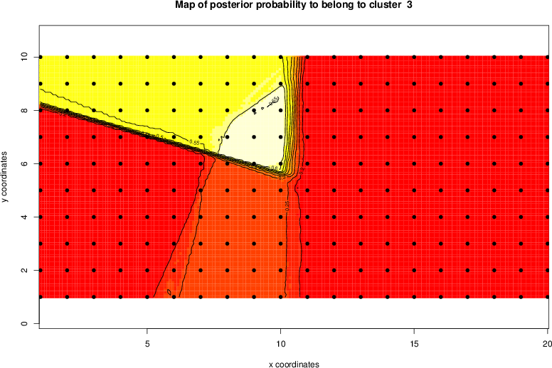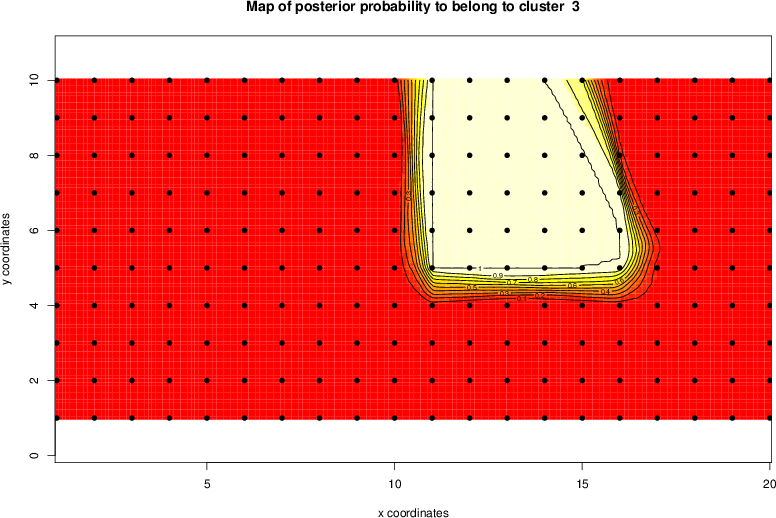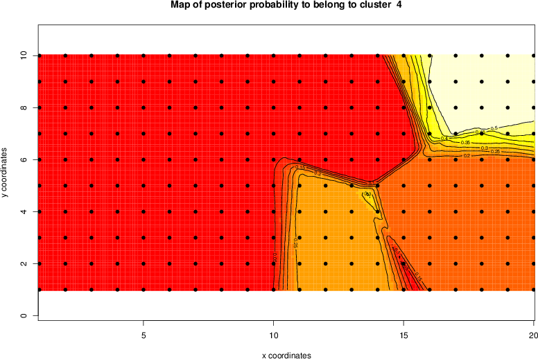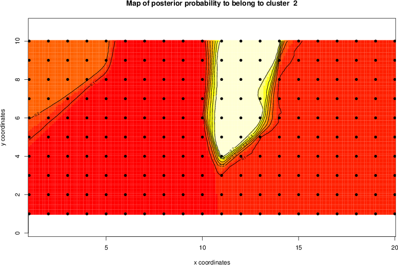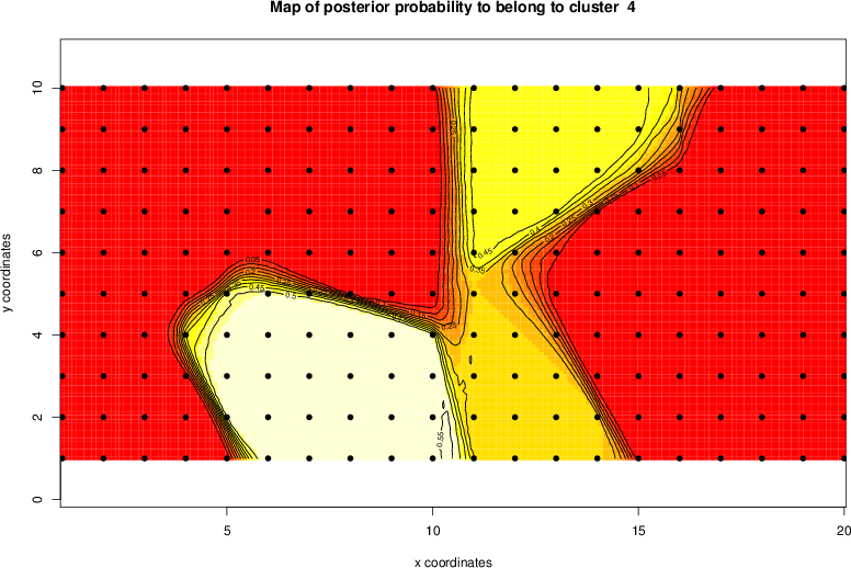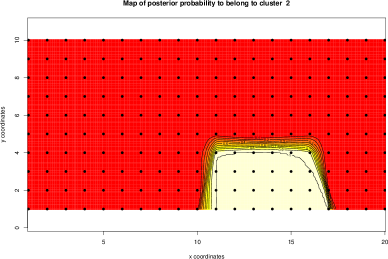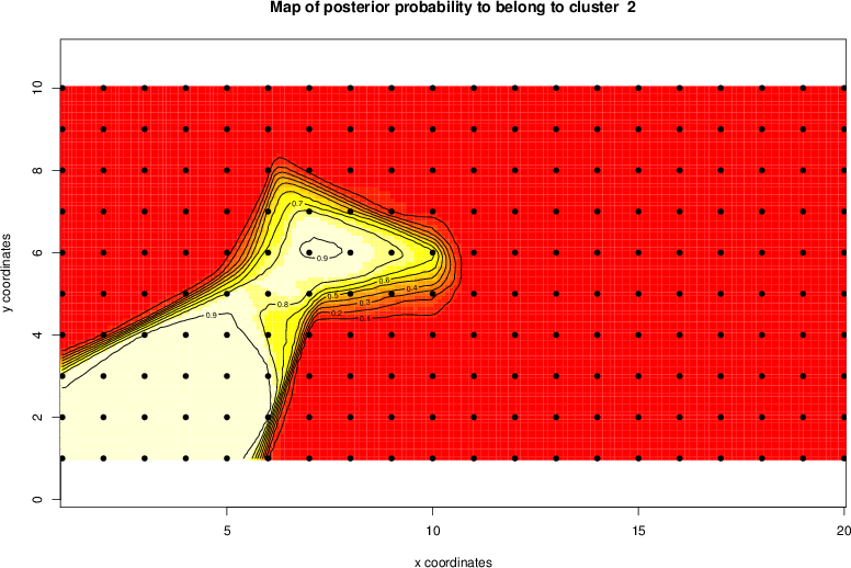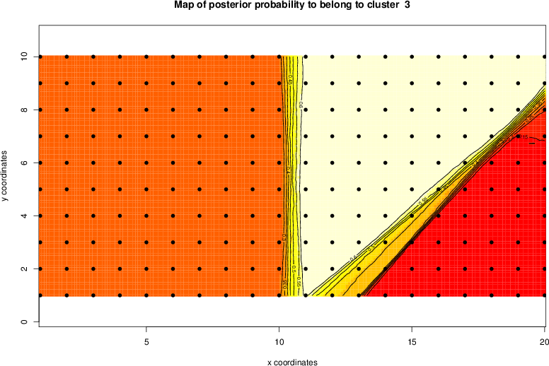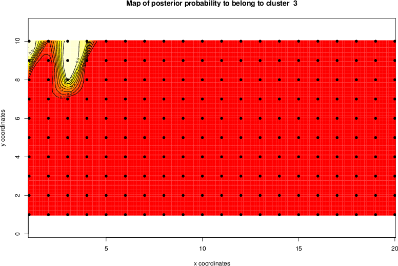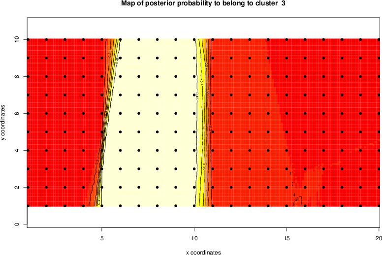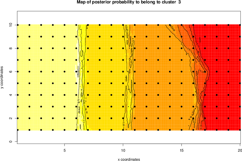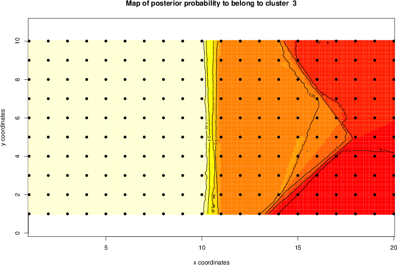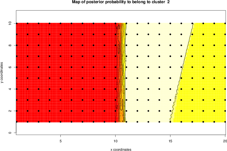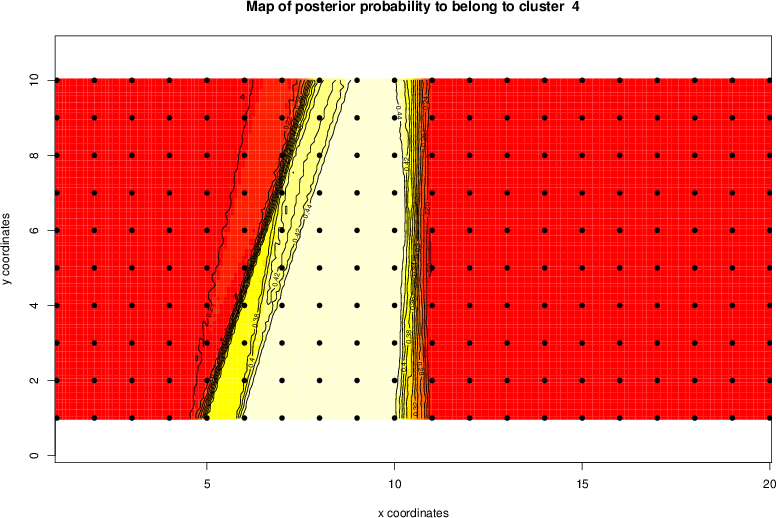 Simulated data | Geographical plots of weighted mean of all ellipse values (i.e., individual genetic distances ar of Rousset 2000) and significant barrier (cells with differentiation values higher than expected under a random distribution (no FDR applied) are materialized with thick black borders) | Idem, Benjamini-Yekutieli FDR applied | MAPI analysis (no FDR applied) with subsampled (75/200) dataset | MAPI analysis (Benjamini-Yekutieli FDR applied) with subsampled (75/200) dataset | Best probability memberships | Probability memberships for cluster 1 | Probability memberships for cluster 2 | Probability memberships for cluster 3 | Probability memberships for cluster 4 | Probability memberships for cluster 5 | Best probability memberships | Probability memberships for cluster 1 | Probability memberships for cluster 2 | Probability memberships for cluster 3 | Probability memberships for cluster 4 | Probability memberships for cluster 5 | Scatter plot showing the first two components of the DAPC (when K*>2) or density plot showing the first principal component of the DAPC (when K*=2) | Probability memberships for cluster 1 | Probability memberships for cluster 2 | Probability memberships for cluster 3 | Probability memberships for cluster 4 | Probability memberships for cluster 5 | Scatter plot showing the first two components of the DAPC (when K*>2) or density plot showing the first principal component of the DAPC (when K*=2) | Probability memberships for cluster 1 | Probability memberships for cluster 2 | Probability memberships for cluster 3 | Probability memberships for cluster 4 | Probability memberships for cluster 5 |