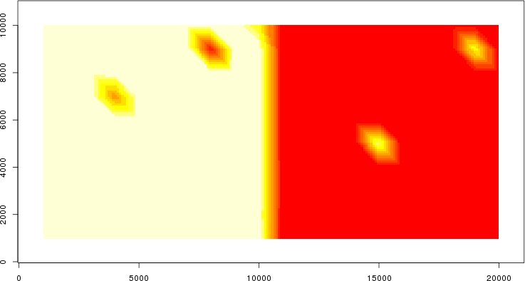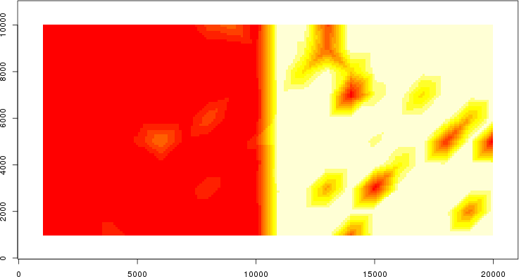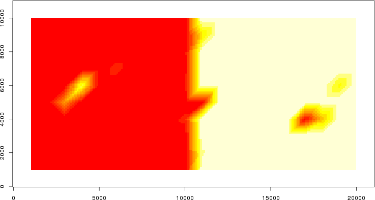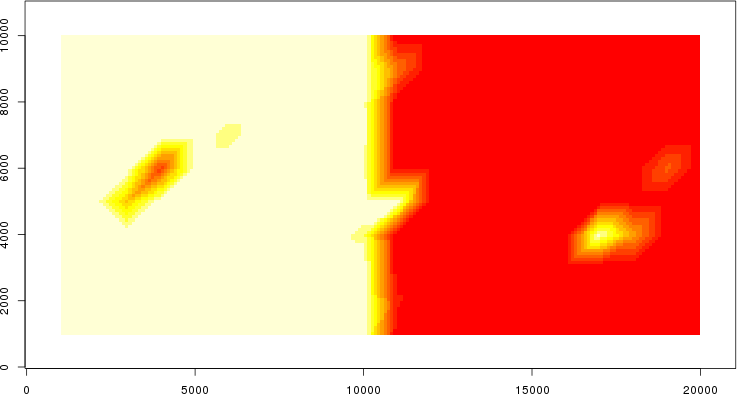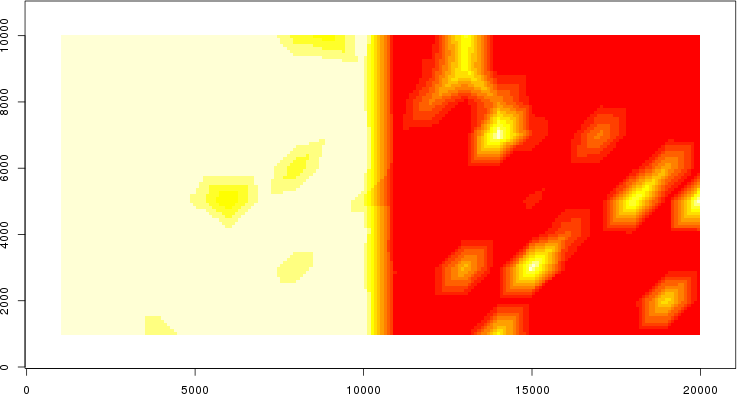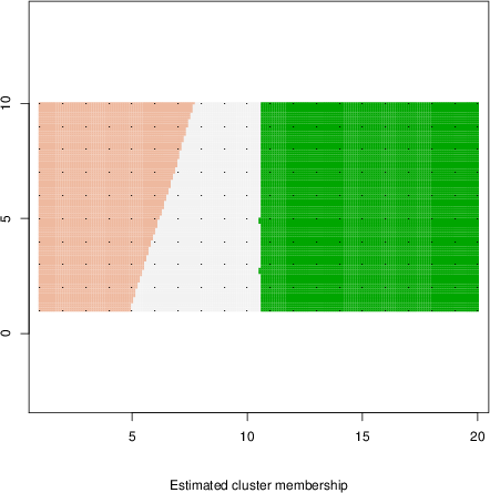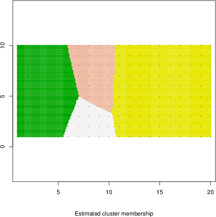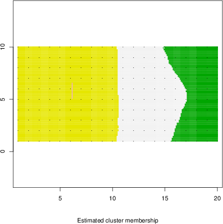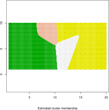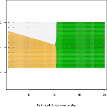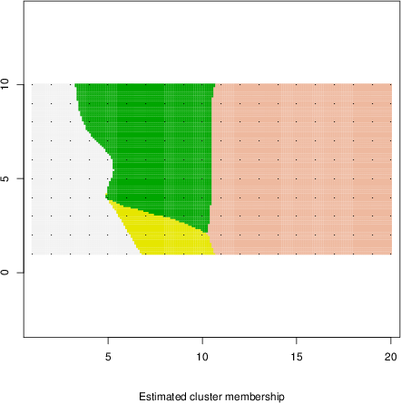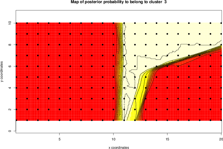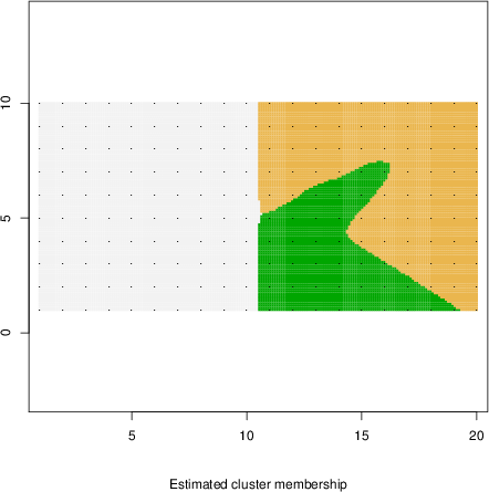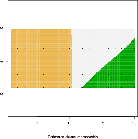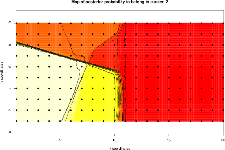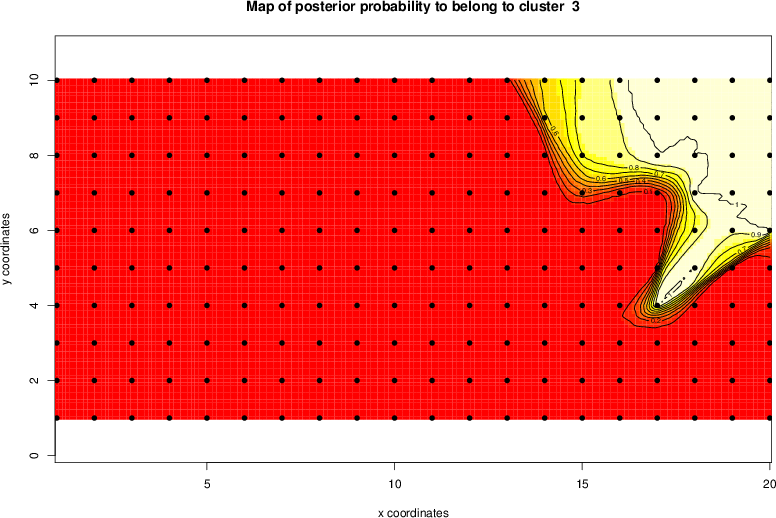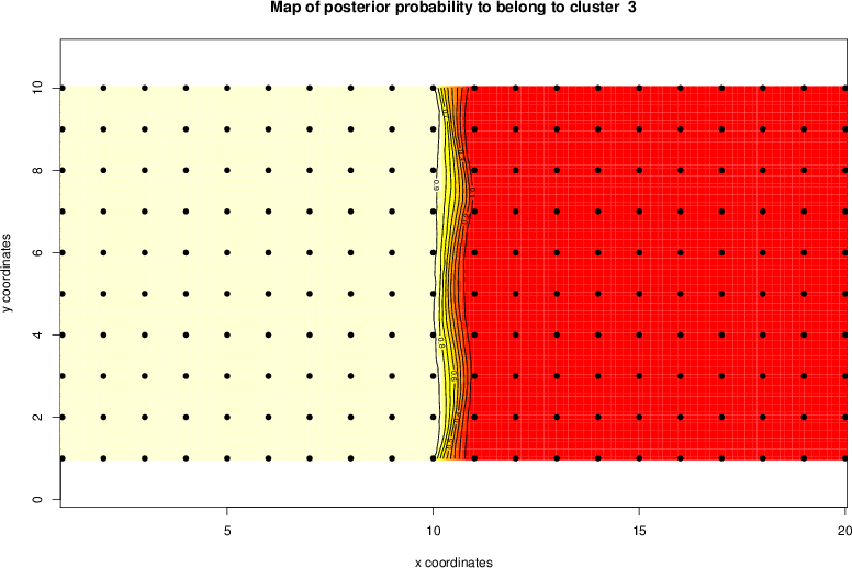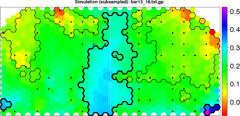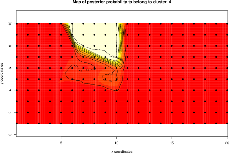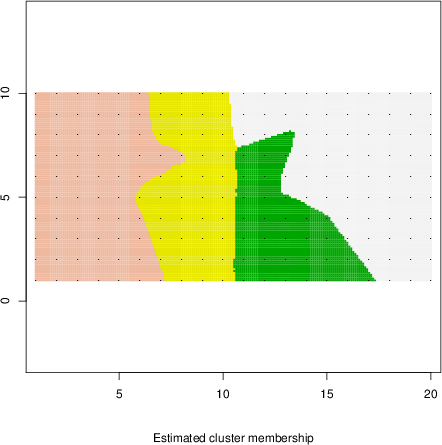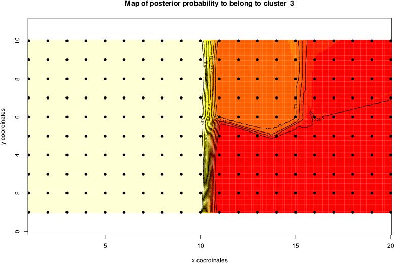 Simulated data | Geographical plots of weighted mean of all ellipse values (i.e., individual genetic distances ar of Rousset 2000) and significant barrier (cells with differentiation values higher than expected under a random distribution (no FDR applied) are materialized with thick black borders) | Idem, Benjamini-Yekutieli FDR applied | MAPI analysis (no FDR applied) with subsampled (75/200) dataset | MAPI analysis (Benjamini-Yekutieli FDR applied) with subsampled (75/200) dataset | Best probability memberships | Probability memberships for cluster 1 | Probability memberships for cluster 2 | Probability memberships for cluster 3 | Probability memberships for cluster 4 | Probability memberships for cluster 5 | Best probability memberships | Probability memberships for cluster 1 | Probability memberships for cluster 2 | Probability memberships for cluster 3 | Probability memberships for cluster 4 | Probability memberships for cluster 5 | Scatter plot showing the first two components of the DAPC (when K*>2) or density plot showing the first principal component of the DAPC (when K*=2) | Probability memberships for cluster 1 | Probability memberships for cluster 2 | Probability memberships for cluster 3 | Probability memberships for cluster 4 | Probability memberships for cluster 5 | Scatter plot showing the first two components of the DAPC (when K*>2) or density plot showing the first principal component of the DAPC (when K*=2) | Probability memberships for cluster 1 | Probability memberships for cluster 2 | Probability memberships for cluster 3 | Probability memberships for cluster 4 | Probability memberships for cluster 5 |
