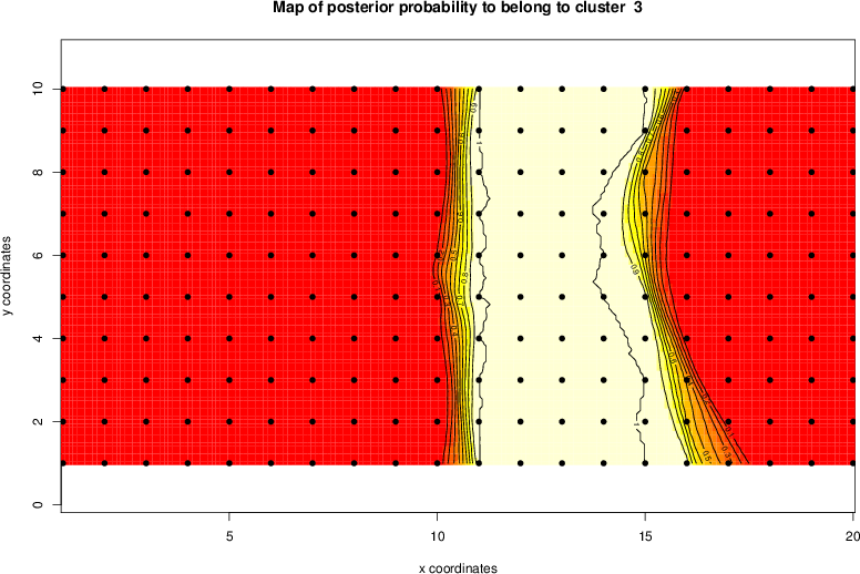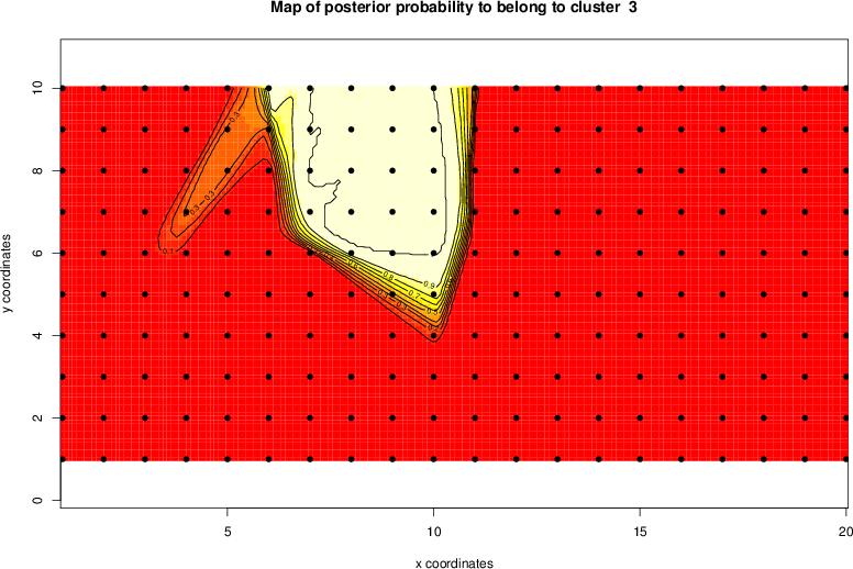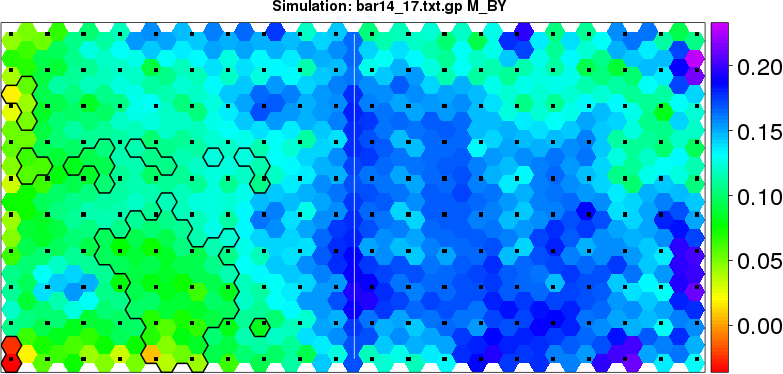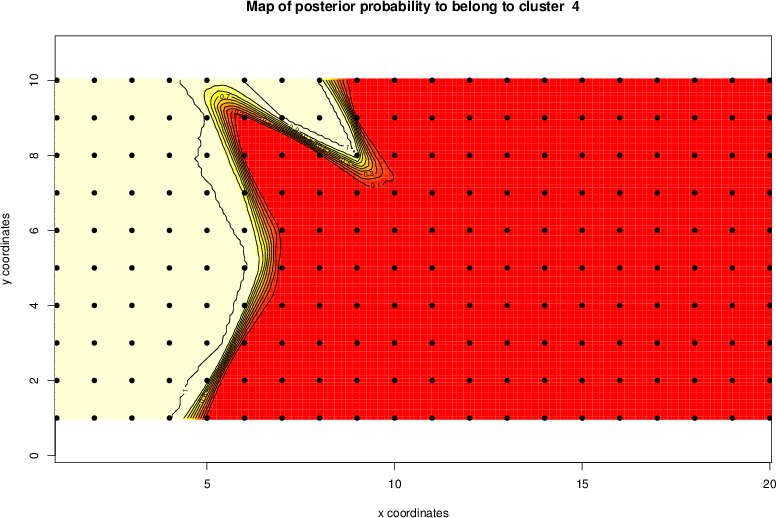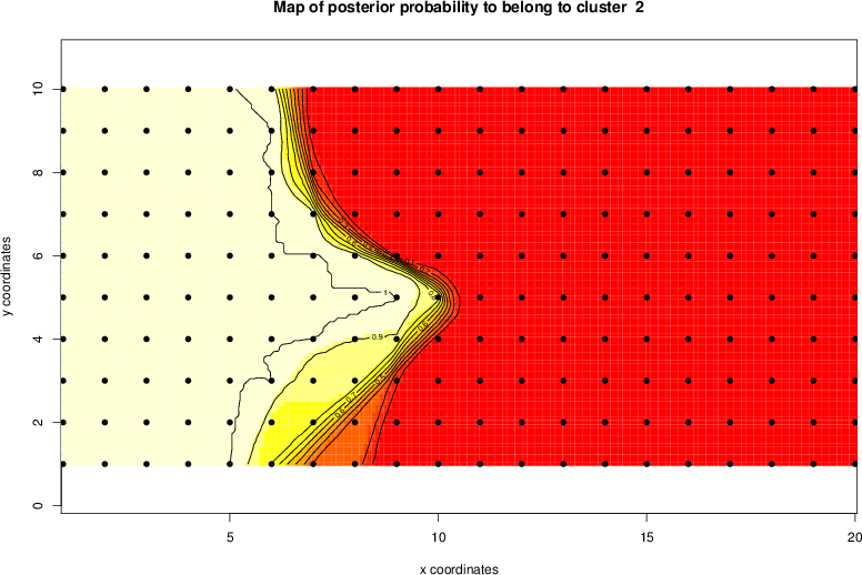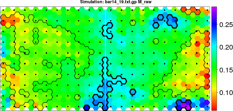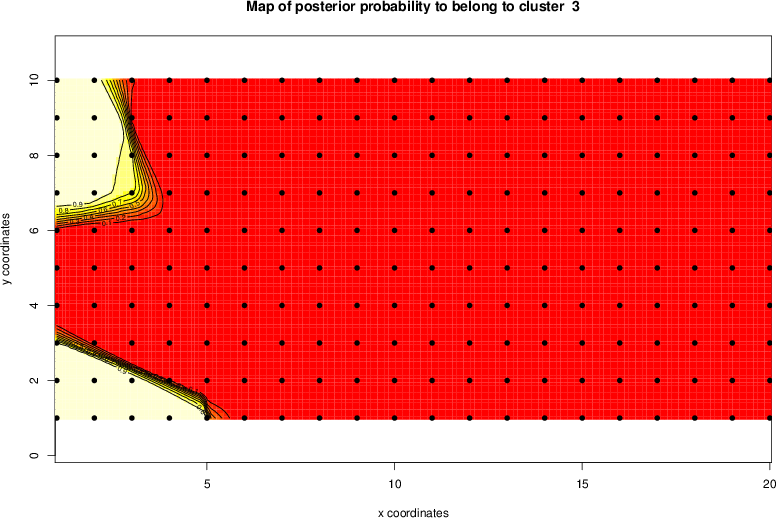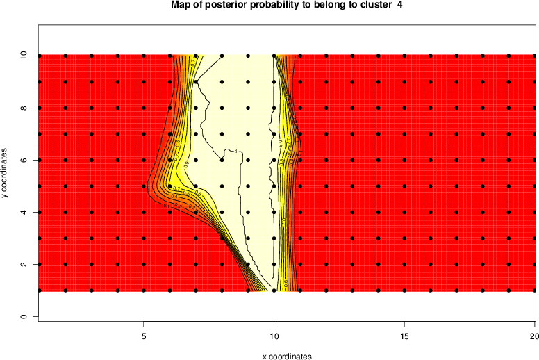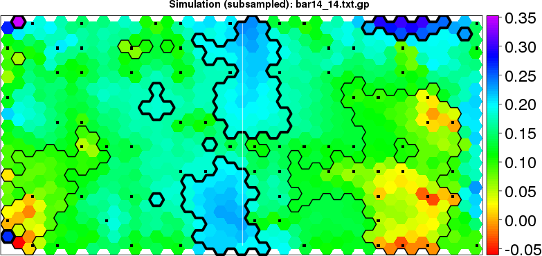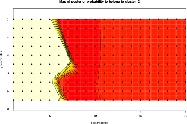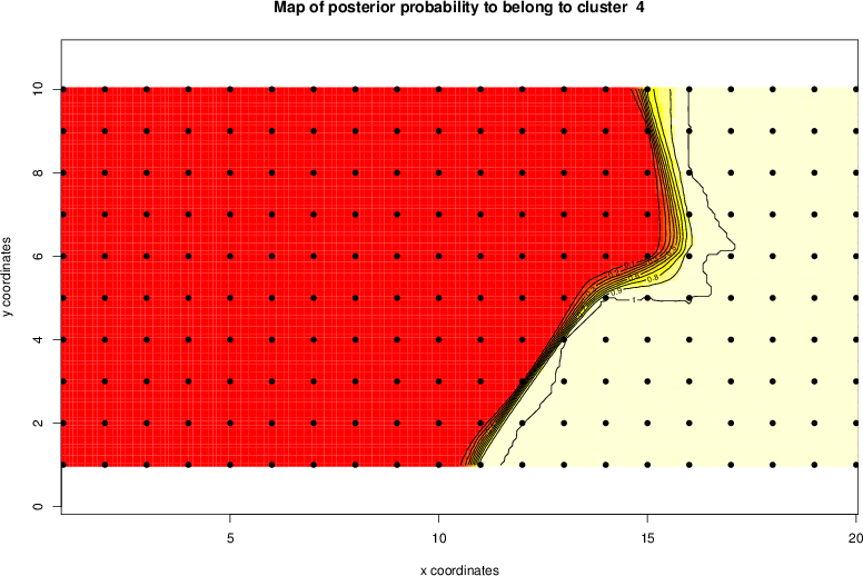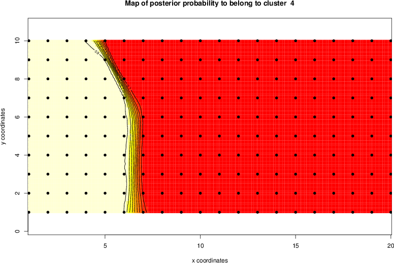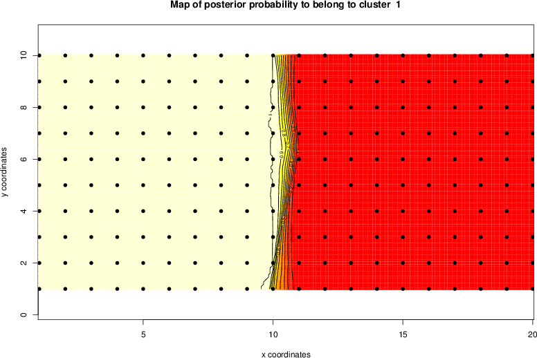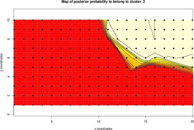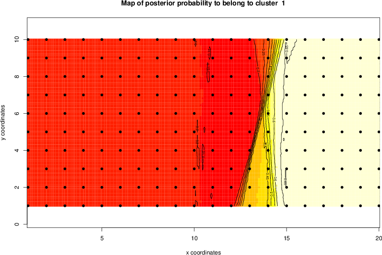 Simulated data | Geographical plots of weighted mean of all ellipse values (i.e., individual genetic distances ar of Rousset 2000) and significant barrier (cells with differentiation values higher than expected under a random distribution (no FDR applied) are materialized with thick black borders) | Idem, Benjamini-Yekutieli FDR applied | MAPI analysis (no FDR applied) with subsampled (75/200) dataset | MAPI analysis (Benjamini-Yekutieli FDR applied) with subsampled (75/200) dataset | Best probability memberships | Probability memberships for cluster 1 | Probability memberships for cluster 2 | Probability memberships for cluster 3 | Probability memberships for cluster 4 | Probability memberships for cluster 5 | Best probability memberships | Probability memberships for cluster 1 | Probability memberships for cluster 2 | Probability memberships for cluster 3 | Probability memberships for cluster 4 | Probability memberships for cluster 5 | Scatter plot showing the first two components of the DAPC (when K*>2) or density plot showing the first principal component of the DAPC (when K*=2) | Probability memberships for cluster 1 | Probability memberships for cluster 2 | Probability memberships for cluster 3 | Probability memberships for cluster 4 | Probability memberships for cluster 5 | Scatter plot showing the first two components of the DAPC (when K*>2) or density plot showing the first principal component of the DAPC (when K*=2) | Probability memberships for cluster 1 | Probability memberships for cluster 2 | Probability memberships for cluster 3 | Probability memberships for cluster 4 | Probability memberships for cluster 5 |