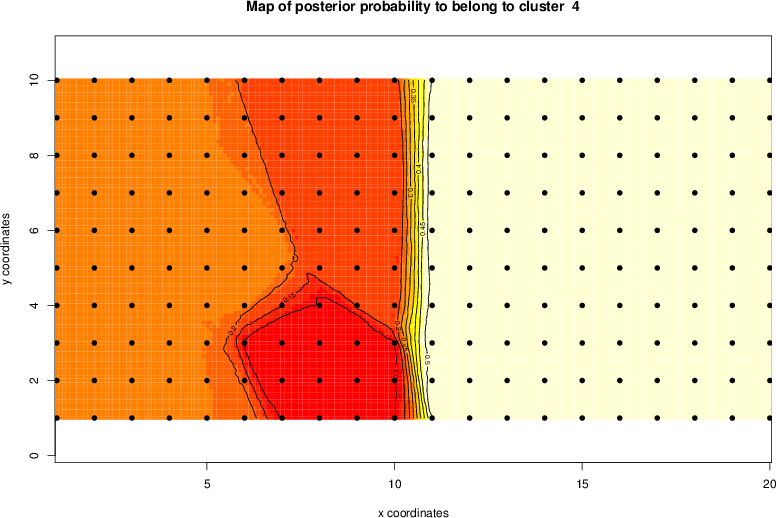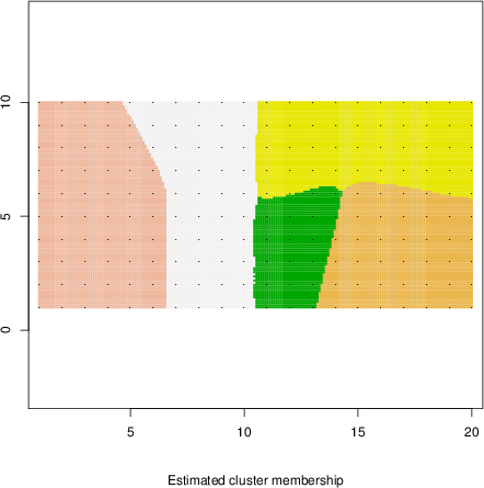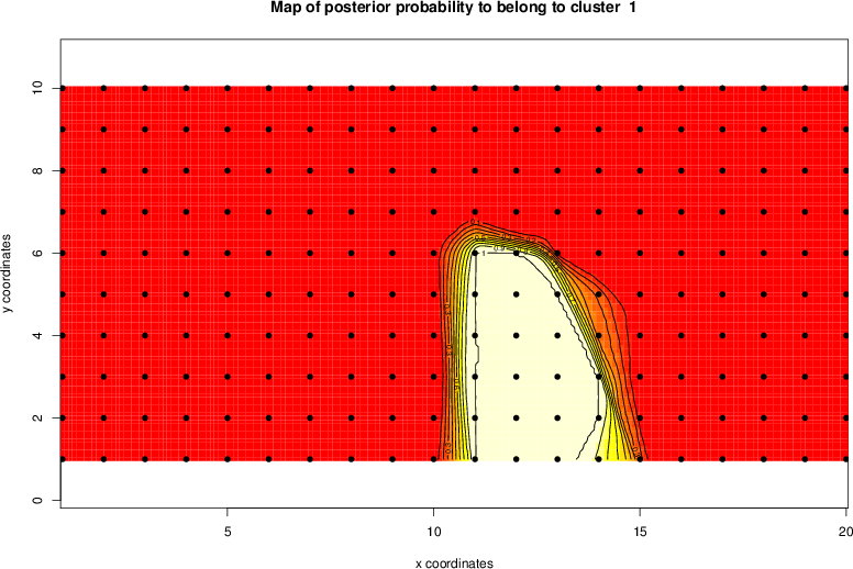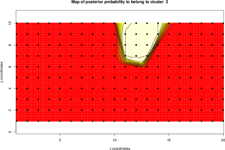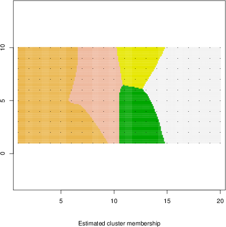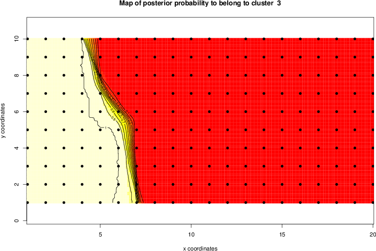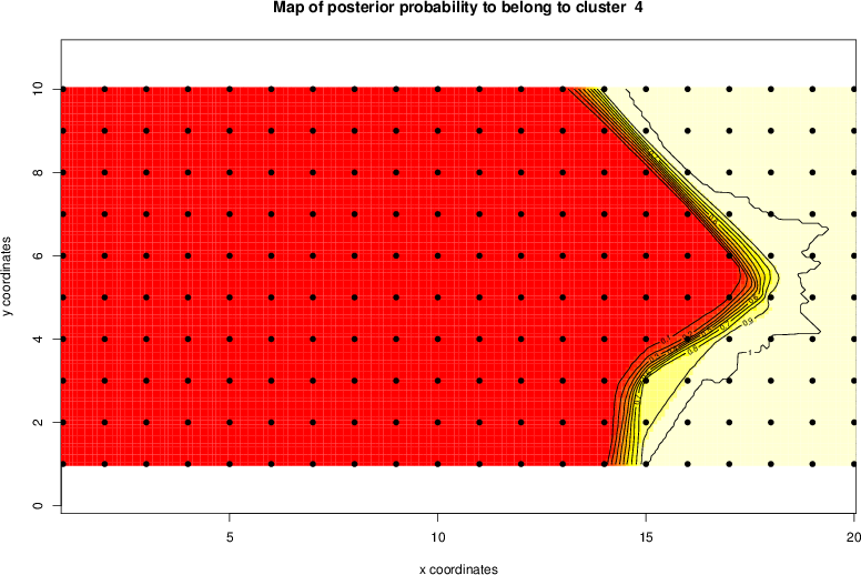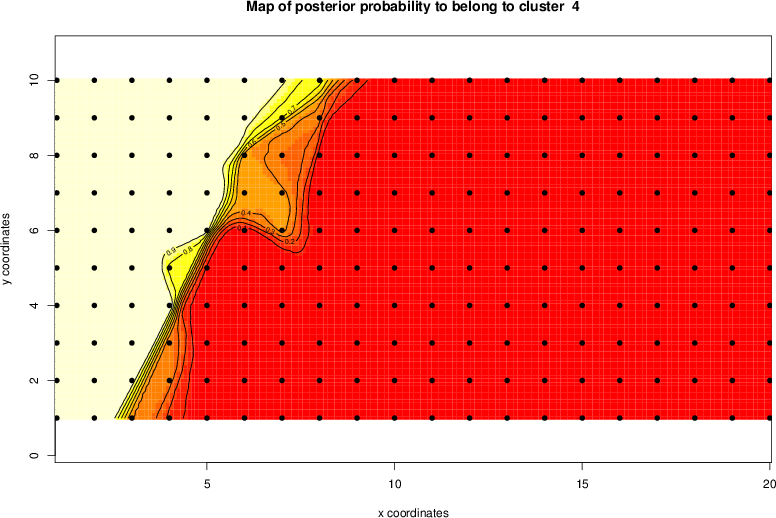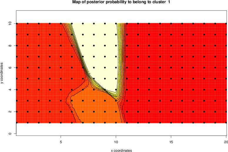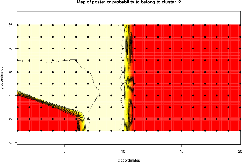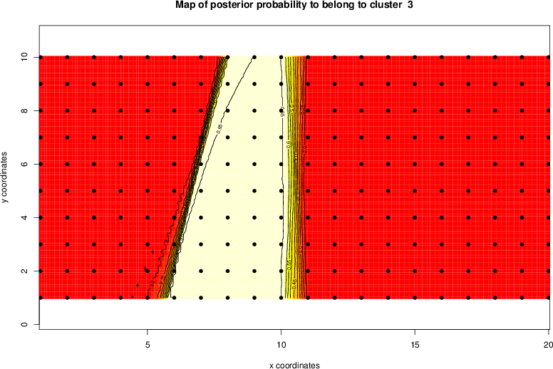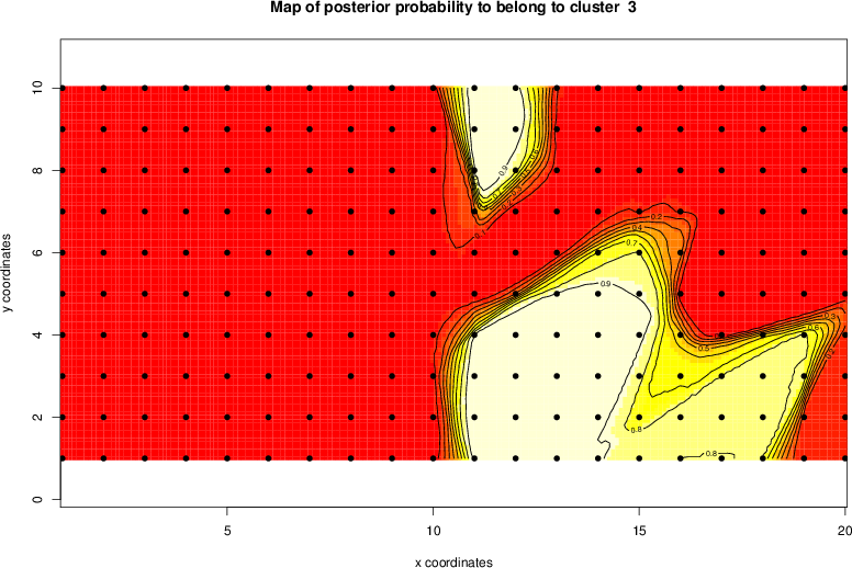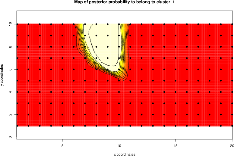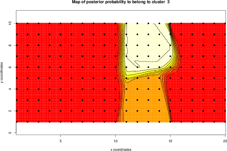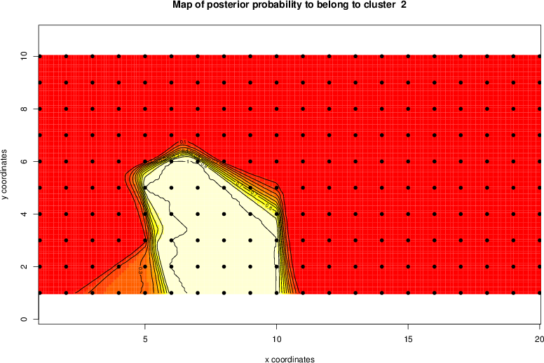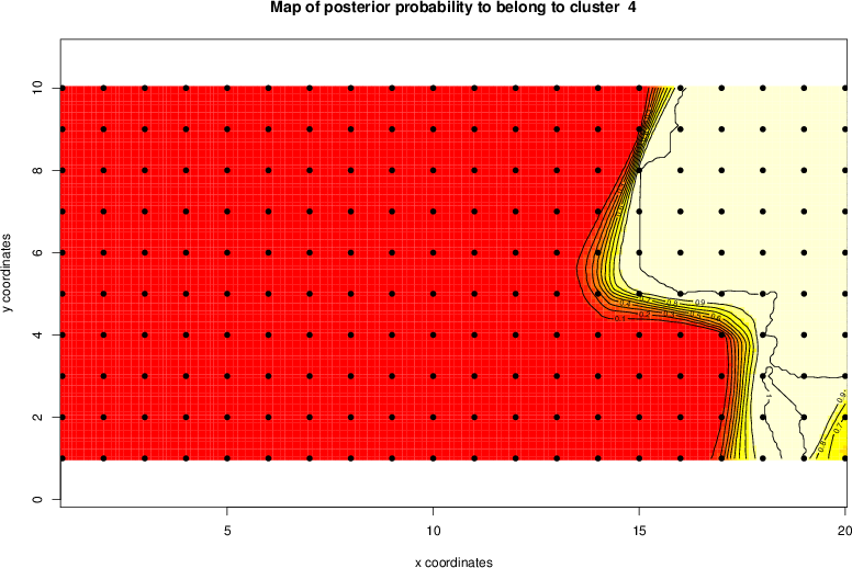 Simulated data | Geographical plots of weighted mean of all ellipse values (i.e., individual genetic distances ar of Rousset 2000) and significant barrier (cells with differentiation values higher than expected under a random distribution (no FDR applied) are materialized with thick black borders) | Idem, Benjamini-Yekutieli FDR applied | MAPI analysis (no FDR applied) with subsampled (75/200) dataset | MAPI analysis (Benjamini-Yekutieli FDR applied) with subsampled (75/200) dataset | Best probability memberships | Probability memberships for cluster 1 | Probability memberships for cluster 2 | Probability memberships for cluster 3 | Probability memberships for cluster 4 | Probability memberships for cluster 5 | Best probability memberships | Probability memberships for cluster 1 | Probability memberships for cluster 2 | Probability memberships for cluster 3 | Probability memberships for cluster 4 | Probability memberships for cluster 5 | Scatter plot showing the first two components of the DAPC (when K*>2) or density plot showing the first principal component of the DAPC (when K*=2) | Probability memberships for cluster 1 | Probability memberships for cluster 2 | Probability memberships for cluster 3 | Probability memberships for cluster 4 | Probability memberships for cluster 5 | Scatter plot showing the first two components of the DAPC (when K*>2) or density plot showing the first principal component of the DAPC (when K*=2) | Probability memberships for cluster 1 | Probability memberships for cluster 2 | Probability memberships for cluster 3 | Probability memberships for cluster 4 | Probability memberships for cluster 5 |