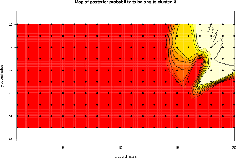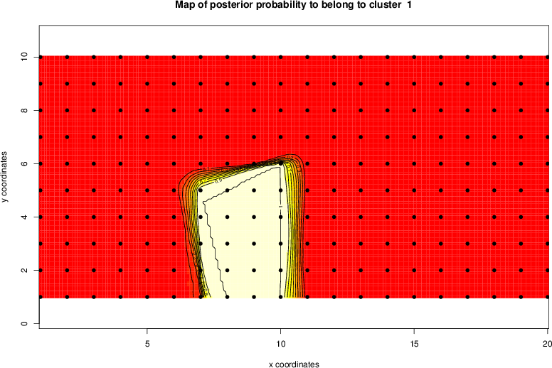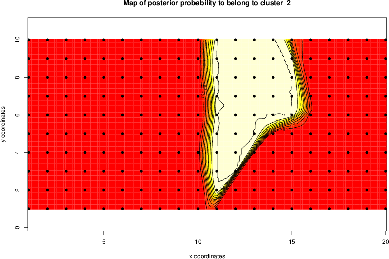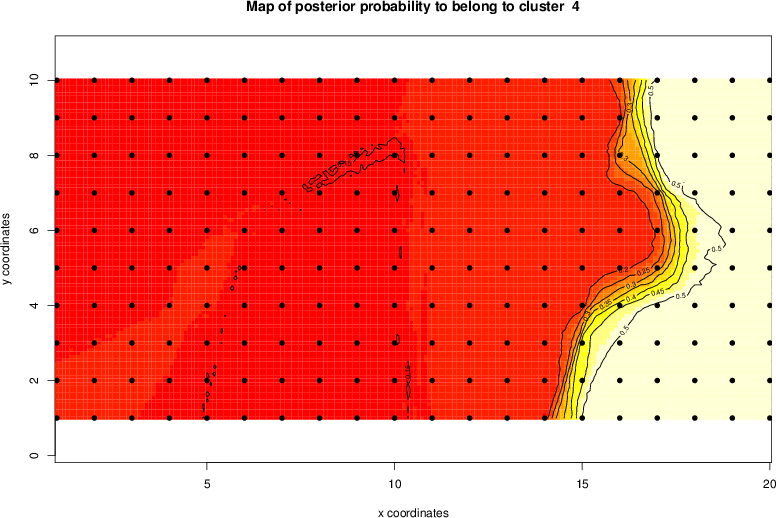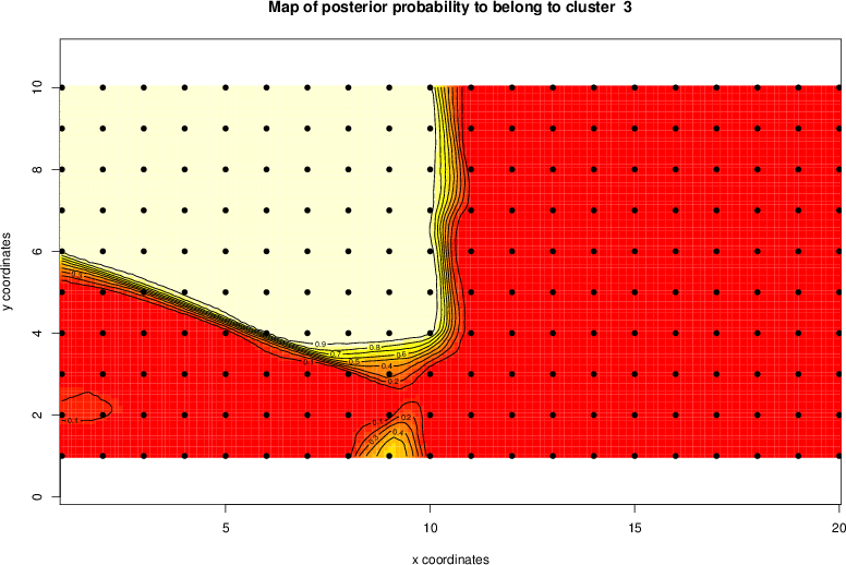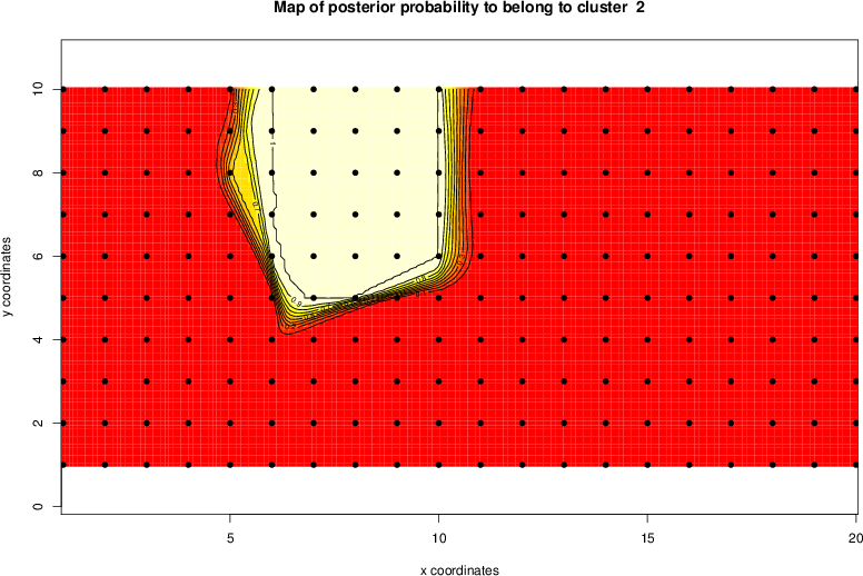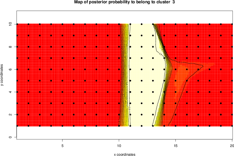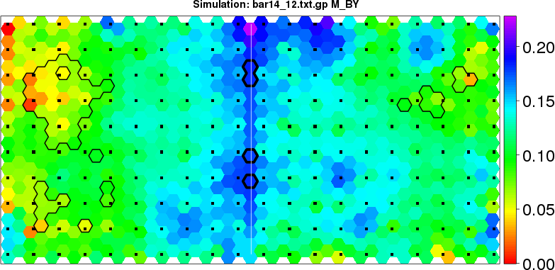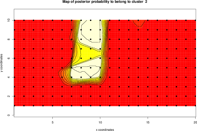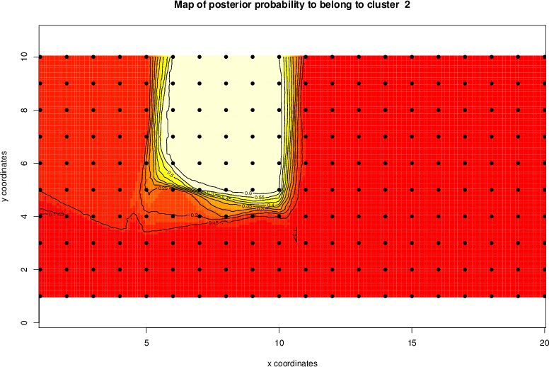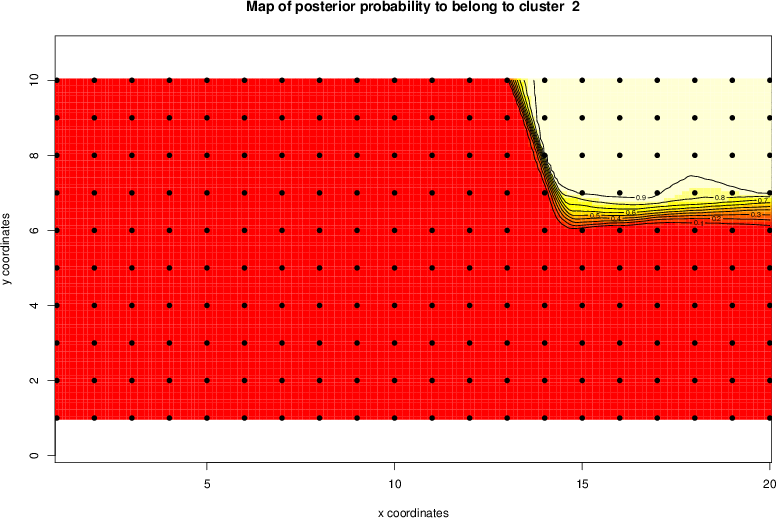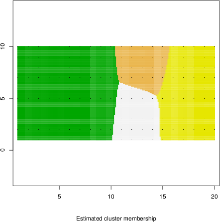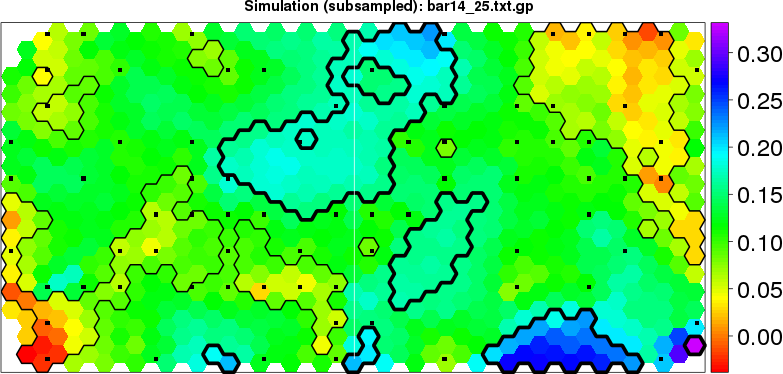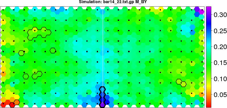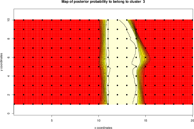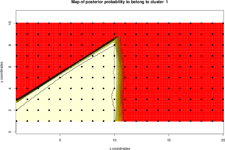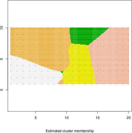 Simulated data | Geographical plots of weighted mean of all ellipse values (i.e., individual genetic distances ar of Rousset 2000) and significant barrier (cells with differentiation values higher than expected under a random distribution (no FDR applied) are materialized with thick black borders) | Idem, Benjamini-Yekutieli FDR applied | MAPI analysis (no FDR applied) with subsampled (75/200) dataset | MAPI analysis (Benjamini-Yekutieli FDR applied) with subsampled (75/200) dataset | Best probability memberships | Probability memberships for cluster 1 | Probability memberships for cluster 2 | Probability memberships for cluster 3 | Probability memberships for cluster 4 | Probability memberships for cluster 5 | Best probability memberships | Probability memberships for cluster 1 | Probability memberships for cluster 2 | Probability memberships for cluster 3 | Probability memberships for cluster 4 | Probability memberships for cluster 5 | Scatter plot showing the first two components of the DAPC (when K*>2) or density plot showing the first principal component of the DAPC (when K*=2) | Probability memberships for cluster 1 | Probability memberships for cluster 2 | Probability memberships for cluster 3 | Probability memberships for cluster 4 | Probability memberships for cluster 5 | Scatter plot showing the first two components of the DAPC (when K*>2) or density plot showing the first principal component of the DAPC (when K*=2) | Probability memberships for cluster 1 | Probability memberships for cluster 2 | Probability memberships for cluster 3 | Probability memberships for cluster 4 | Probability memberships for cluster 5 |