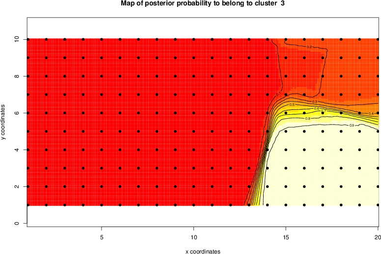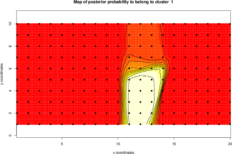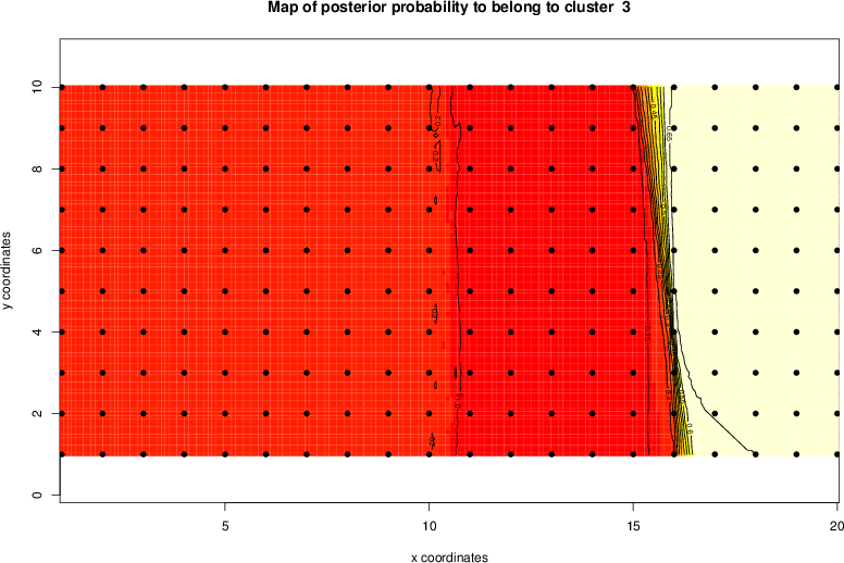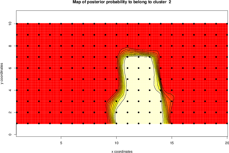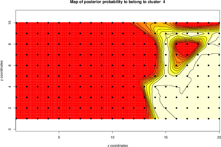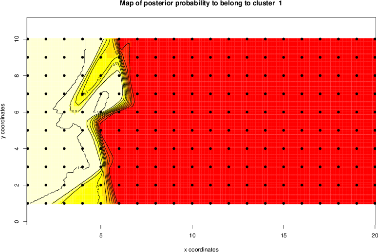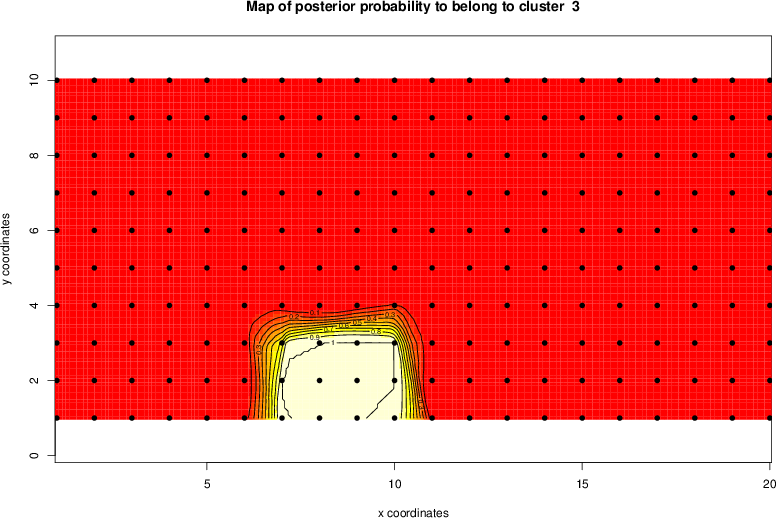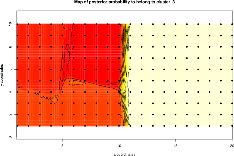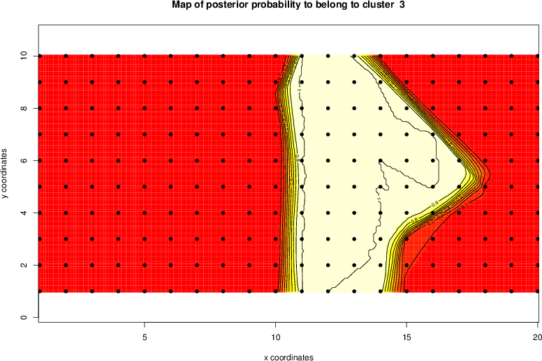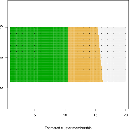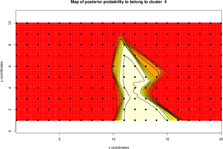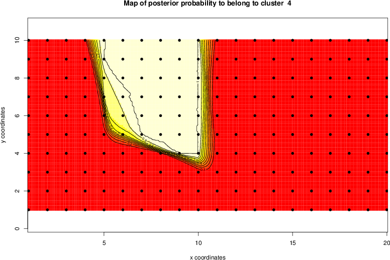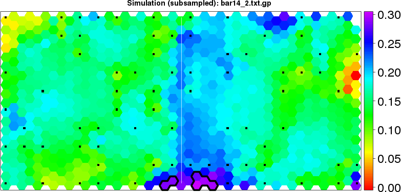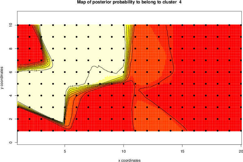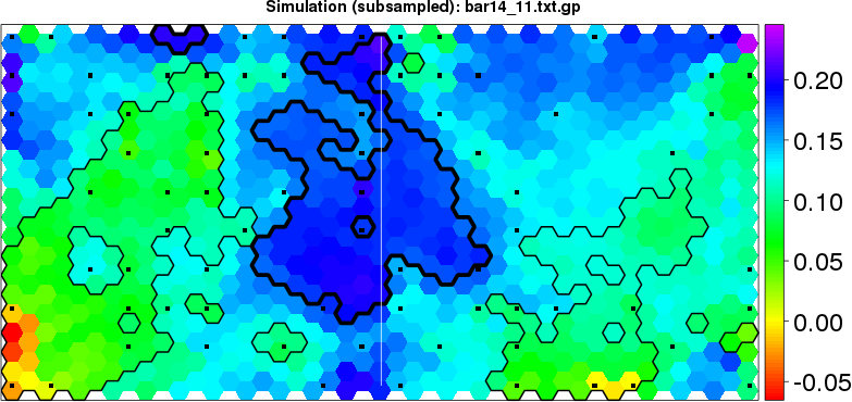 Simulated data | Geographical plots of weighted mean of all ellipse values (i.e., individual genetic distances ar of Rousset 2000) and significant barrier (cells with differentiation values higher than expected under a random distribution (no FDR applied) are materialized with thick black borders) | Idem, Benjamini-Yekutieli FDR applied | MAPI analysis (no FDR applied) with subsampled (75/200) dataset | MAPI analysis (Benjamini-Yekutieli FDR applied) with subsampled (75/200) dataset | Best probability memberships | Probability memberships for cluster 1 | Probability memberships for cluster 2 | Probability memberships for cluster 3 | Probability memberships for cluster 4 | Probability memberships for cluster 5 | Best probability memberships | Probability memberships for cluster 1 | Probability memberships for cluster 2 | Probability memberships for cluster 3 | Probability memberships for cluster 4 | Probability memberships for cluster 5 | Scatter plot showing the first two components of the DAPC (when K*>2) or density plot showing the first principal component of the DAPC (when K*=2) | Probability memberships for cluster 1 | Probability memberships for cluster 2 | Probability memberships for cluster 3 | Probability memberships for cluster 4 | Probability memberships for cluster 5 | Scatter plot showing the first two components of the DAPC (when K*>2) or density plot showing the first principal component of the DAPC (when K*=2) | Probability memberships for cluster 1 | Probability memberships for cluster 2 | Probability memberships for cluster 3 | Probability memberships for cluster 4 | Probability memberships for cluster 5 |