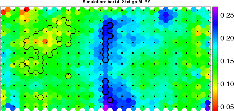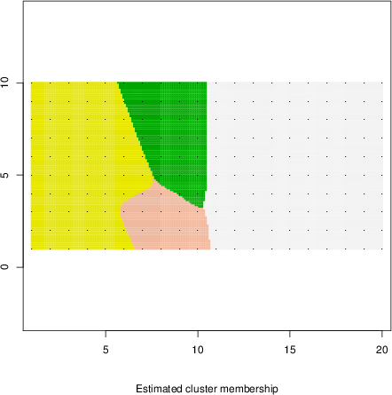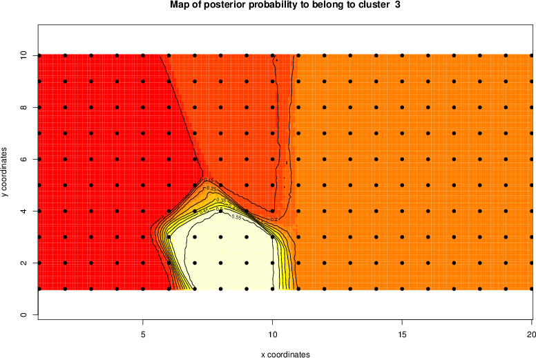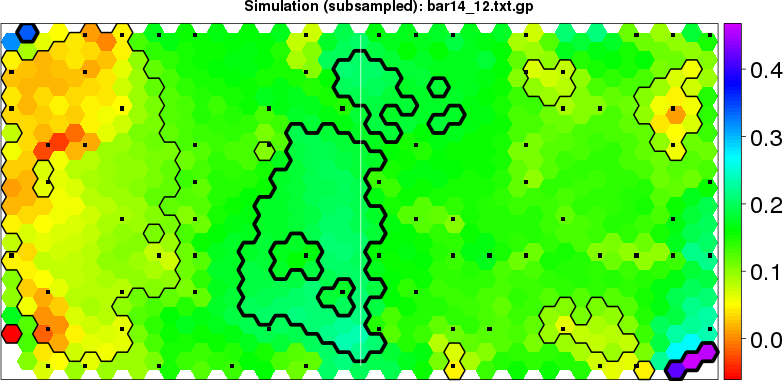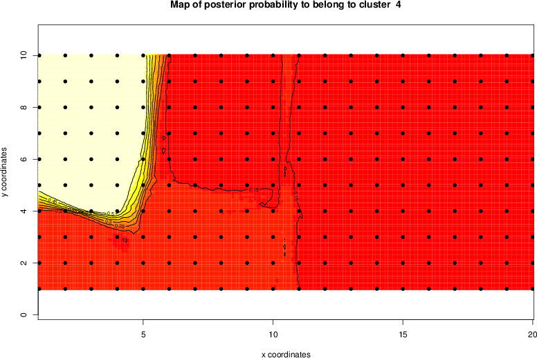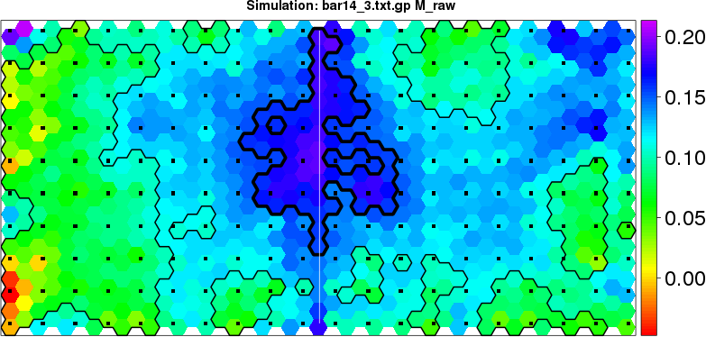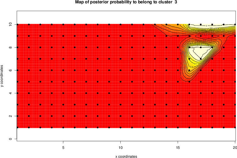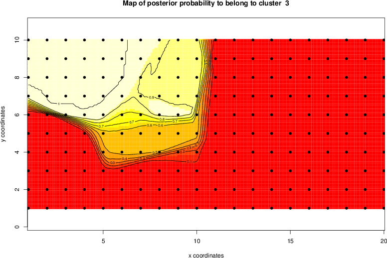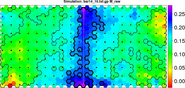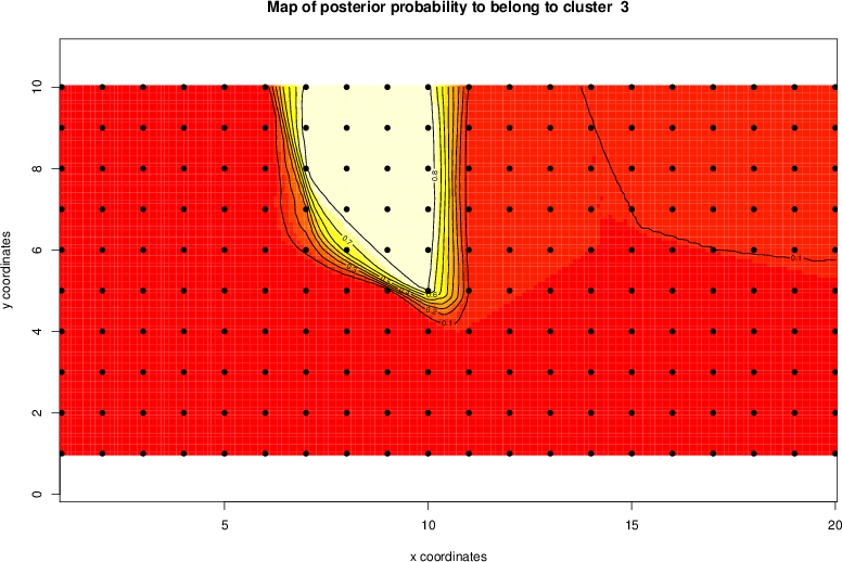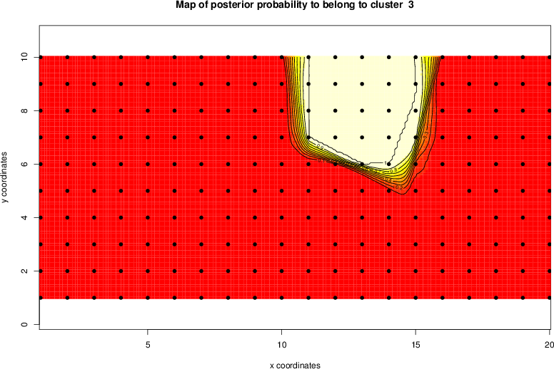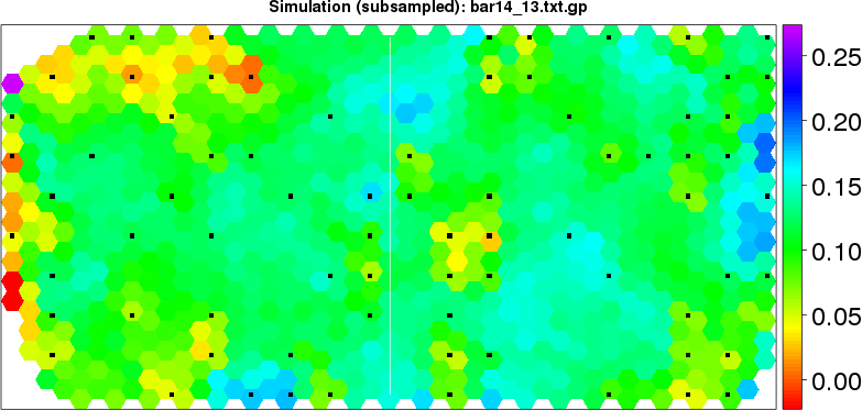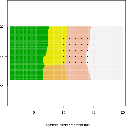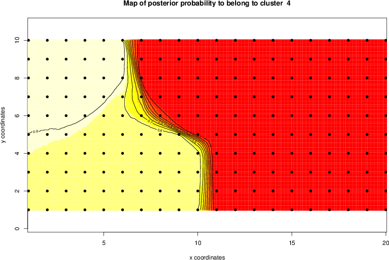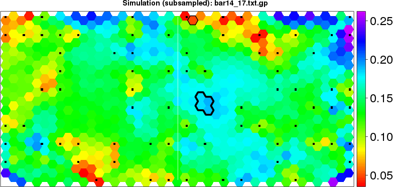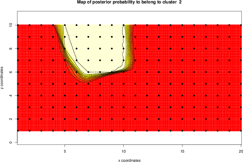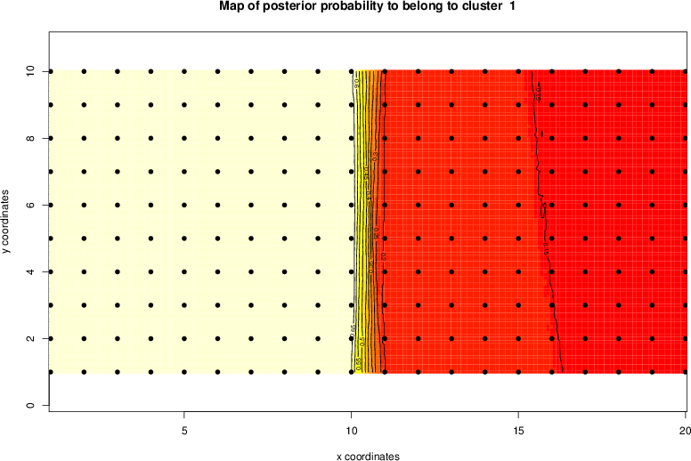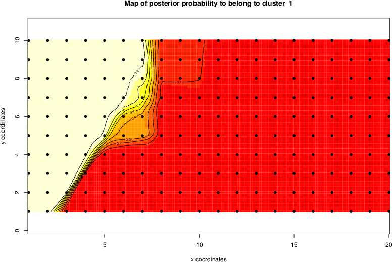 Simulated data | Geographical plots of weighted mean of all ellipse values (i.e., individual genetic distances ar of Rousset 2000) and significant barrier (cells with differentiation values higher than expected under a random distribution (no FDR applied) are materialized with thick black borders) | Idem, Benjamini-Yekutieli FDR applied | MAPI analysis (no FDR applied) with subsampled (75/200) dataset | MAPI analysis (Benjamini-Yekutieli FDR applied) with subsampled (75/200) dataset | Best probability memberships | Probability memberships for cluster 1 | Probability memberships for cluster 2 | Probability memberships for cluster 3 | Probability memberships for cluster 4 | Probability memberships for cluster 5 | Best probability memberships | Probability memberships for cluster 1 | Probability memberships for cluster 2 | Probability memberships for cluster 3 | Probability memberships for cluster 4 | Probability memberships for cluster 5 | Scatter plot showing the first two components of the DAPC (when K*>2) or density plot showing the first principal component of the DAPC (when K*=2) | Probability memberships for cluster 1 | Probability memberships for cluster 2 | Probability memberships for cluster 3 | Probability memberships for cluster 4 | Probability memberships for cluster 5 | Scatter plot showing the first two components of the DAPC (when K*>2) or density plot showing the first principal component of the DAPC (when K*=2) | Probability memberships for cluster 1 | Probability memberships for cluster 2 | Probability memberships for cluster 3 | Probability memberships for cluster 4 | Probability memberships for cluster 5 |