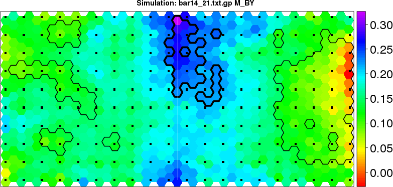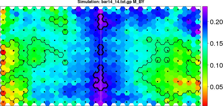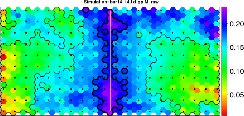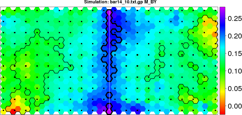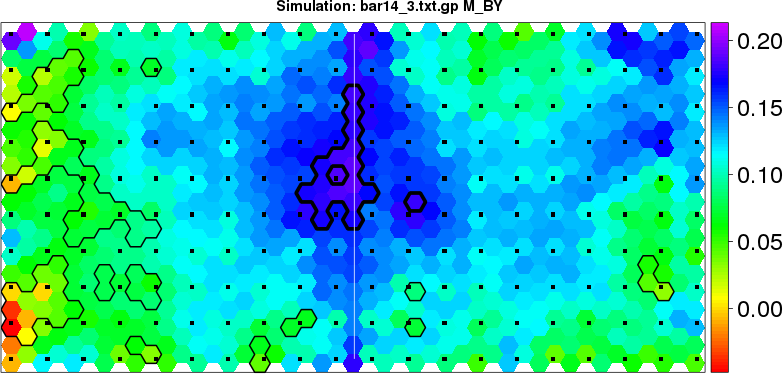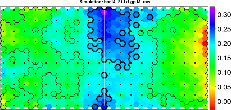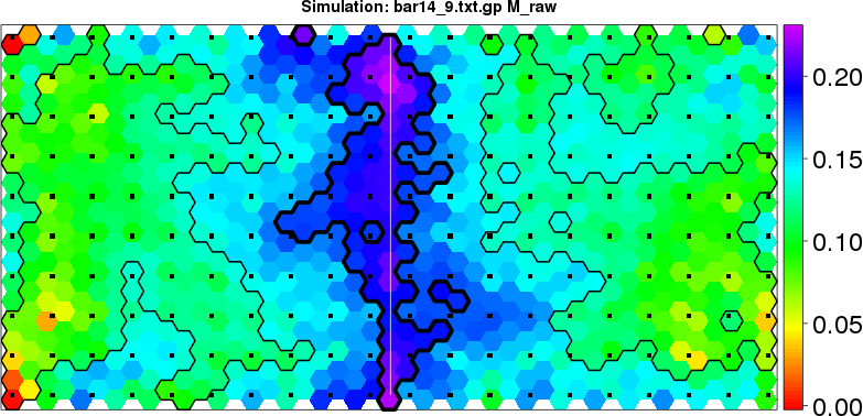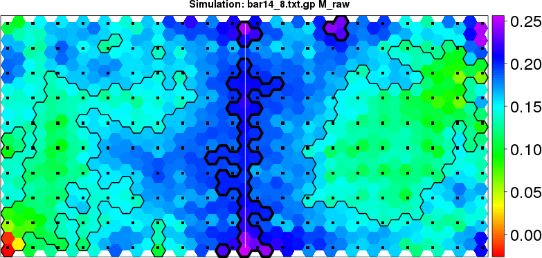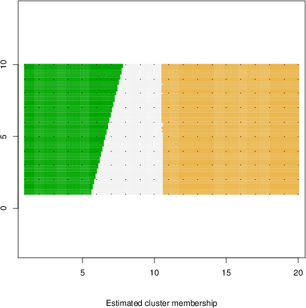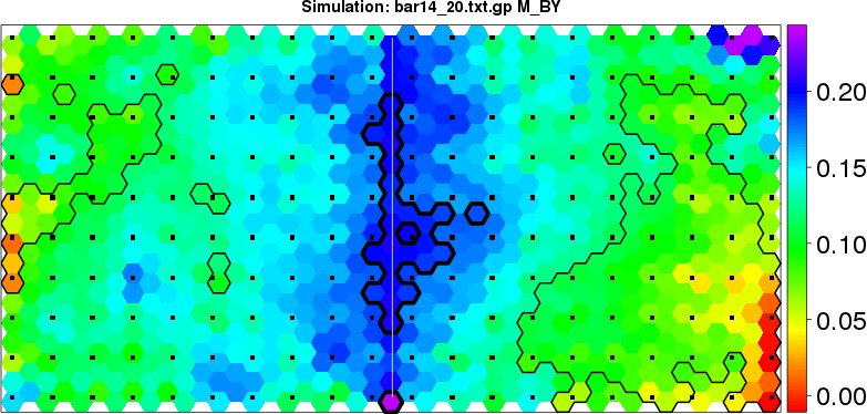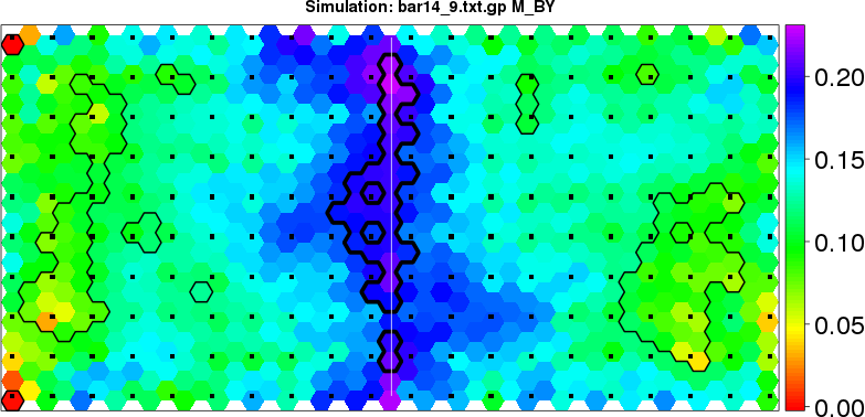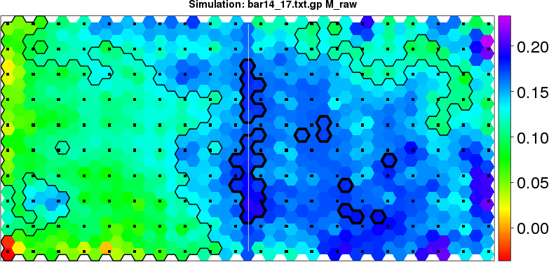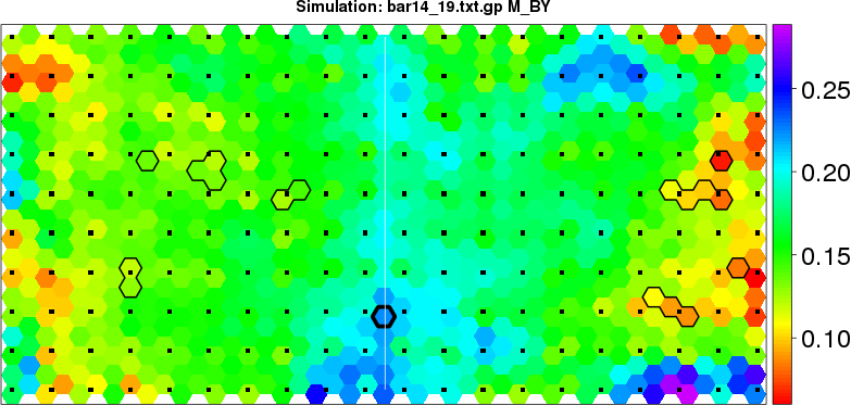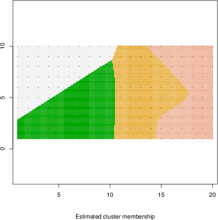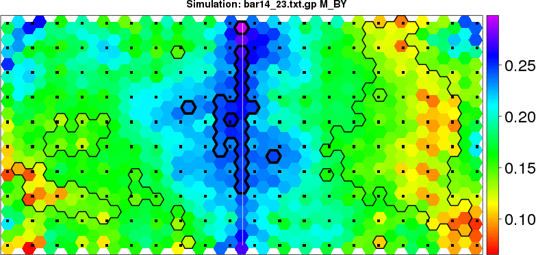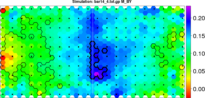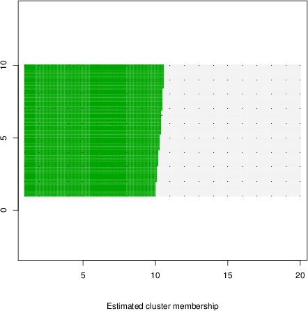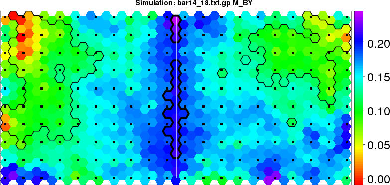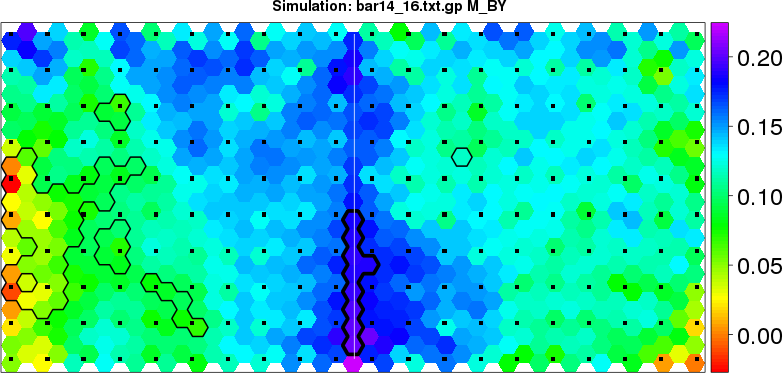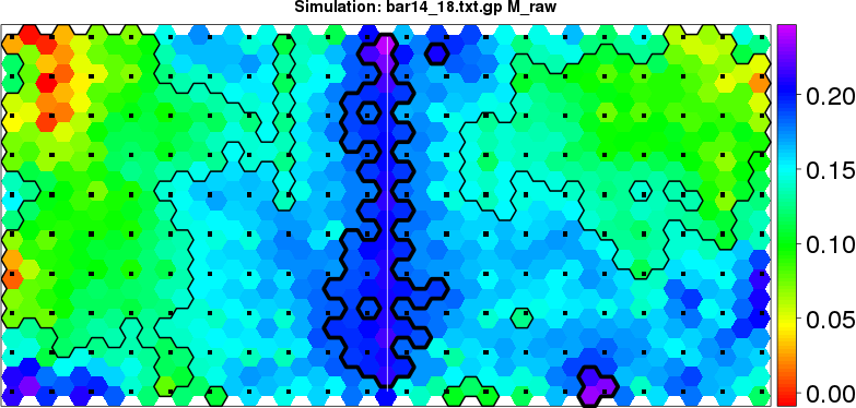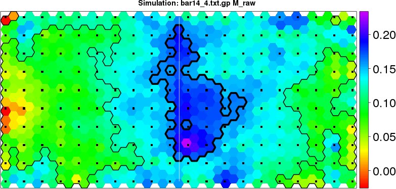 Simulated data | Geographical plots of weighted mean of all ellipse values (i.e., individual genetic distances ar of Rousset 2000) and significant barrier (cells with differentiation values higher than expected under a random distribution (no FDR applied) are materialized with thick black borders) | Idem, Benjamini-Yekutieli FDR applied | MAPI analysis (no FDR applied) with subsampled (75/200) dataset | MAPI analysis (Benjamini-Yekutieli FDR applied) with subsampled (75/200) dataset | Best probability memberships | Probability memberships for cluster 1 | Probability memberships for cluster 2 | Probability memberships for cluster 3 | Probability memberships for cluster 4 | Probability memberships for cluster 5 | Best probability memberships | Probability memberships for cluster 1 | Probability memberships for cluster 2 | Probability memberships for cluster 3 | Probability memberships for cluster 4 | Probability memberships for cluster 5 | Scatter plot showing the first two components of the DAPC (when K*>2) or density plot showing the first principal component of the DAPC (when K*=2) | Probability memberships for cluster 1 | Probability memberships for cluster 2 | Probability memberships for cluster 3 | Probability memberships for cluster 4 | Probability memberships for cluster 5 | Scatter plot showing the first two components of the DAPC (when K*>2) or density plot showing the first principal component of the DAPC (when K*=2) | Probability memberships for cluster 1 | Probability memberships for cluster 2 | Probability memberships for cluster 3 | Probability memberships for cluster 4 | Probability memberships for cluster 5 |