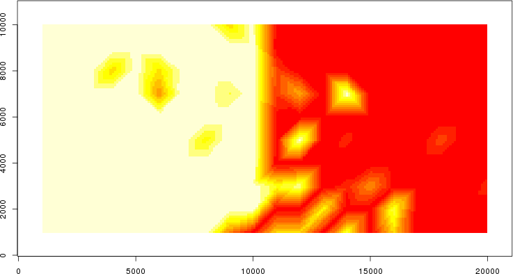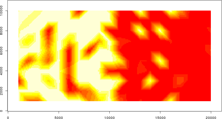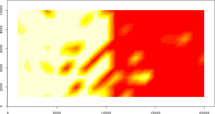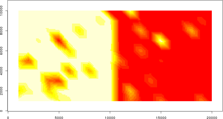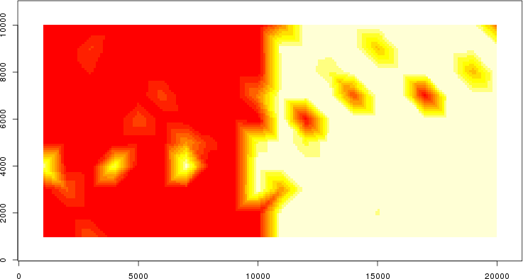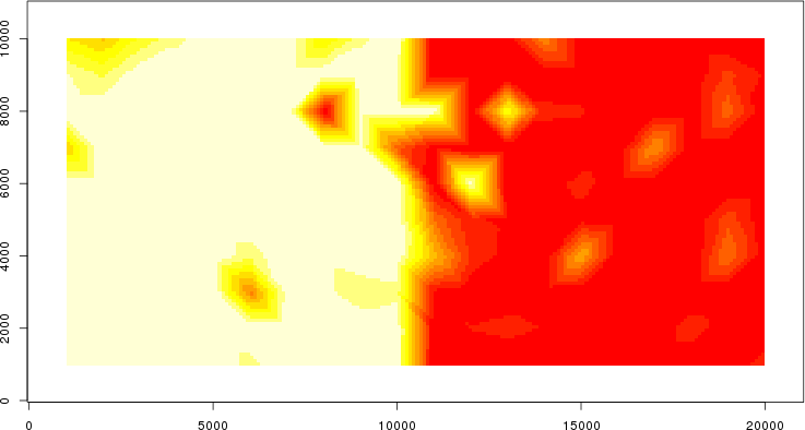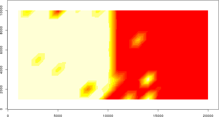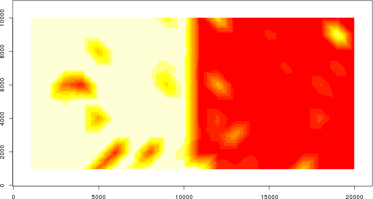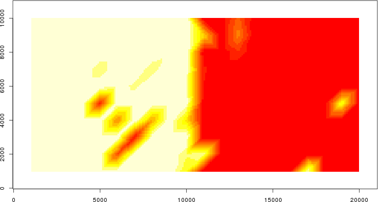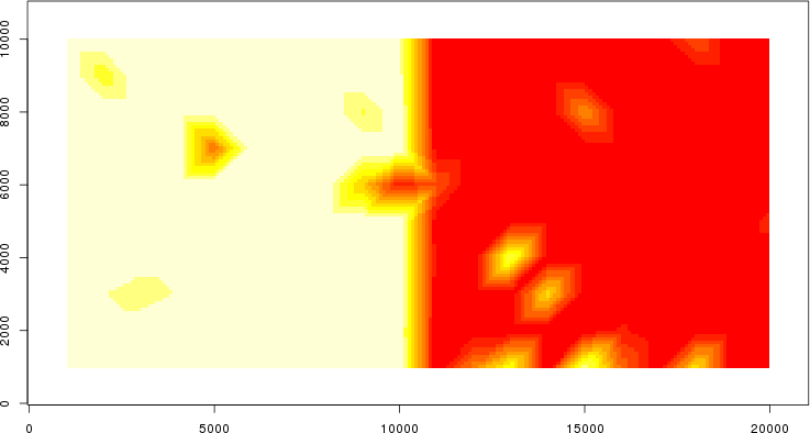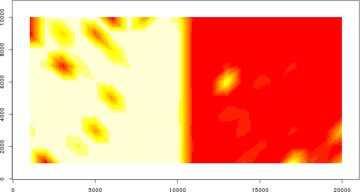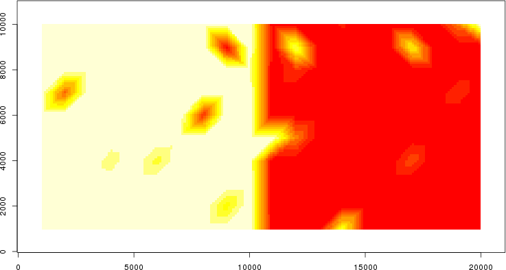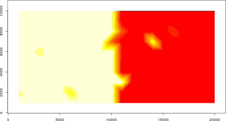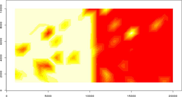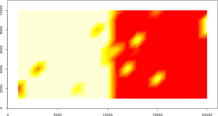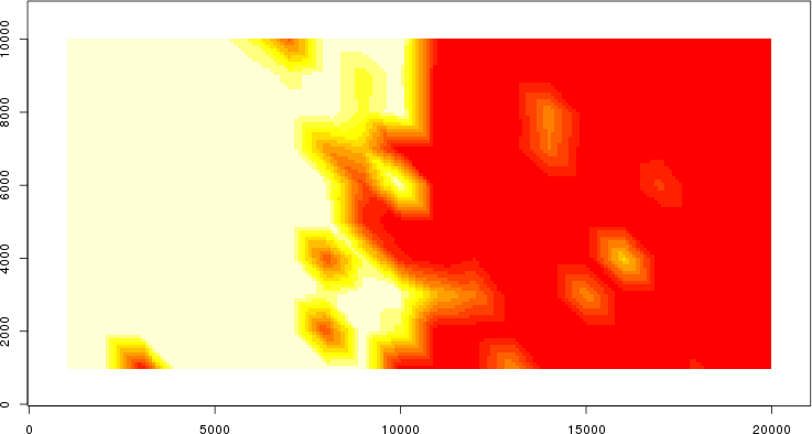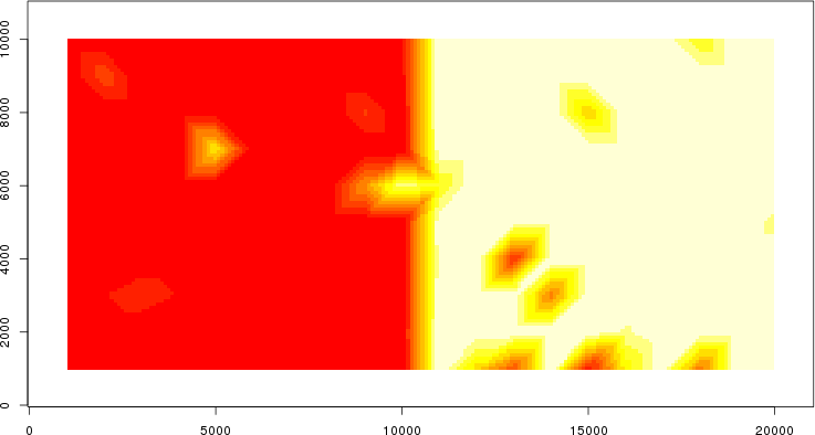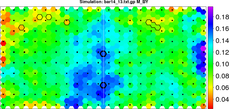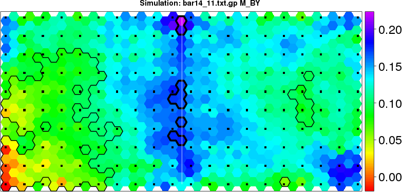 Simulated data | Geographical plots of weighted mean of all ellipse values (i.e., individual genetic distances ar of Rousset 2000) and significant barrier (cells with differentiation values higher than expected under a random distribution (no FDR applied) are materialized with thick black borders) | Idem, Benjamini-Yekutieli FDR applied | MAPI analysis (no FDR applied) with subsampled (75/200) dataset | MAPI analysis (Benjamini-Yekutieli FDR applied) with subsampled (75/200) dataset | Best probability memberships | Probability memberships for cluster 1 | Probability memberships for cluster 2 | Probability memberships for cluster 3 | Probability memberships for cluster 4 | Probability memberships for cluster 5 | Best probability memberships | Probability memberships for cluster 1 | Probability memberships for cluster 2 | Probability memberships for cluster 3 | Probability memberships for cluster 4 | Probability memberships for cluster 5 | Scatter plot showing the first two components of the DAPC (when K*>2) or density plot showing the first principal component of the DAPC (when K*=2) | Probability memberships for cluster 1 | Probability memberships for cluster 2 | Probability memberships for cluster 3 | Probability memberships for cluster 4 | Probability memberships for cluster 5 | Scatter plot showing the first two components of the DAPC (when K*>2) or density plot showing the first principal component of the DAPC (when K*=2) | Probability memberships for cluster 1 | Probability memberships for cluster 2 | Probability memberships for cluster 3 | Probability memberships for cluster 4 | Probability memberships for cluster 5 |