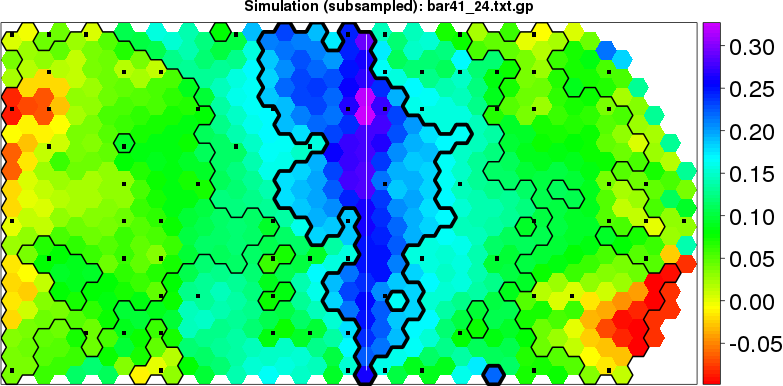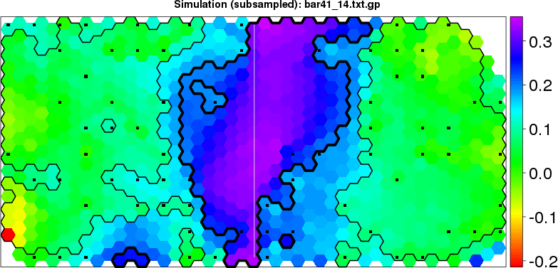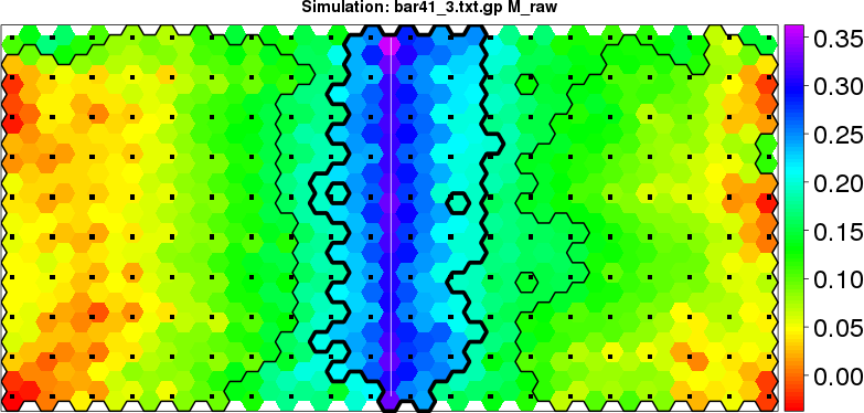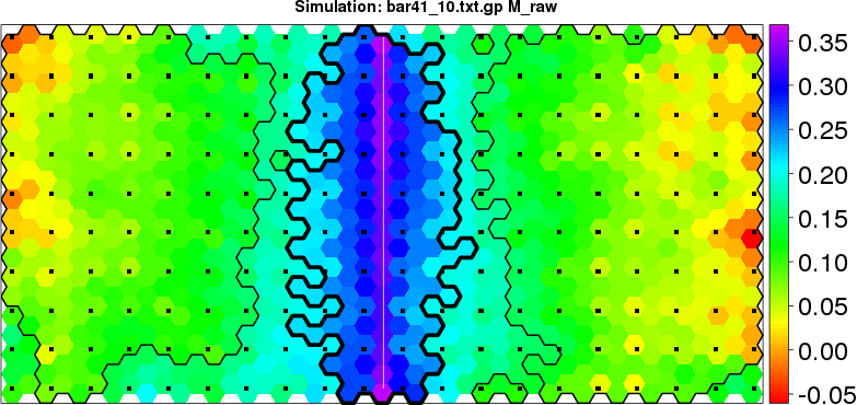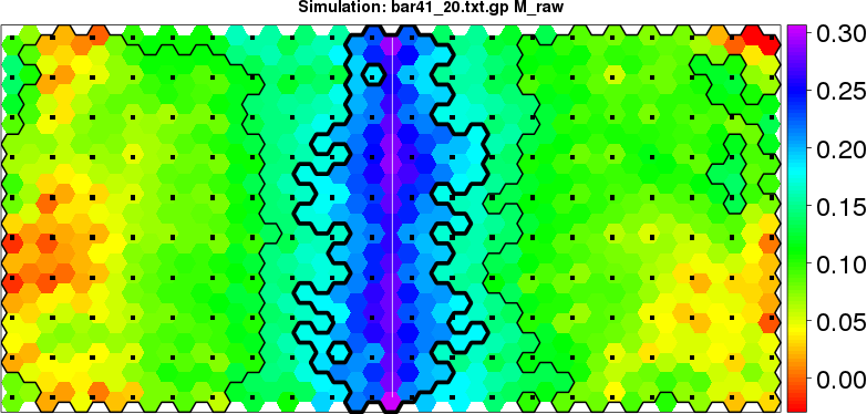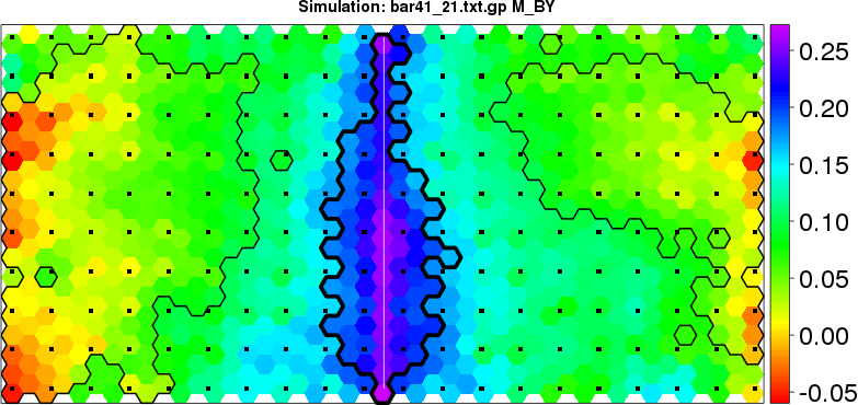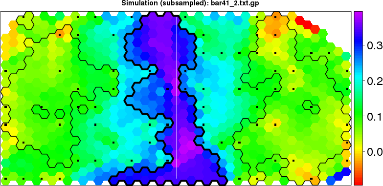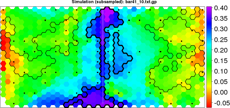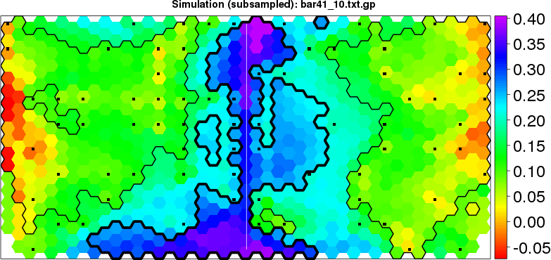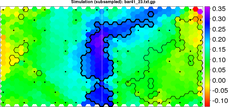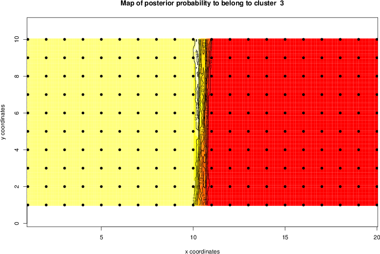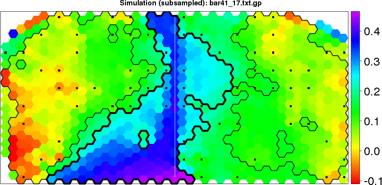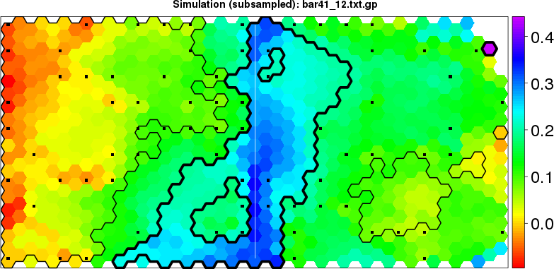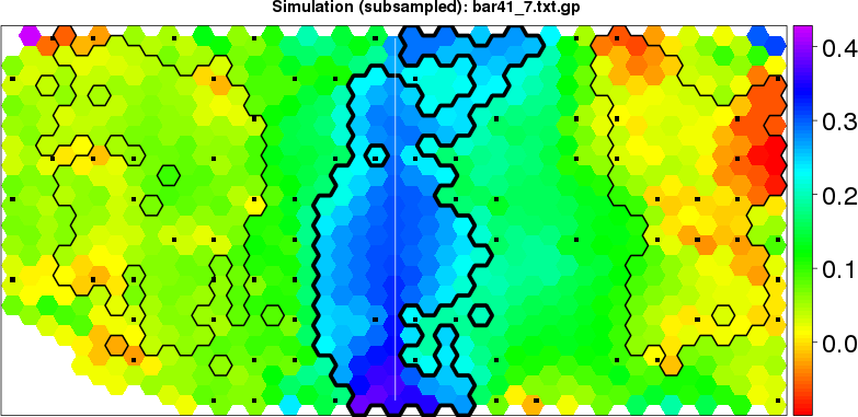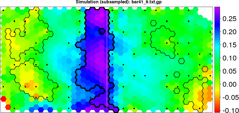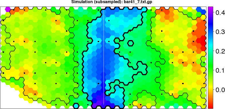 Simulated data | Geographical plots of weighted mean of all ellipse values (i.e., individual genetic distances ar of Rousset 2000) and significant barrier (cells with differentiation values higher than expected under a random distribution (no FDR applied) are materialized with thick black borders) | Idem, Benjamini-Yekutieli FDR applied | MAPI analysis (no FDR applied) with subsampled (75/200) dataset | MAPI analysis (Benjamini-Yekutieli FDR applied) with subsampled (75/200) dataset | Best probability memberships | Probability memberships for cluster 1 | Probability memberships for cluster 2 | Probability memberships for cluster 3 | Probability memberships for cluster 4 | Probability memberships for cluster 5 | Best probability memberships | Probability memberships for cluster 1 | Probability memberships for cluster 2 | Probability memberships for cluster 3 | Probability memberships for cluster 4 | Probability memberships for cluster 5 | Scatter plot showing the first two components of the DAPC (when K*>2) or density plot showing the first principal component of the DAPC (when K*=2) | Probability memberships for cluster 1 | Probability memberships for cluster 2 | Probability memberships for cluster 3 | Probability memberships for cluster 4 | Probability memberships for cluster 5 | Scatter plot showing the first two components of the DAPC (when K*>2) or density plot showing the first principal component of the DAPC (when K*=2) | Probability memberships for cluster 1 | Probability memberships for cluster 2 | Probability memberships for cluster 3 | Probability memberships for cluster 4 | Probability memberships for cluster 5 |