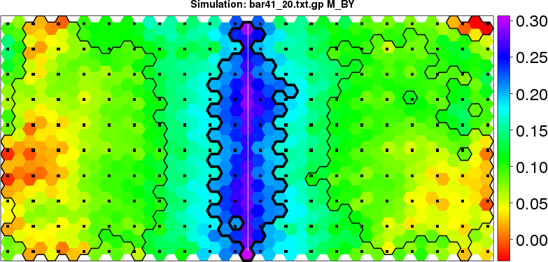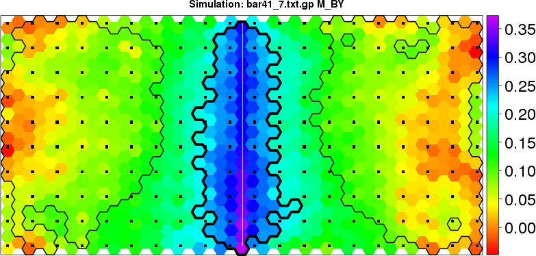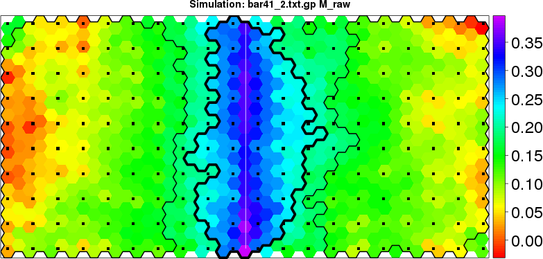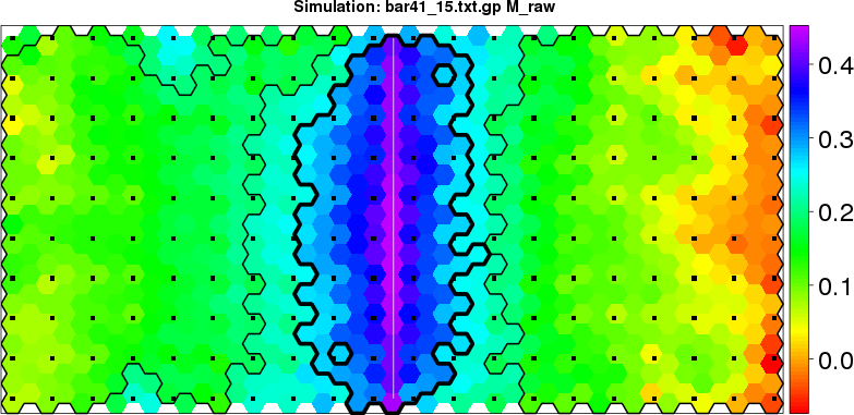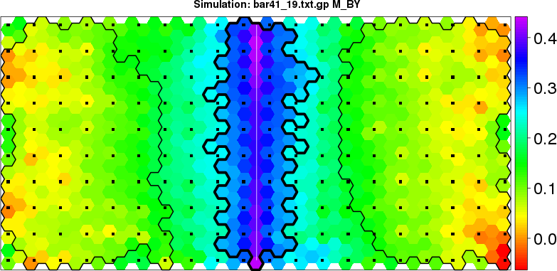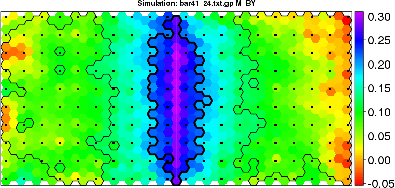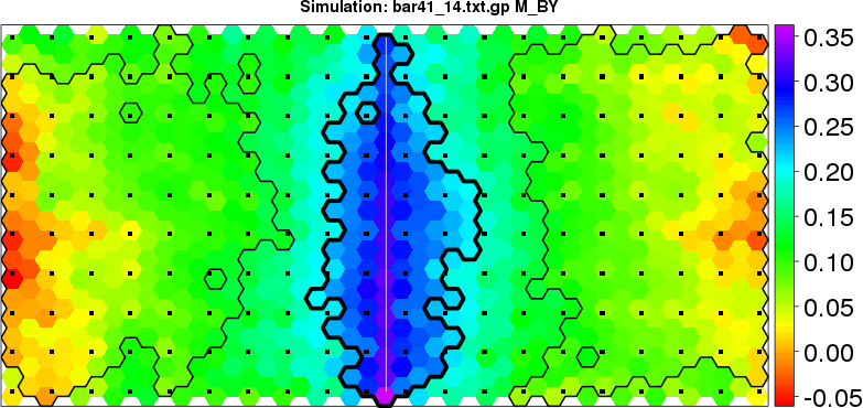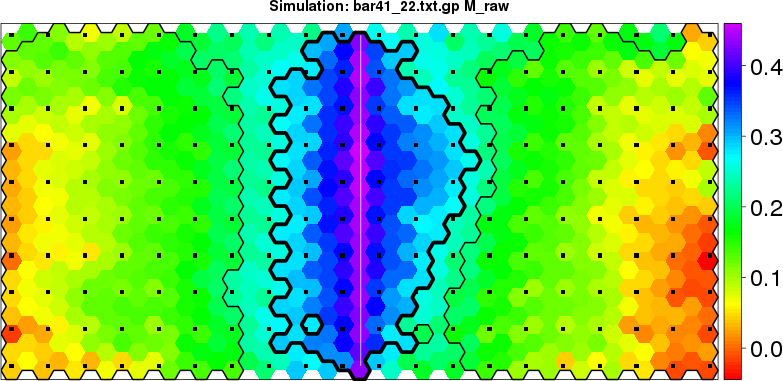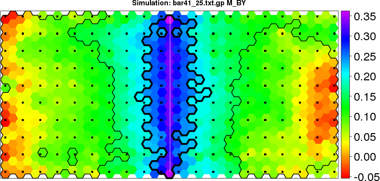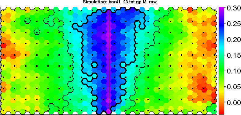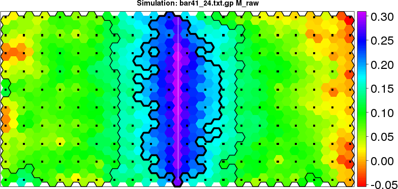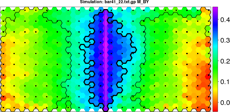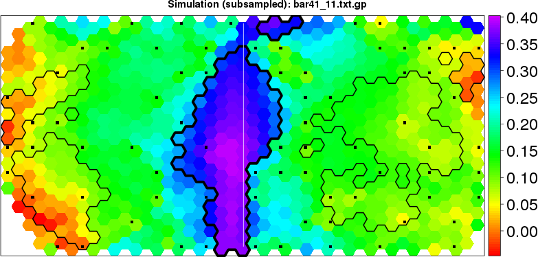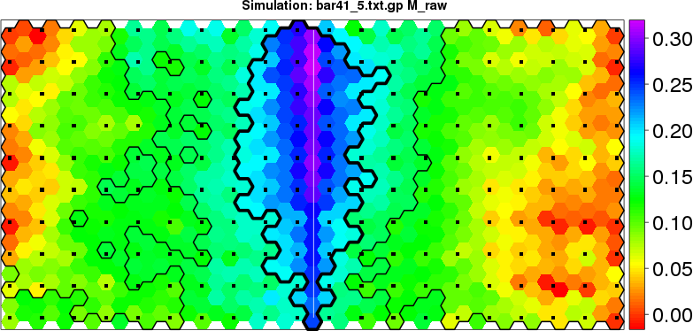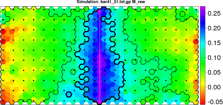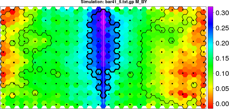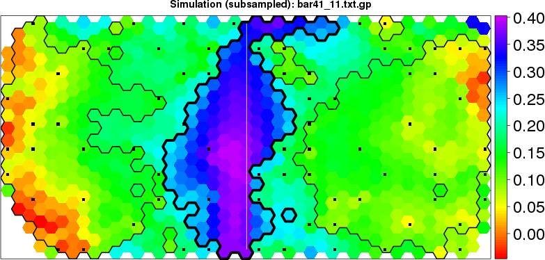 Simulated data | Geographical plots of weighted mean of all ellipse values (i.e., individual genetic distances ar of Rousset 2000) and significant barrier (cells with differentiation values higher than expected under a random distribution (no FDR applied) are materialized with thick black borders) | Idem, Benjamini-Yekutieli FDR applied | MAPI analysis (no FDR applied) with subsampled (75/200) dataset | MAPI analysis (Benjamini-Yekutieli FDR applied) with subsampled (75/200) dataset | Best probability memberships | Probability memberships for cluster 1 | Probability memberships for cluster 2 | Probability memberships for cluster 3 | Probability memberships for cluster 4 | Probability memberships for cluster 5 | Best probability memberships | Probability memberships for cluster 1 | Probability memberships for cluster 2 | Probability memberships for cluster 3 | Probability memberships for cluster 4 | Probability memberships for cluster 5 | Scatter plot showing the first two components of the DAPC (when K*>2) or density plot showing the first principal component of the DAPC (when K*=2) | Probability memberships for cluster 1 | Probability memberships for cluster 2 | Probability memberships for cluster 3 | Probability memberships for cluster 4 | Probability memberships for cluster 5 | Scatter plot showing the first two components of the DAPC (when K*>2) or density plot showing the first principal component of the DAPC (when K*=2) | Probability memberships for cluster 1 | Probability memberships for cluster 2 | Probability memberships for cluster 3 | Probability memberships for cluster 4 | Probability memberships for cluster 5 |