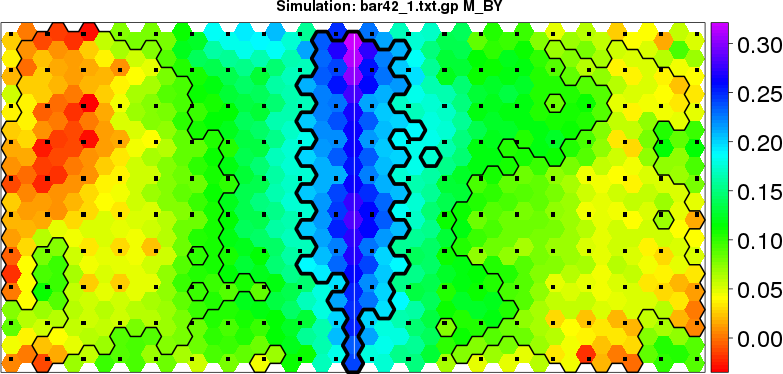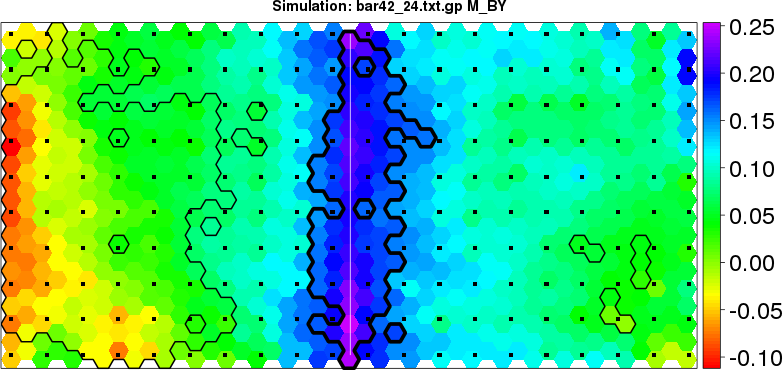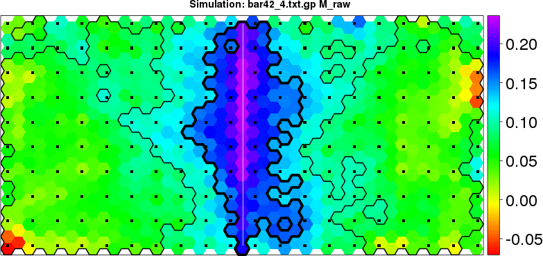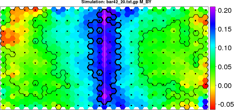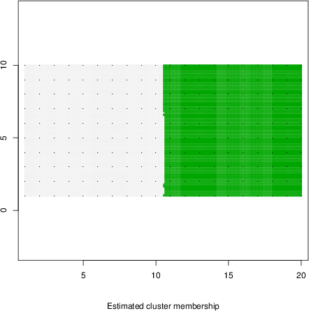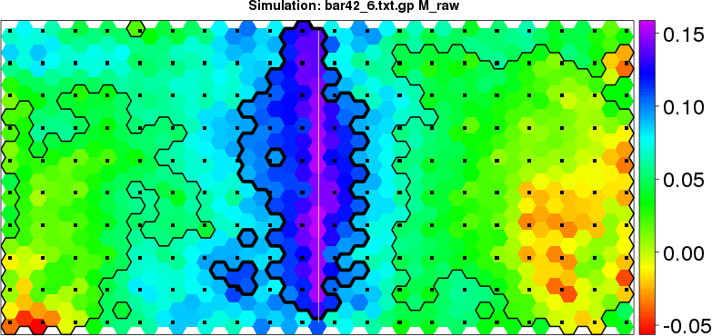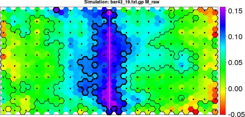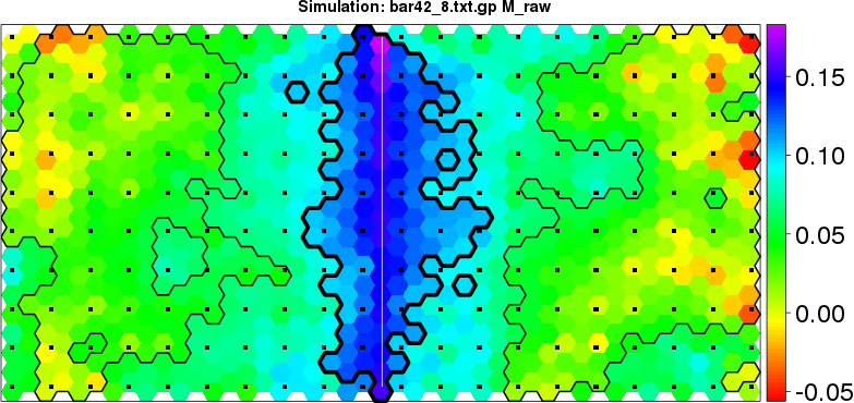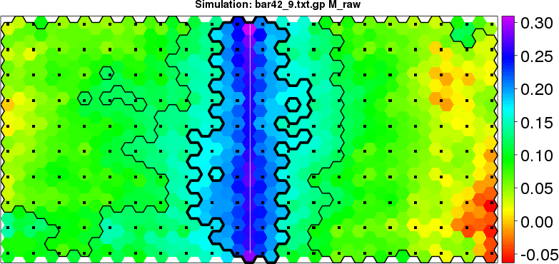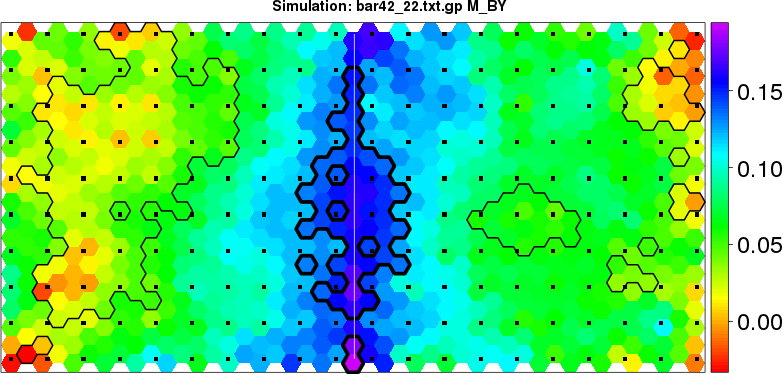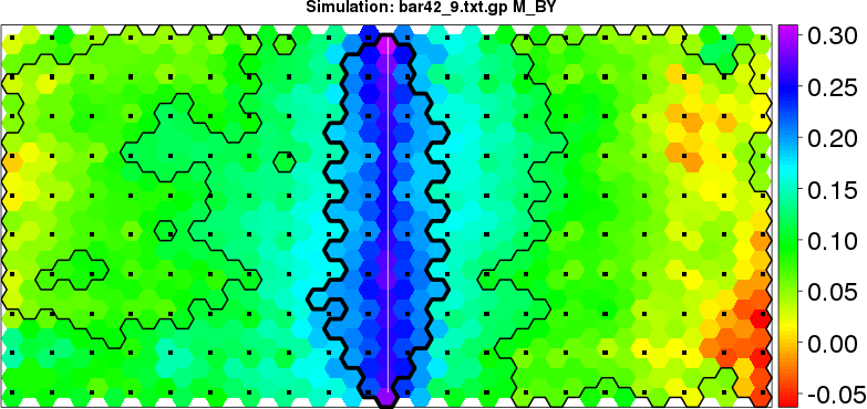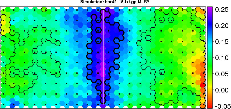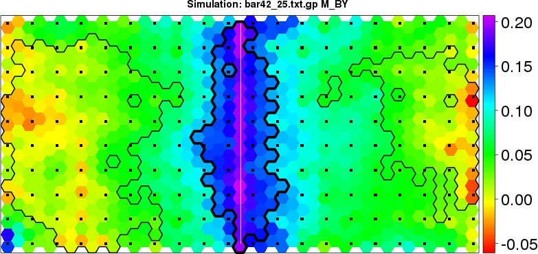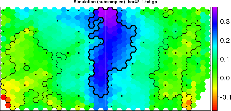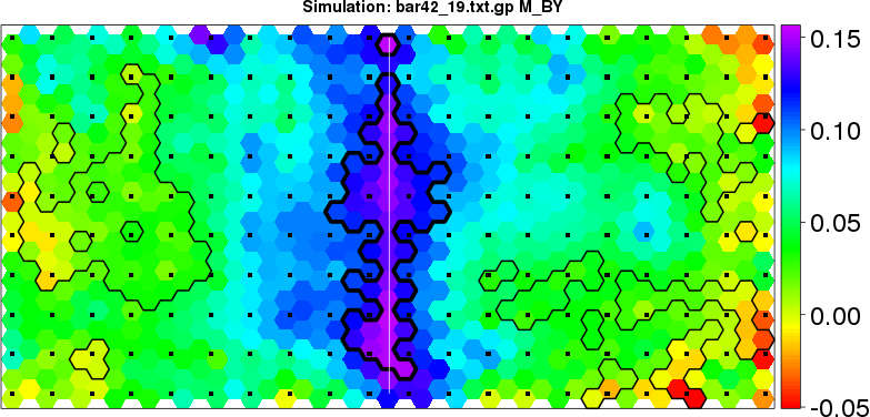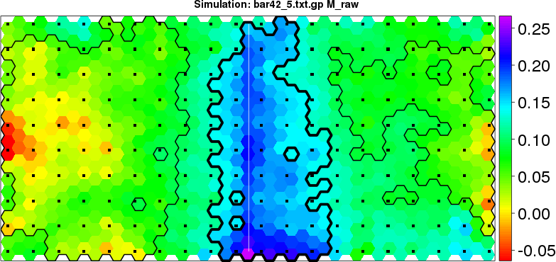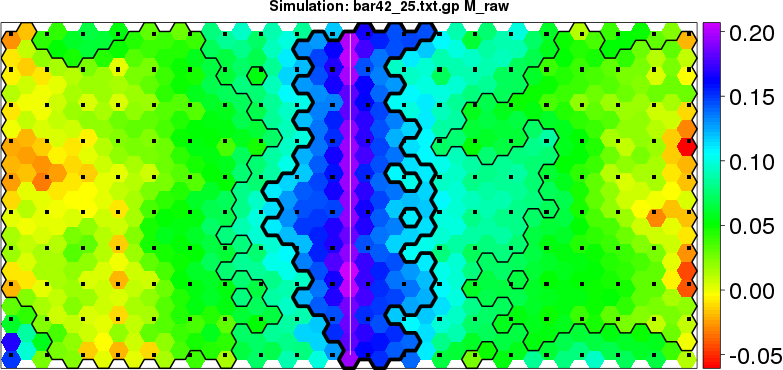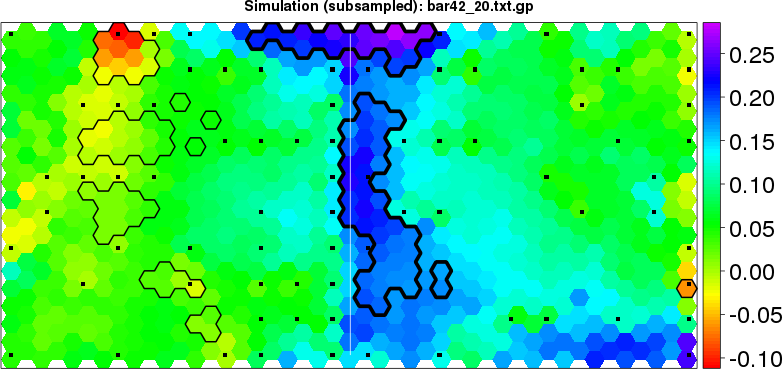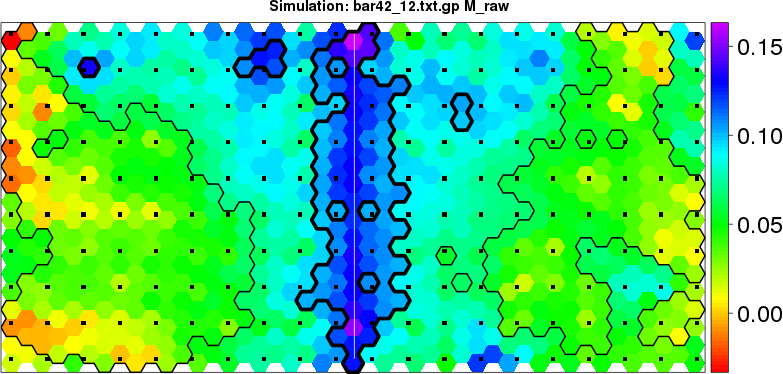 Simulated data | Geographical plots of weighted mean of all ellipse values (i.e., individual genetic distances ar of Rousset 2000) and significant barrier (cells with differentiation values higher than expected under a random distribution (no FDR applied) are materialized with thick black borders) | Idem, Benjamini-Yekutieli FDR applied | MAPI analysis (no FDR applied) with subsampled (75/200) dataset | MAPI analysis (Benjamini-Yekutieli FDR applied) with subsampled (75/200) dataset | Best probability memberships | Probability memberships for cluster 1 | Probability memberships for cluster 2 | Probability memberships for cluster 3 | Probability memberships for cluster 4 | Probability memberships for cluster 5 | Best probability memberships | Probability memberships for cluster 1 | Probability memberships for cluster 2 | Probability memberships for cluster 3 | Probability memberships for cluster 4 | Probability memberships for cluster 5 | Scatter plot showing the first two components of the DAPC (when K*>2) or density plot showing the first principal component of the DAPC (when K*=2) | Probability memberships for cluster 1 | Probability memberships for cluster 2 | Probability memberships for cluster 3 | Probability memberships for cluster 4 | Probability memberships for cluster 5 | Scatter plot showing the first two components of the DAPC (when K*>2) or density plot showing the first principal component of the DAPC (when K*=2) | Probability memberships for cluster 1 | Probability memberships for cluster 2 | Probability memberships for cluster 3 | Probability memberships for cluster 4 | Probability memberships for cluster 5 |