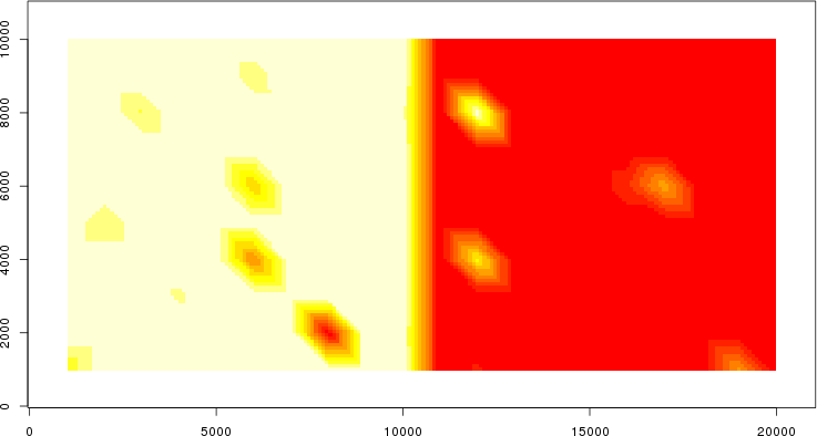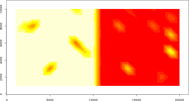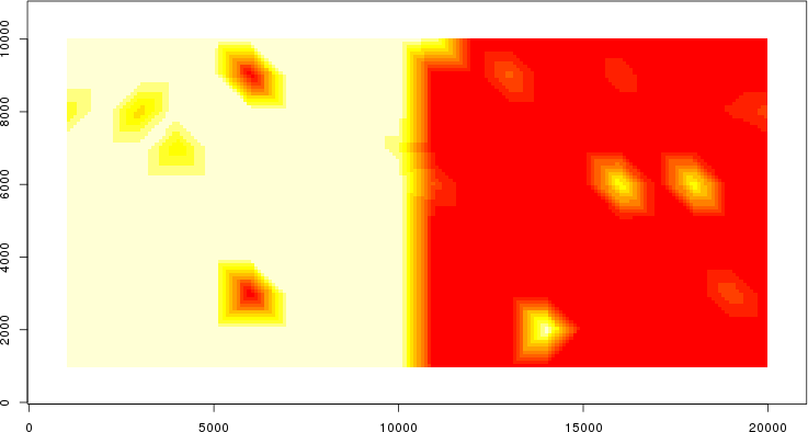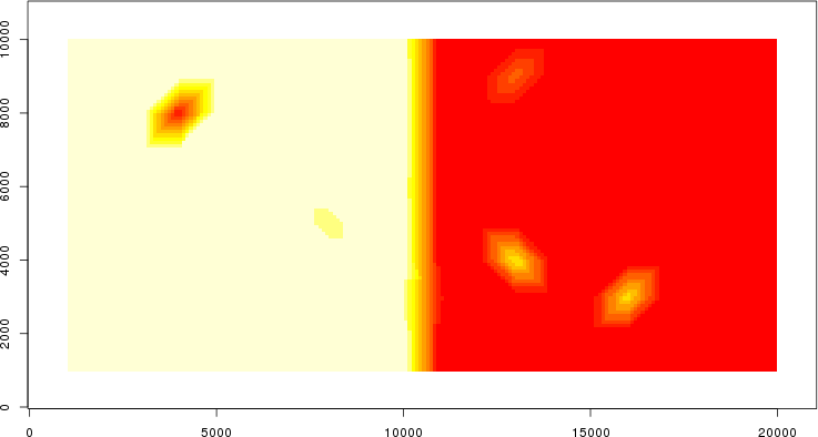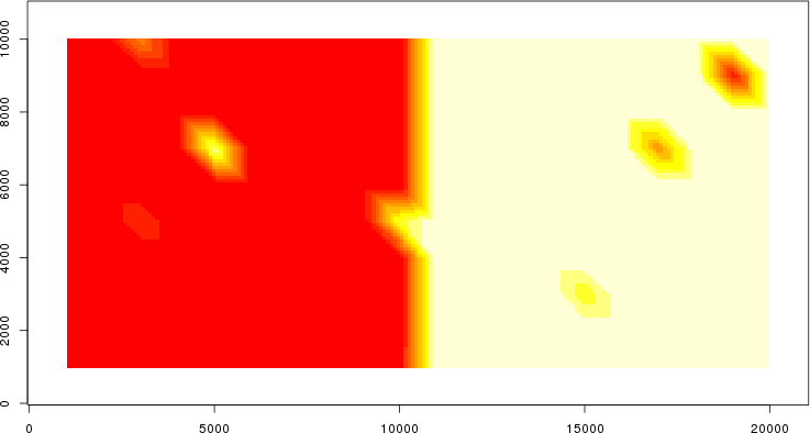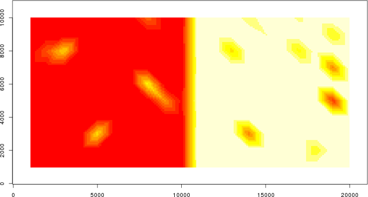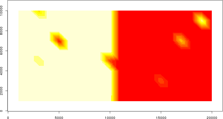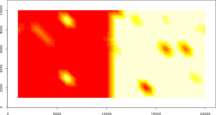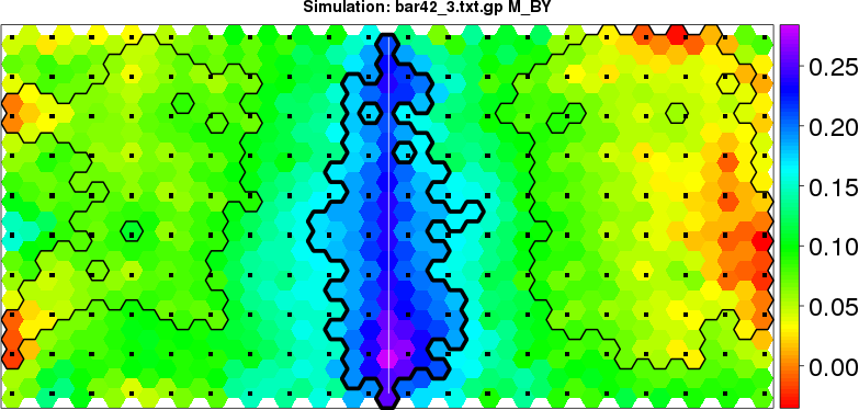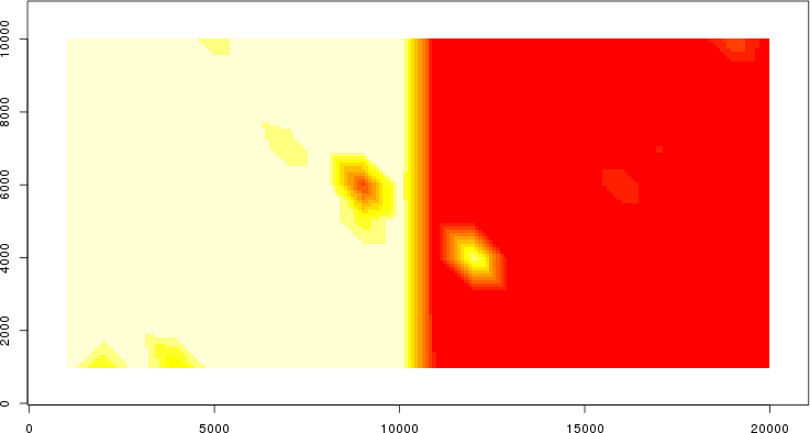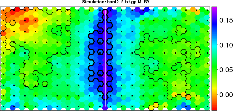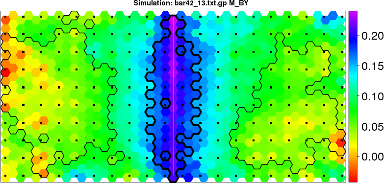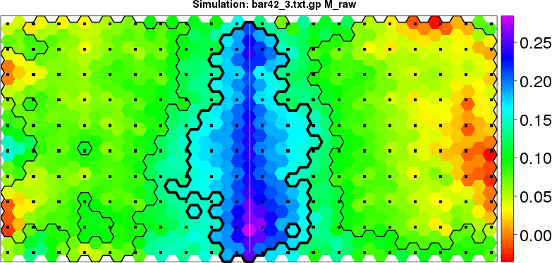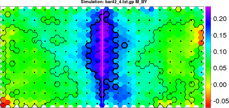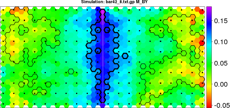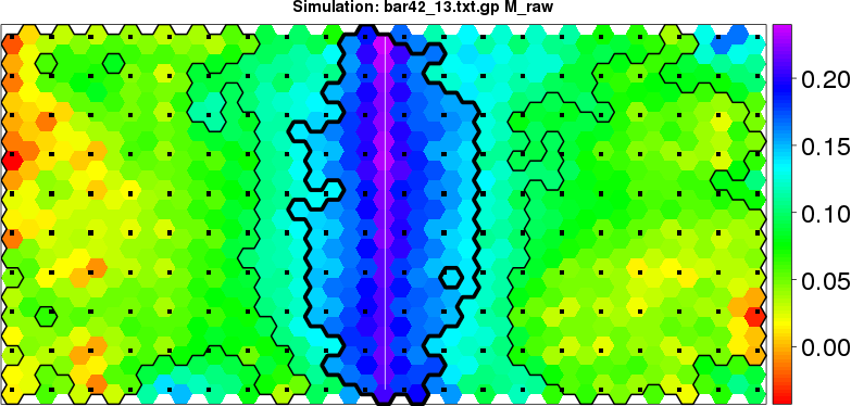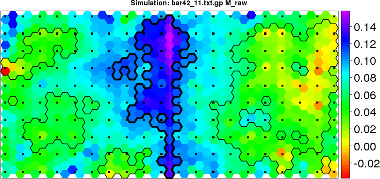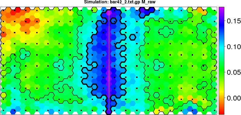 Simulated data | Geographical plots of weighted mean of all ellipse values (i.e., individual genetic distances ar of Rousset 2000) and significant barrier (cells with differentiation values higher than expected under a random distribution (no FDR applied) are materialized with thick black borders) | Idem, Benjamini-Yekutieli FDR applied | MAPI analysis (no FDR applied) with subsampled (75/200) dataset | MAPI analysis (Benjamini-Yekutieli FDR applied) with subsampled (75/200) dataset | Best probability memberships | Probability memberships for cluster 1 | Probability memberships for cluster 2 | Probability memberships for cluster 3 | Probability memberships for cluster 4 | Probability memberships for cluster 5 | Best probability memberships | Probability memberships for cluster 1 | Probability memberships for cluster 2 | Probability memberships for cluster 3 | Probability memberships for cluster 4 | Probability memberships for cluster 5 | Scatter plot showing the first two components of the DAPC (when K*>2) or density plot showing the first principal component of the DAPC (when K*=2) | Probability memberships for cluster 1 | Probability memberships for cluster 2 | Probability memberships for cluster 3 | Probability memberships for cluster 4 | Probability memberships for cluster 5 | Scatter plot showing the first two components of the DAPC (when K*>2) or density plot showing the first principal component of the DAPC (when K*=2) | Probability memberships for cluster 1 | Probability memberships for cluster 2 | Probability memberships for cluster 3 | Probability memberships for cluster 4 | Probability memberships for cluster 5 |