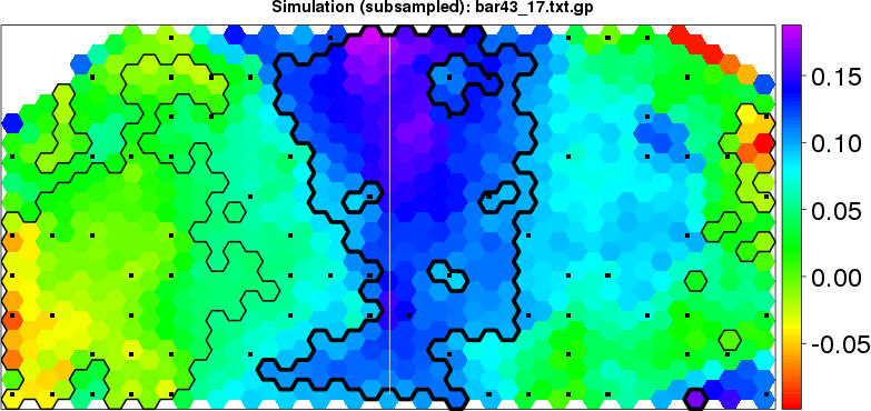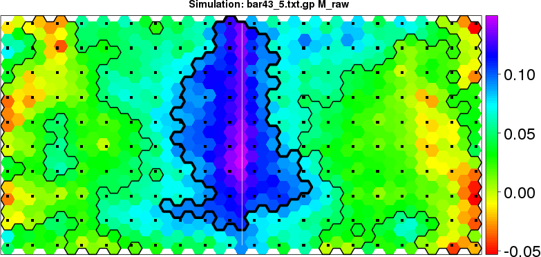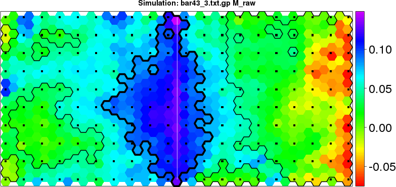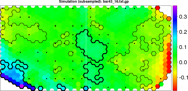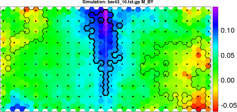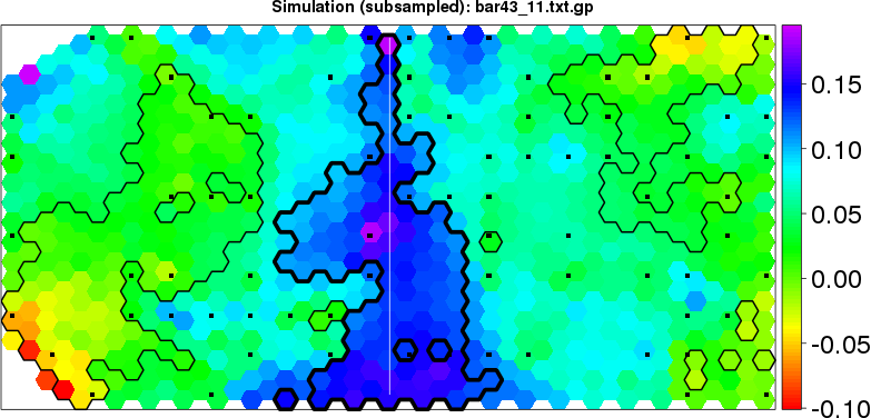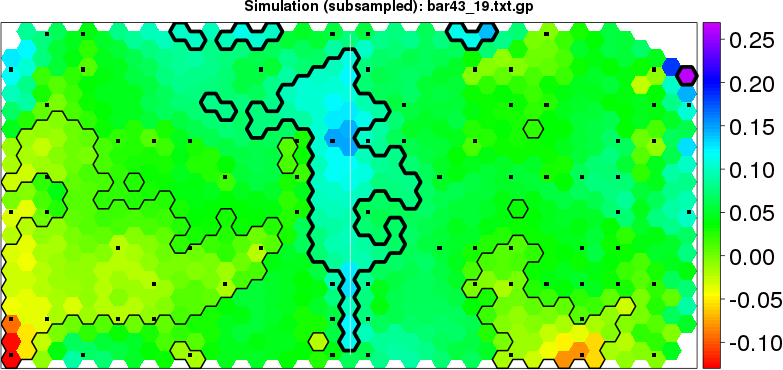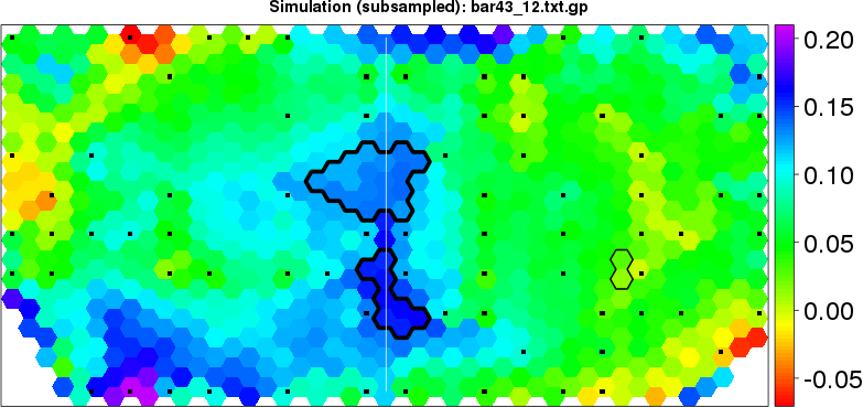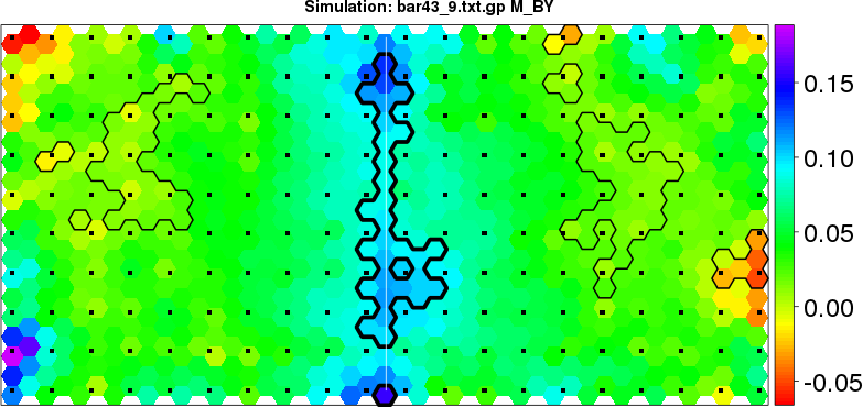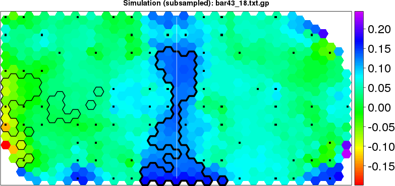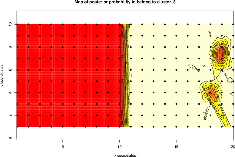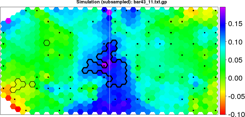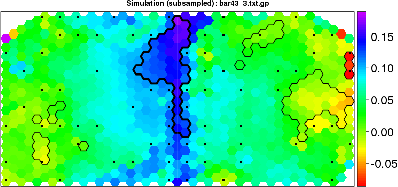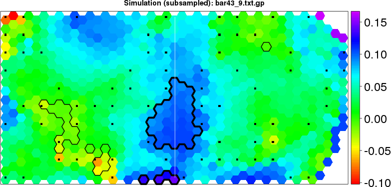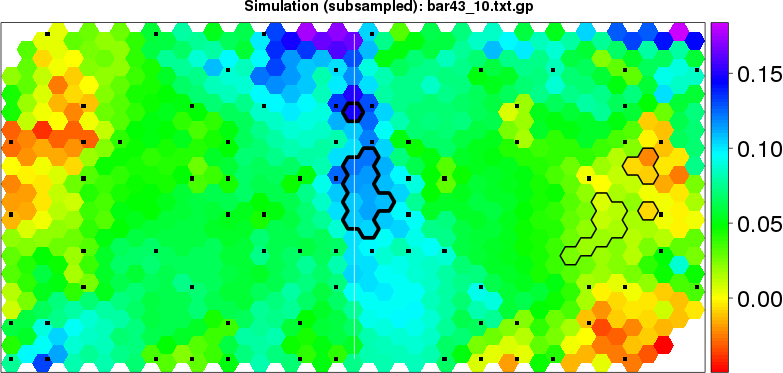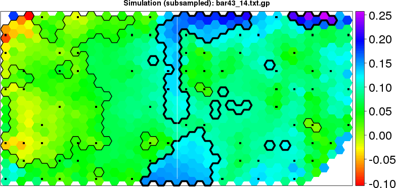 Simulated data | Geographical plots of weighted mean of all ellipse values (i.e., individual genetic distances ar of Rousset 2000) and significant barrier (cells with differentiation values higher than expected under a random distribution (no FDR applied) are materialized with thick black borders) | Idem, Benjamini-Yekutieli FDR applied | MAPI analysis (no FDR applied) with subsampled (75/200) dataset | MAPI analysis (Benjamini-Yekutieli FDR applied) with subsampled (75/200) dataset | Best probability memberships | Probability memberships for cluster 1 | Probability memberships for cluster 2 | Probability memberships for cluster 3 | Probability memberships for cluster 4 | Probability memberships for cluster 5 | Best probability memberships | Probability memberships for cluster 1 | Probability memberships for cluster 2 | Probability memberships for cluster 3 | Probability memberships for cluster 4 | Probability memberships for cluster 5 | Scatter plot showing the first two components of the DAPC (when K*>2) or density plot showing the first principal component of the DAPC (when K*=2) | Probability memberships for cluster 1 | Probability memberships for cluster 2 | Probability memberships for cluster 3 | Probability memberships for cluster 4 | Probability memberships for cluster 5 | Scatter plot showing the first two components of the DAPC (when K*>2) or density plot showing the first principal component of the DAPC (when K*=2) | Probability memberships for cluster 1 | Probability memberships for cluster 2 | Probability memberships for cluster 3 | Probability memberships for cluster 4 | Probability memberships for cluster 5 |