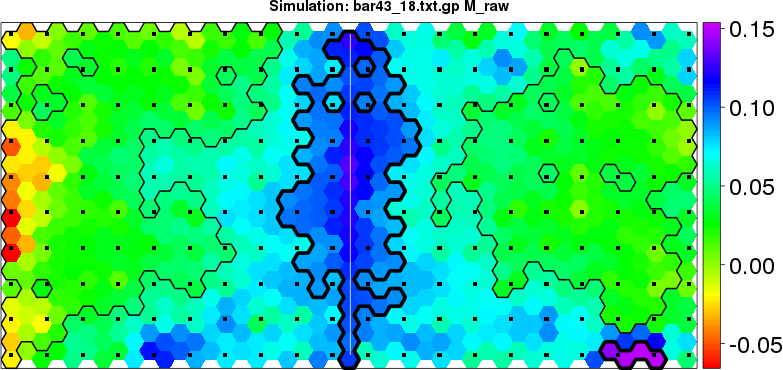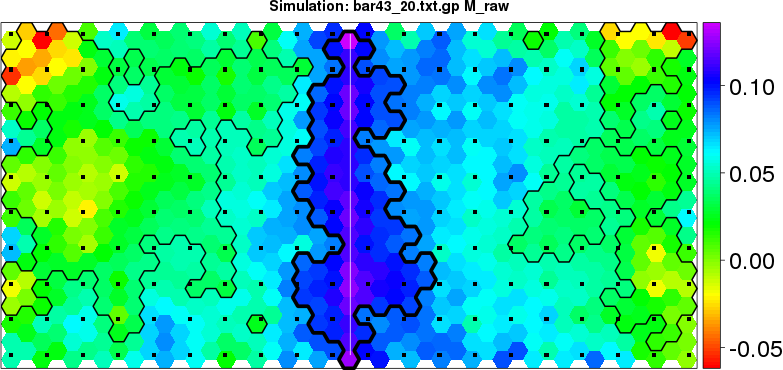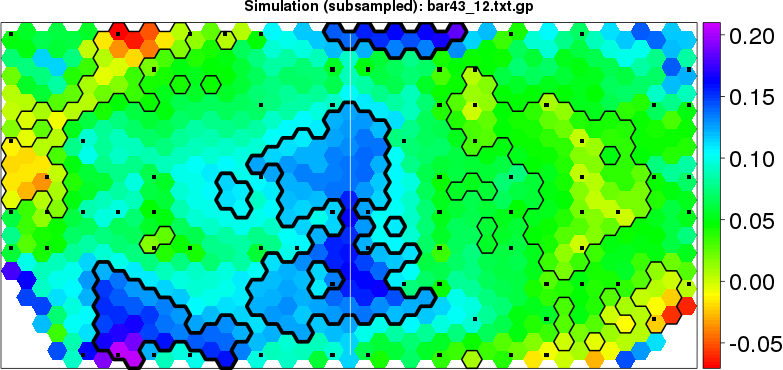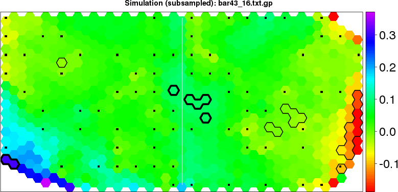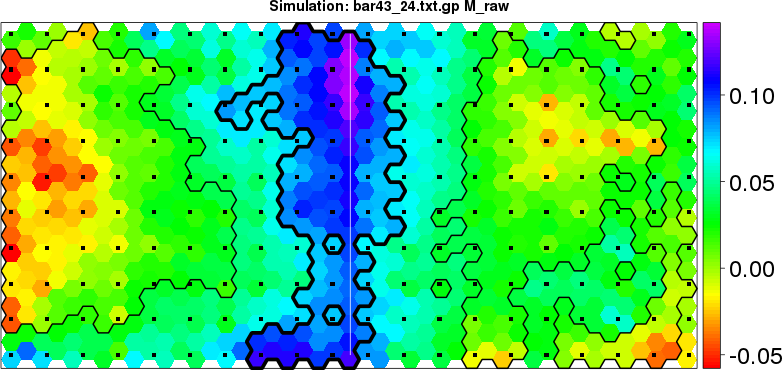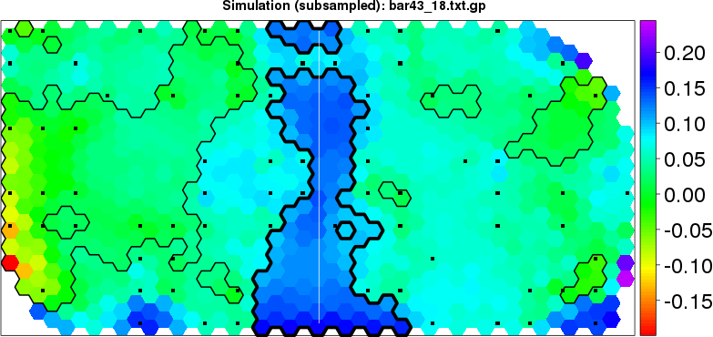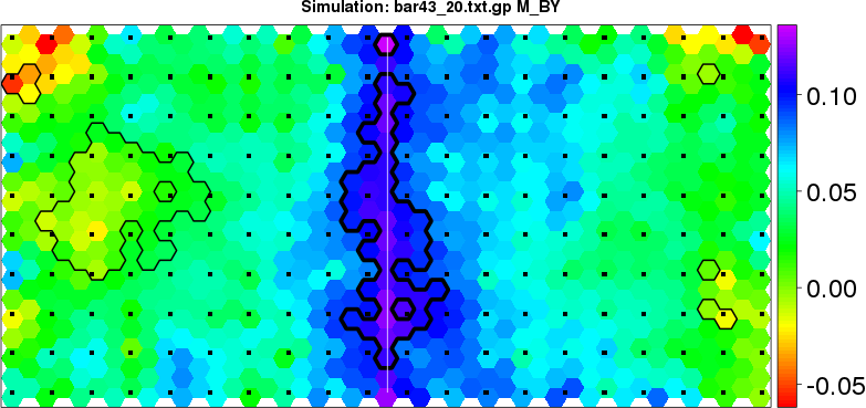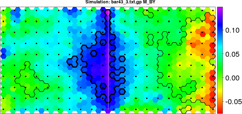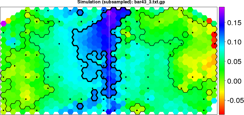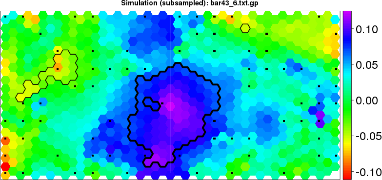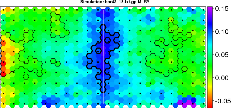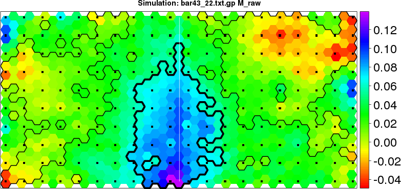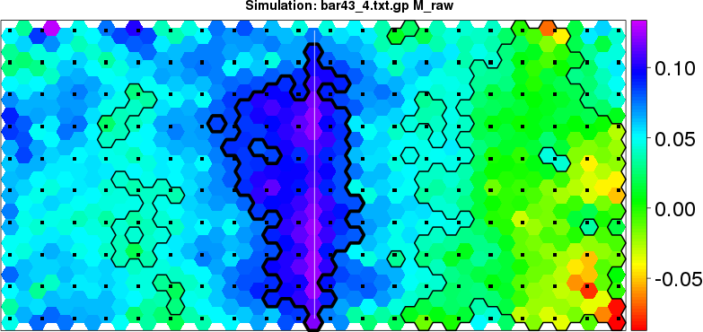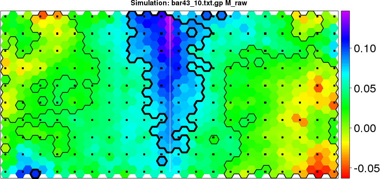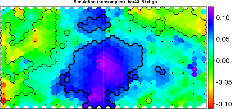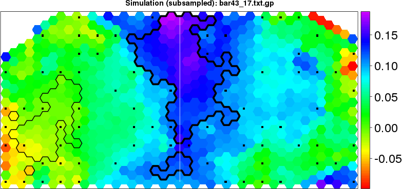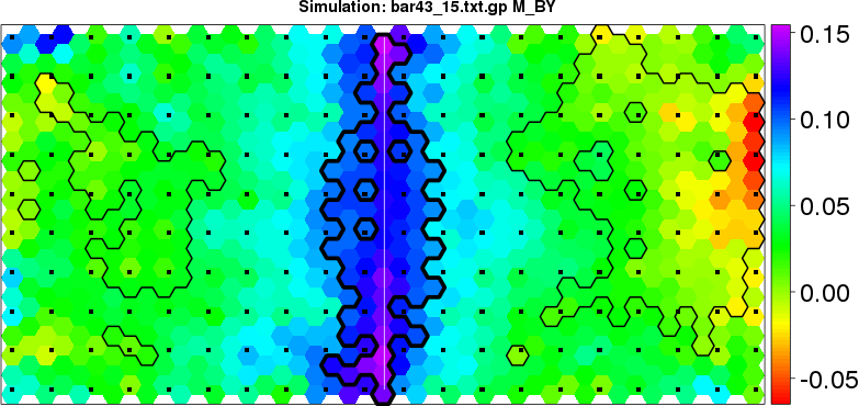 Simulated data | Geographical plots of weighted mean of all ellipse values (i.e., individual genetic distances ar of Rousset 2000) and significant barrier (cells with differentiation values higher than expected under a random distribution (no FDR applied) are materialized with thick black borders) | Idem, Benjamini-Yekutieli FDR applied | MAPI analysis (no FDR applied) with subsampled (75/200) dataset | MAPI analysis (Benjamini-Yekutieli FDR applied) with subsampled (75/200) dataset | Best probability memberships | Probability memberships for cluster 1 | Probability memberships for cluster 2 | Probability memberships for cluster 3 | Probability memberships for cluster 4 | Probability memberships for cluster 5 | Best probability memberships | Probability memberships for cluster 1 | Probability memberships for cluster 2 | Probability memberships for cluster 3 | Probability memberships for cluster 4 | Probability memberships for cluster 5 | Scatter plot showing the first two components of the DAPC (when K*>2) or density plot showing the first principal component of the DAPC (when K*=2) | Probability memberships for cluster 1 | Probability memberships for cluster 2 | Probability memberships for cluster 3 | Probability memberships for cluster 4 | Probability memberships for cluster 5 | Scatter plot showing the first two components of the DAPC (when K*>2) or density plot showing the first principal component of the DAPC (when K*=2) | Probability memberships for cluster 1 | Probability memberships for cluster 2 | Probability memberships for cluster 3 | Probability memberships for cluster 4 | Probability memberships for cluster 5 |