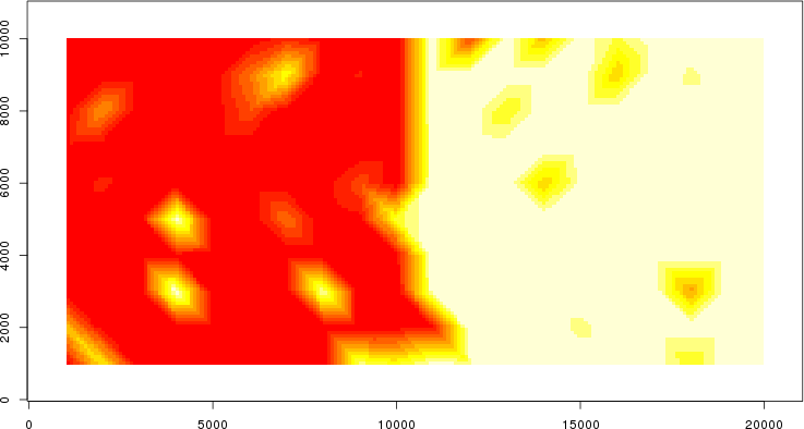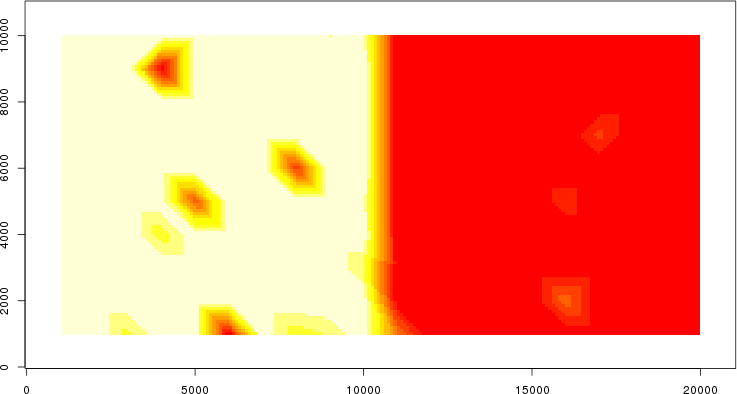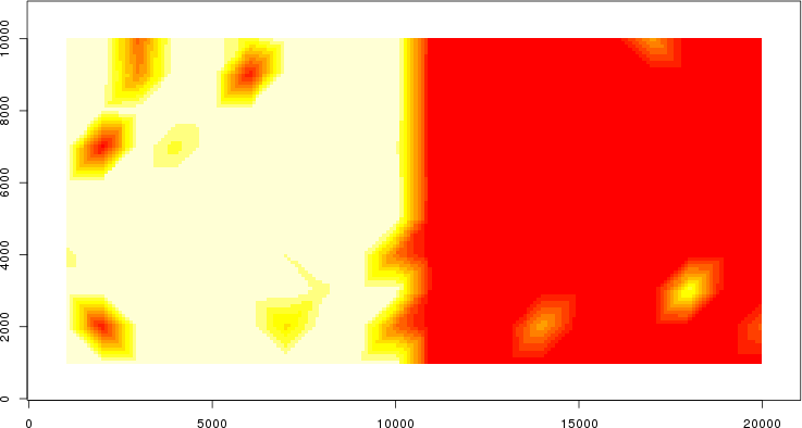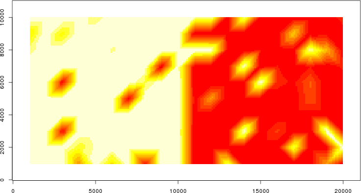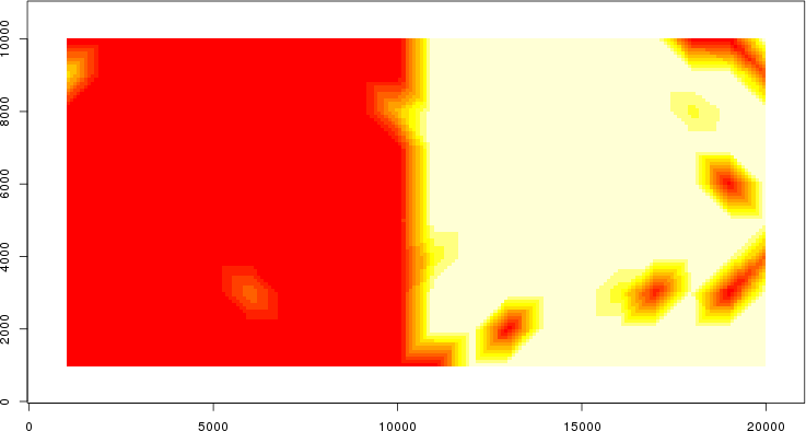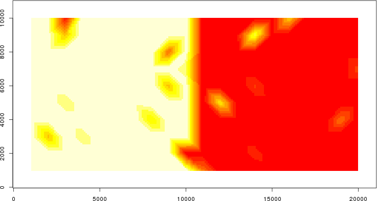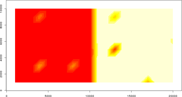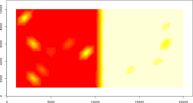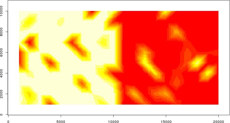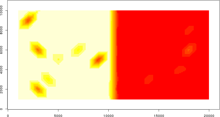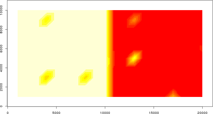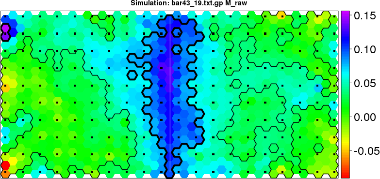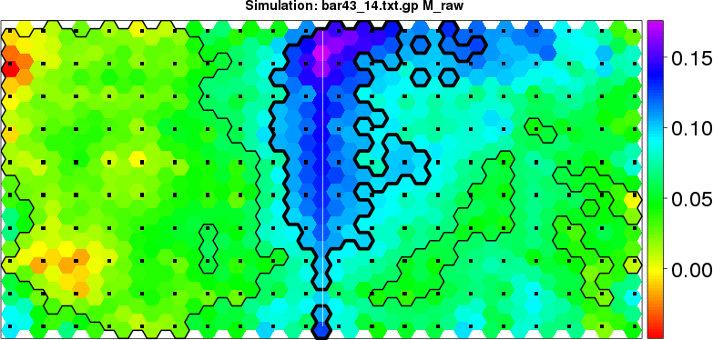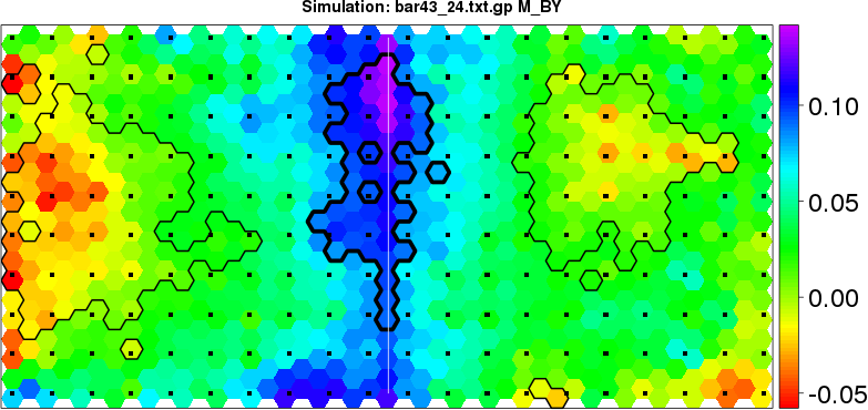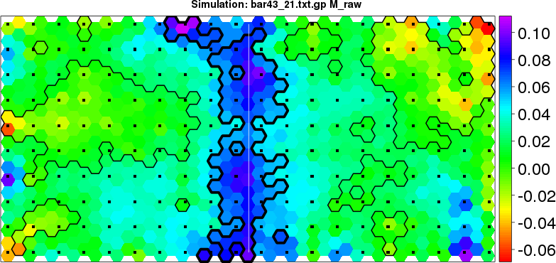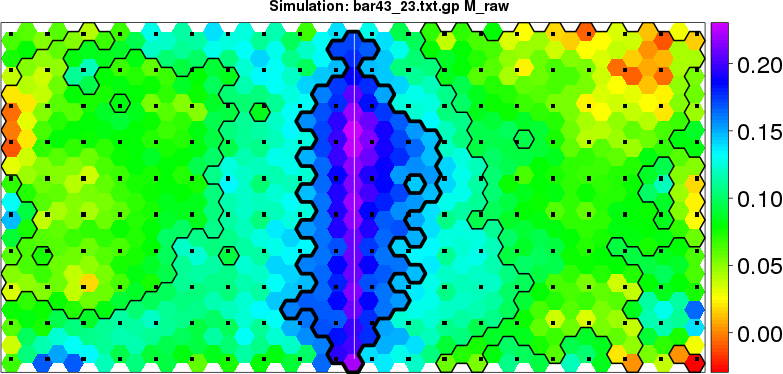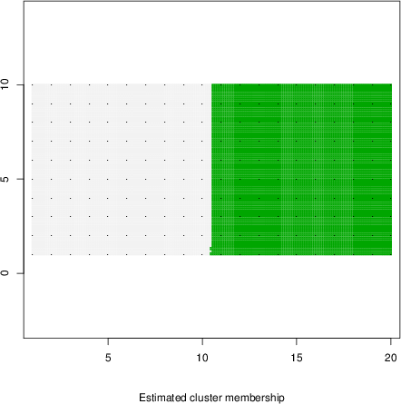 Simulated data | Geographical plots of weighted mean of all ellipse values (i.e., individual genetic distances ar of Rousset 2000) and significant barrier (cells with differentiation values higher than expected under a random distribution (no FDR applied) are materialized with thick black borders) | Idem, Benjamini-Yekutieli FDR applied | MAPI analysis (no FDR applied) with subsampled (75/200) dataset | MAPI analysis (Benjamini-Yekutieli FDR applied) with subsampled (75/200) dataset | Best probability memberships | Probability memberships for cluster 1 | Probability memberships for cluster 2 | Probability memberships for cluster 3 | Probability memberships for cluster 4 | Probability memberships for cluster 5 | Best probability memberships | Probability memberships for cluster 1 | Probability memberships for cluster 2 | Probability memberships for cluster 3 | Probability memberships for cluster 4 | Probability memberships for cluster 5 | Scatter plot showing the first two components of the DAPC (when K*>2) or density plot showing the first principal component of the DAPC (when K*=2) | Probability memberships for cluster 1 | Probability memberships for cluster 2 | Probability memberships for cluster 3 | Probability memberships for cluster 4 | Probability memberships for cluster 5 | Scatter plot showing the first two components of the DAPC (when K*>2) or density plot showing the first principal component of the DAPC (when K*=2) | Probability memberships for cluster 1 | Probability memberships for cluster 2 | Probability memberships for cluster 3 | Probability memberships for cluster 4 | Probability memberships for cluster 5 |