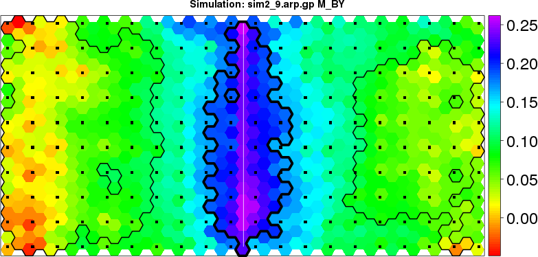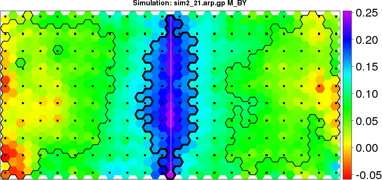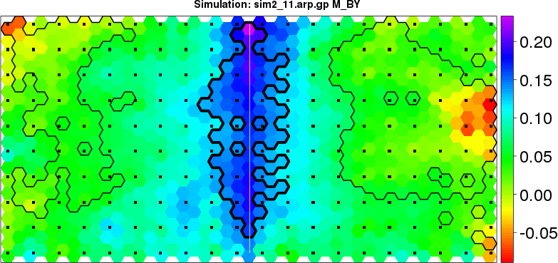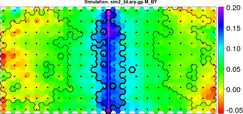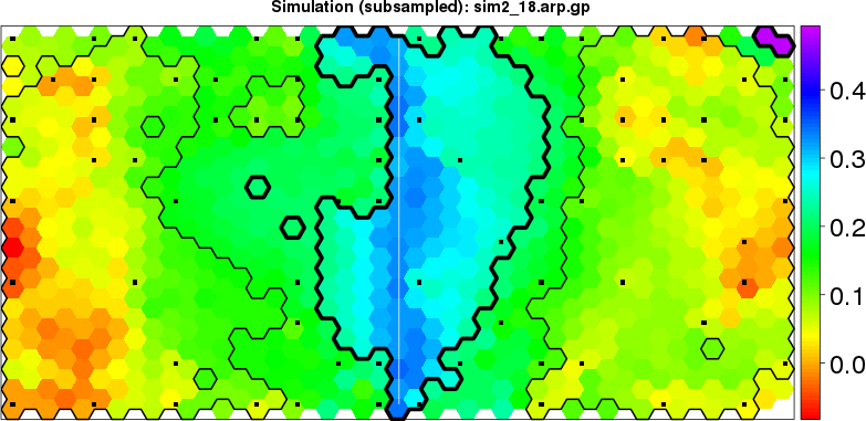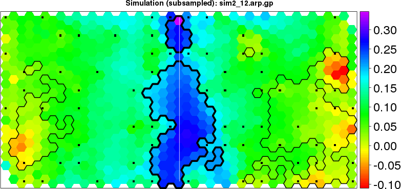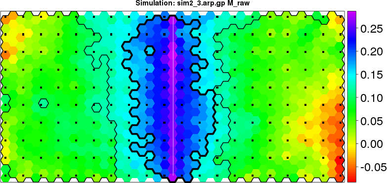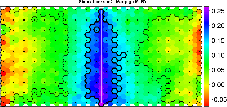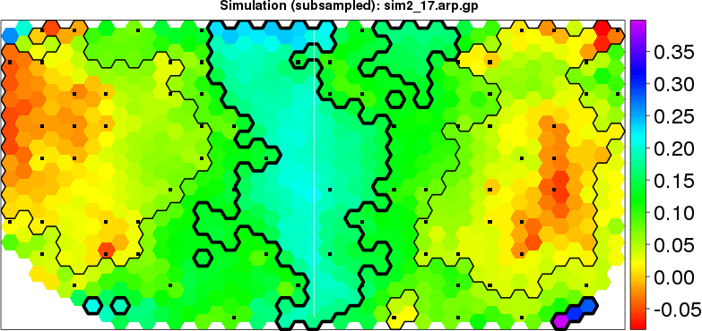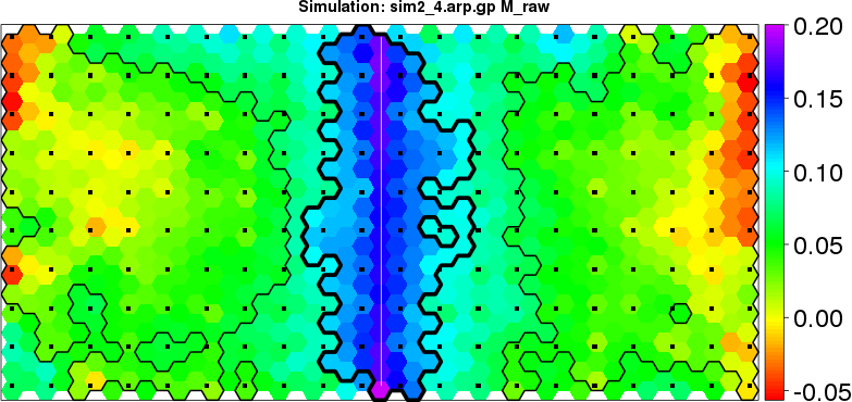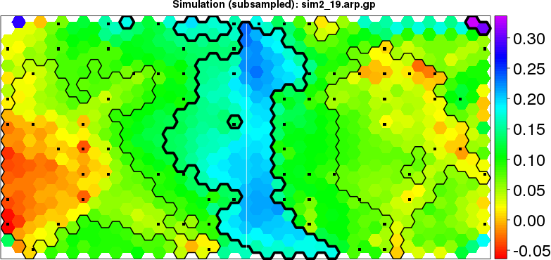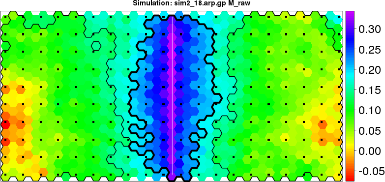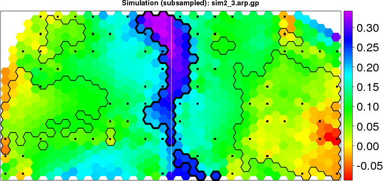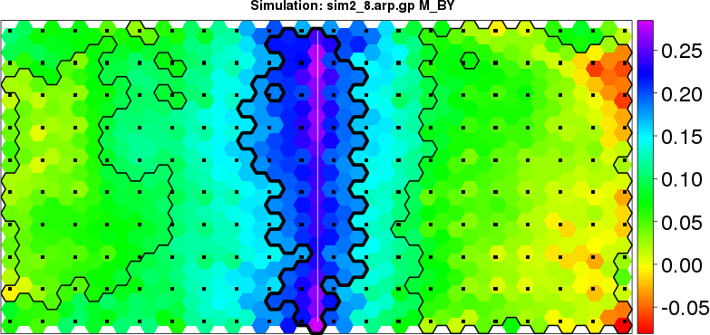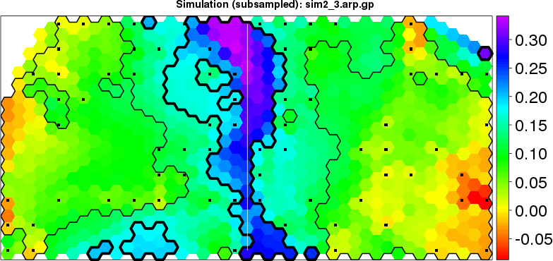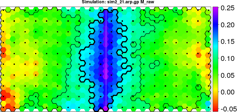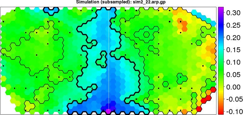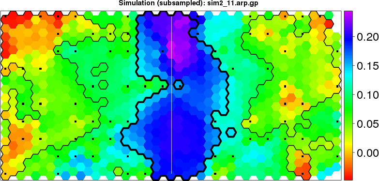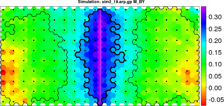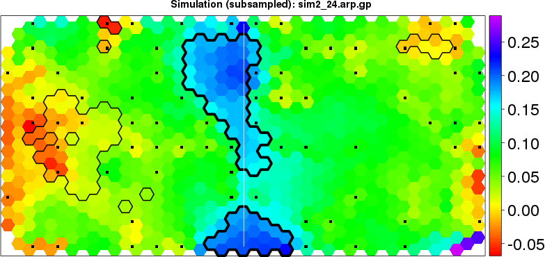 Simulated data | Geographical plots of weighted mean of all ellipse values (i.e., individual genetic distances ar of Rousset 2000) and significant barrier (cells with differentiation values higher than expected under a random distribution (no FDR applied) are materialized with thick black borders) | Idem, Benjamini-Yekutieli FDR applied | MAPI analysis (no FDR applied) with subsampled (75/200) dataset | MAPI analysis (Benjamini-Yekutieli FDR applied) with subsampled (75/200) dataset | Best probability memberships | Probability memberships for cluster 1 | Probability memberships for cluster 2 | Probability memberships for cluster 3 | Probability memberships for cluster 4 | Probability memberships for cluster 5 | Best probability memberships | Probability memberships for cluster 1 | Probability memberships for cluster 2 | Probability memberships for cluster 3 | Probability memberships for cluster 4 | Probability memberships for cluster 5 | Scatter plot showing the first two components of the DAPC (when K*>2) or density plot showing the first principal component of the DAPC (when K*=2) | Probability memberships for cluster 1 | Probability memberships for cluster 2 | Probability memberships for cluster 3 | Probability memberships for cluster 4 | Probability memberships for cluster 5 | Scatter plot showing the first two components of the DAPC (when K*>2) or density plot showing the first principal component of the DAPC (when K*=2) | Probability memberships for cluster 1 | Probability memberships for cluster 2 | Probability memberships for cluster 3 | Probability memberships for cluster 4 | Probability memberships for cluster 5 |