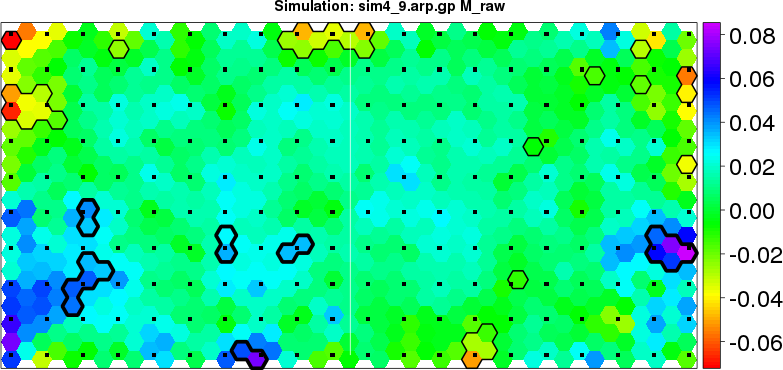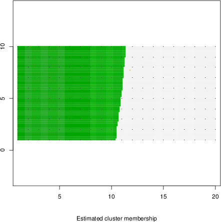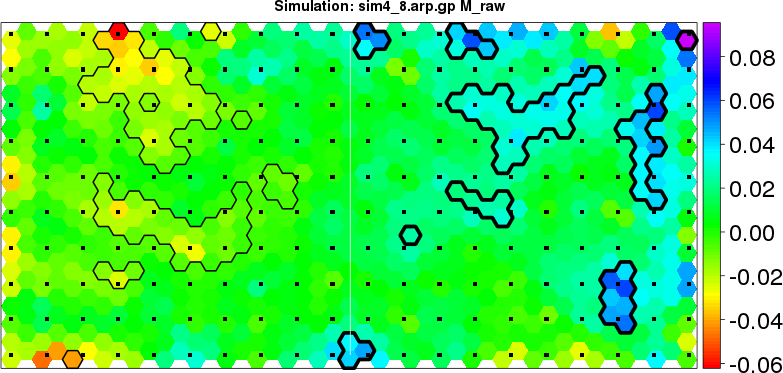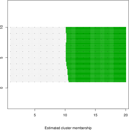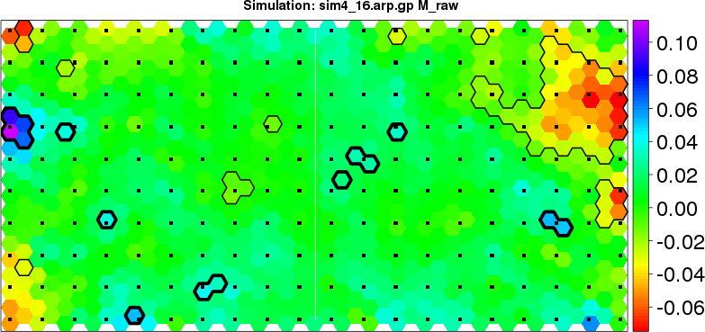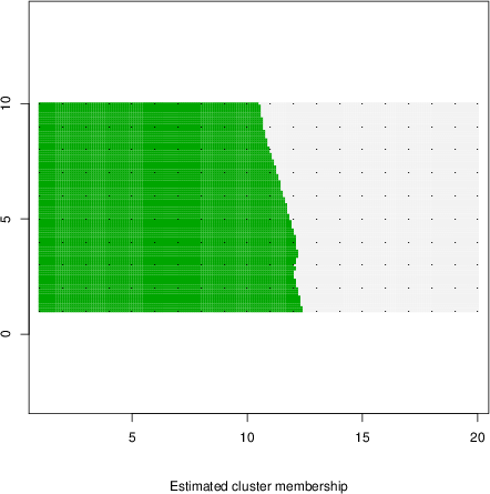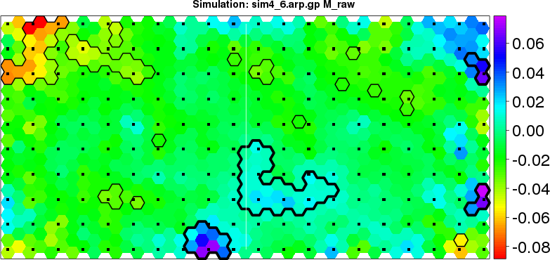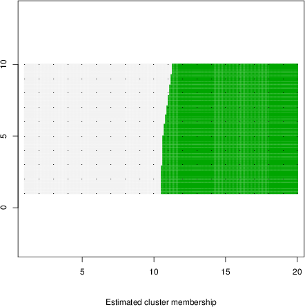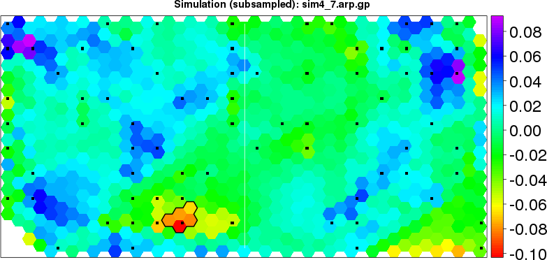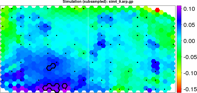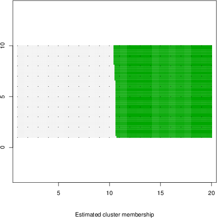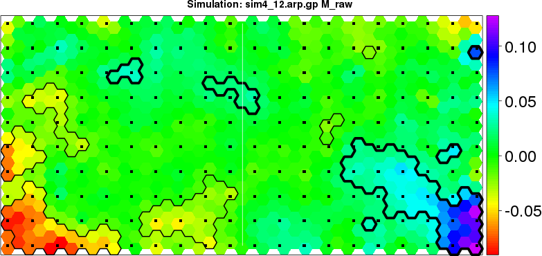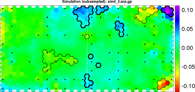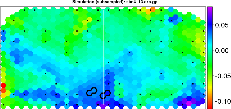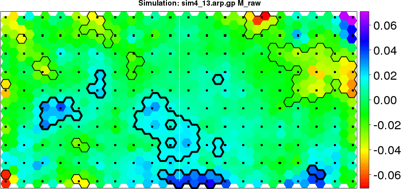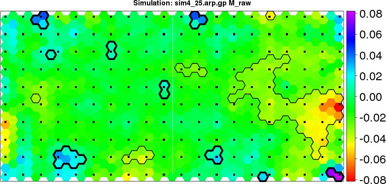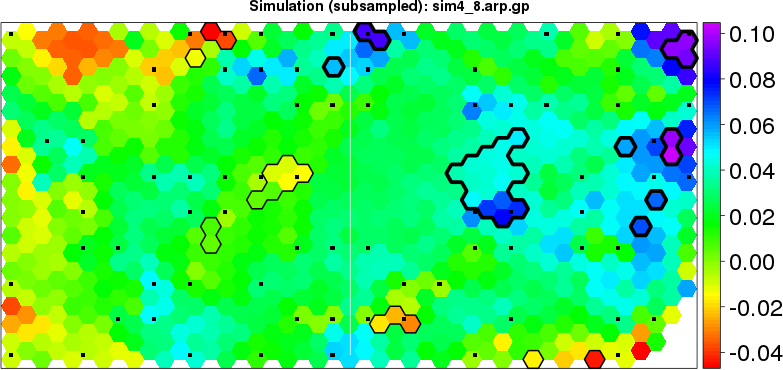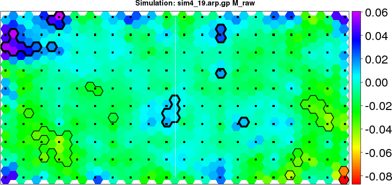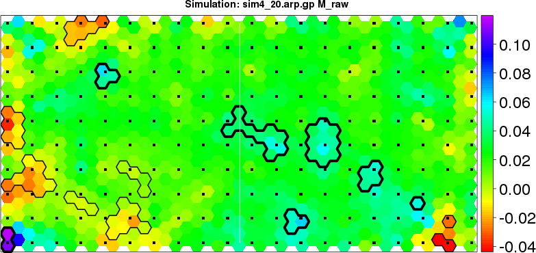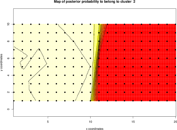 Simulated data | Geographical plots of weighted mean of all ellipse values (i.e., individual genetic distances ar of Rousset 2000) and significant barrier (cells with differentiation values higher than expected under a random distribution (no FDR applied) are materialized with thick black borders) | Idem, Benjamini-Yekutieli FDR applied | MAPI analysis (no FDR applied) with subsampled (75/200) dataset | MAPI analysis (Benjamini-Yekutieli FDR applied) with subsampled (75/200) dataset | Best probability memberships | Probability memberships for cluster 1 | Probability memberships for cluster 2 | Probability memberships for cluster 3 | Probability memberships for cluster 4 | Probability memberships for cluster 5 | Best probability memberships | Probability memberships for cluster 1 | Probability memberships for cluster 2 | Probability memberships for cluster 3 | Probability memberships for cluster 4 | Probability memberships for cluster 5 | Scatter plot showing the first two components of the DAPC (when K*>2) or density plot showing the first principal component of the DAPC (when K*=2) | Probability memberships for cluster 1 | Probability memberships for cluster 2 | Probability memberships for cluster 3 | Probability memberships for cluster 4 | Probability memberships for cluster 5 | Scatter plot showing the first two components of the DAPC (when K*>2) or density plot showing the first principal component of the DAPC (when K*=2) | Probability memberships for cluster 1 | Probability memberships for cluster 2 | Probability memberships for cluster 3 | Probability memberships for cluster 4 | Probability memberships for cluster 5 |
