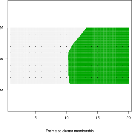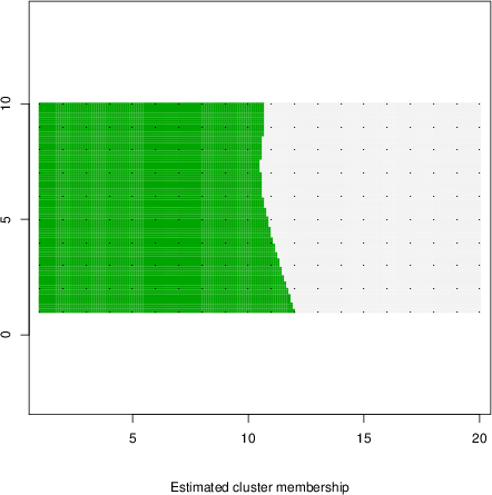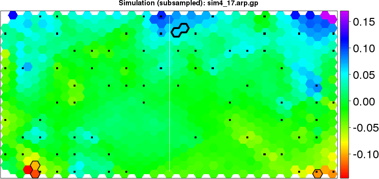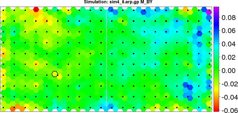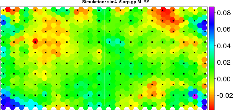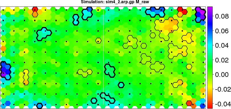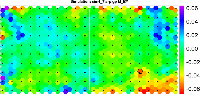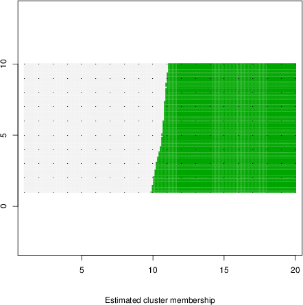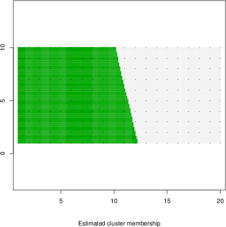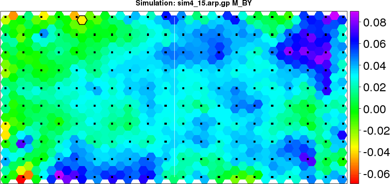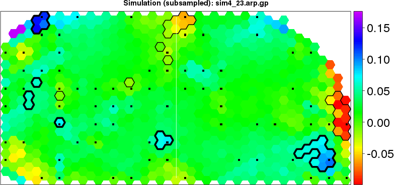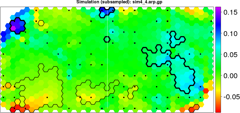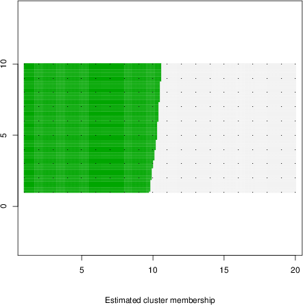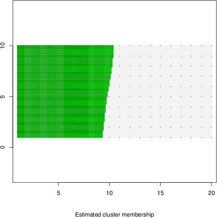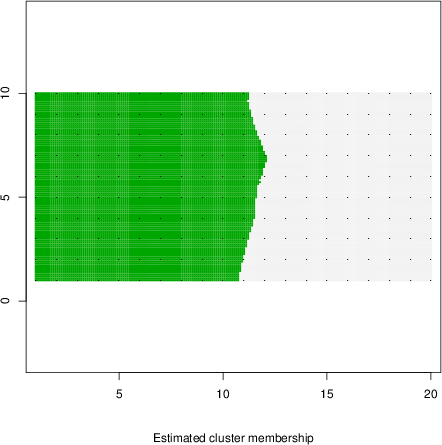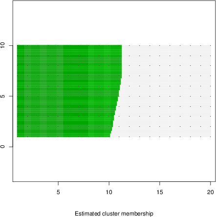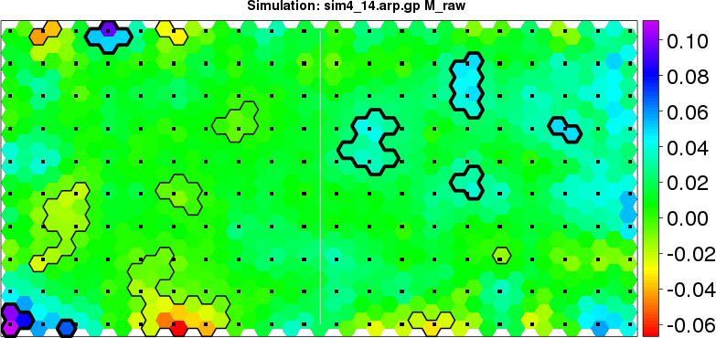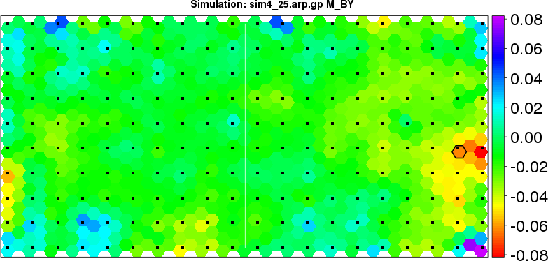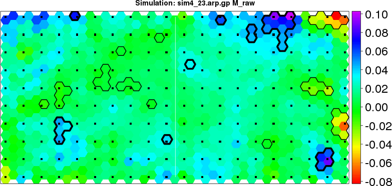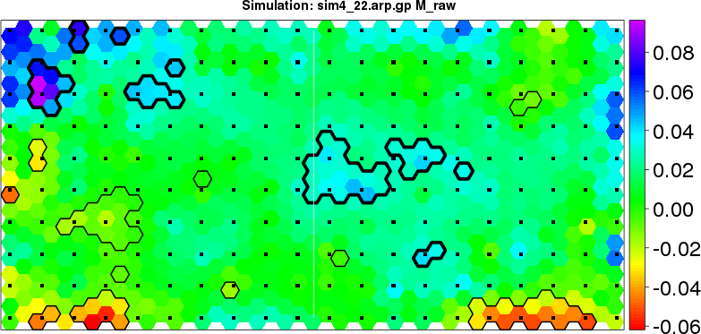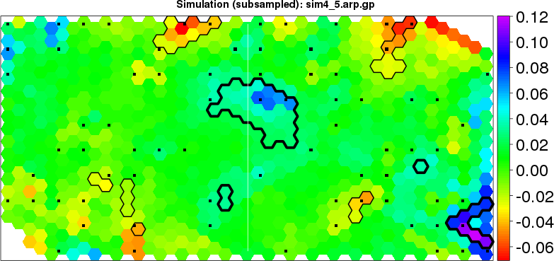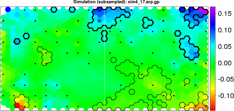 Simulated data | Geographical plots of weighted mean of all ellipse values (i.e., individual genetic distances ar of Rousset 2000) and significant barrier (cells with differentiation values higher than expected under a random distribution (no FDR applied) are materialized with thick black borders) | Idem, Benjamini-Yekutieli FDR applied | MAPI analysis (no FDR applied) with subsampled (75/200) dataset | MAPI analysis (Benjamini-Yekutieli FDR applied) with subsampled (75/200) dataset | Best probability memberships | Probability memberships for cluster 1 | Probability memberships for cluster 2 | Probability memberships for cluster 3 | Probability memberships for cluster 4 | Probability memberships for cluster 5 | Best probability memberships | Probability memberships for cluster 1 | Probability memberships for cluster 2 | Probability memberships for cluster 3 | Probability memberships for cluster 4 | Probability memberships for cluster 5 | Scatter plot showing the first two components of the DAPC (when K*>2) or density plot showing the first principal component of the DAPC (when K*=2) | Probability memberships for cluster 1 | Probability memberships for cluster 2 | Probability memberships for cluster 3 | Probability memberships for cluster 4 | Probability memberships for cluster 5 | Scatter plot showing the first two components of the DAPC (when K*>2) or density plot showing the first principal component of the DAPC (when K*=2) | Probability memberships for cluster 1 | Probability memberships for cluster 2 | Probability memberships for cluster 3 | Probability memberships for cluster 4 | Probability memberships for cluster 5 |