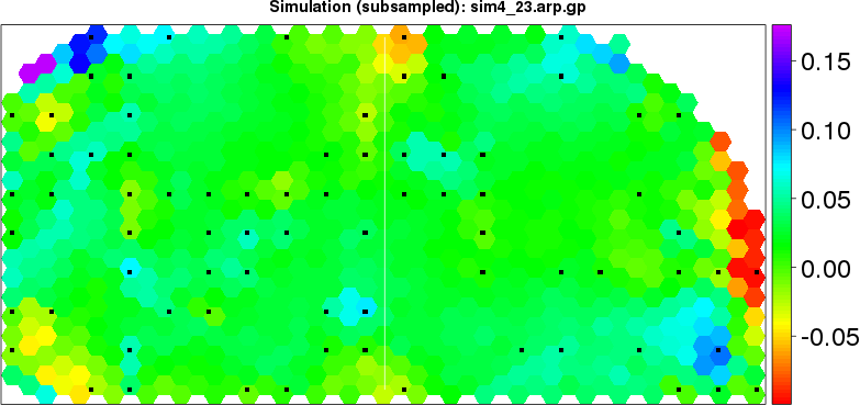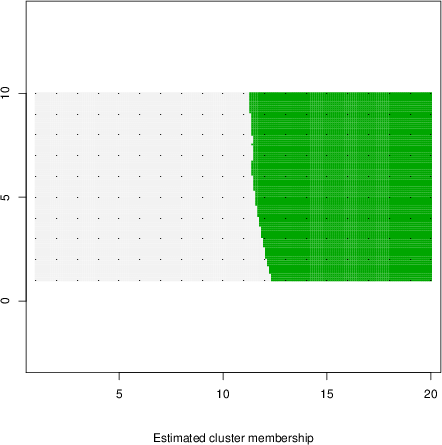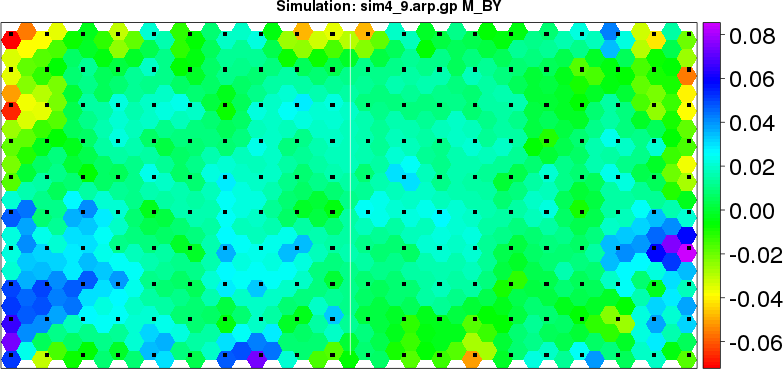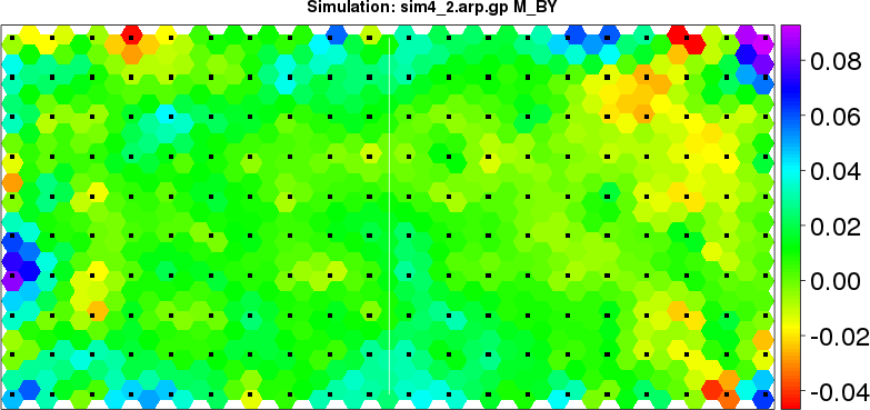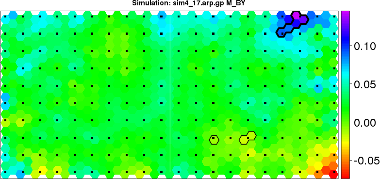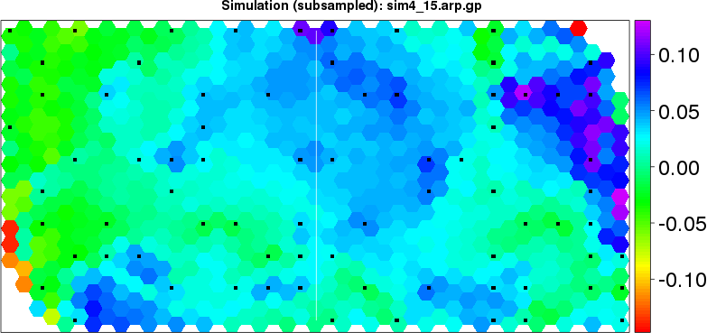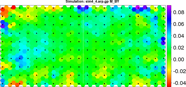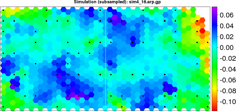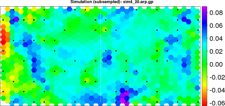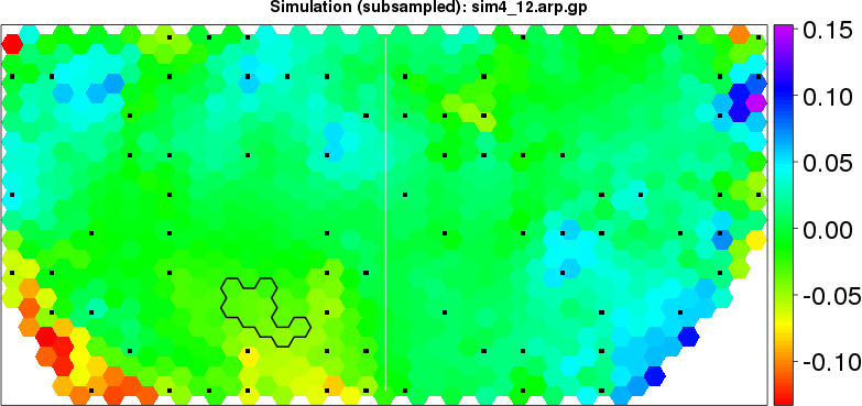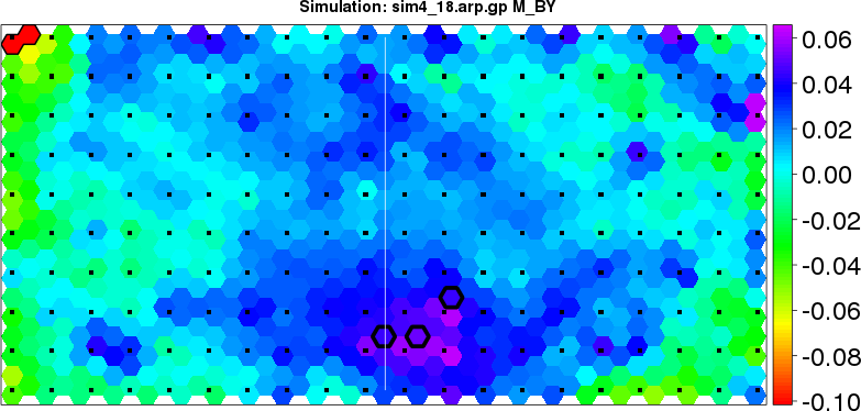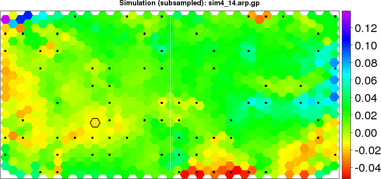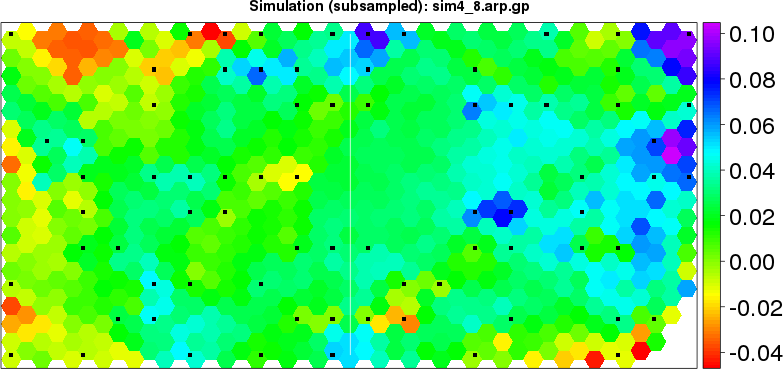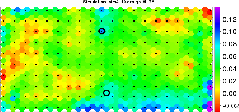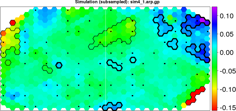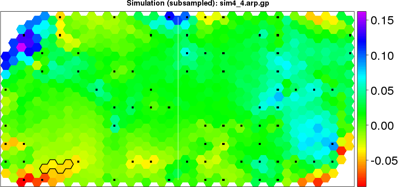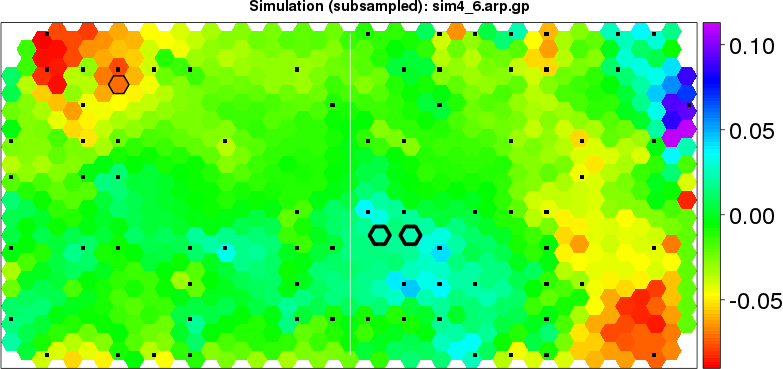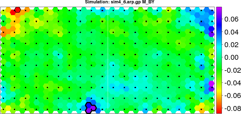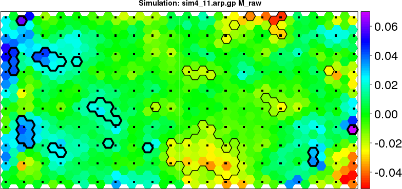 Simulated data | Geographical plots of weighted mean of all ellipse values (i.e., individual genetic distances ar of Rousset 2000) and significant barrier (cells with differentiation values higher than expected under a random distribution (no FDR applied) are materialized with thick black borders) | Idem, Benjamini-Yekutieli FDR applied | MAPI analysis (no FDR applied) with subsampled (75/200) dataset | MAPI analysis (Benjamini-Yekutieli FDR applied) with subsampled (75/200) dataset | Best probability memberships | Probability memberships for cluster 1 | Probability memberships for cluster 2 | Probability memberships for cluster 3 | Probability memberships for cluster 4 | Probability memberships for cluster 5 | Best probability memberships | Probability memberships for cluster 1 | Probability memberships for cluster 2 | Probability memberships for cluster 3 | Probability memberships for cluster 4 | Probability memberships for cluster 5 | Scatter plot showing the first two components of the DAPC (when K*>2) or density plot showing the first principal component of the DAPC (when K*=2) | Probability memberships for cluster 1 | Probability memberships for cluster 2 | Probability memberships for cluster 3 | Probability memberships for cluster 4 | Probability memberships for cluster 5 | Scatter plot showing the first two components of the DAPC (when K*>2) or density plot showing the first principal component of the DAPC (when K*=2) | Probability memberships for cluster 1 | Probability memberships for cluster 2 | Probability memberships for cluster 3 | Probability memberships for cluster 4 | Probability memberships for cluster 5 |