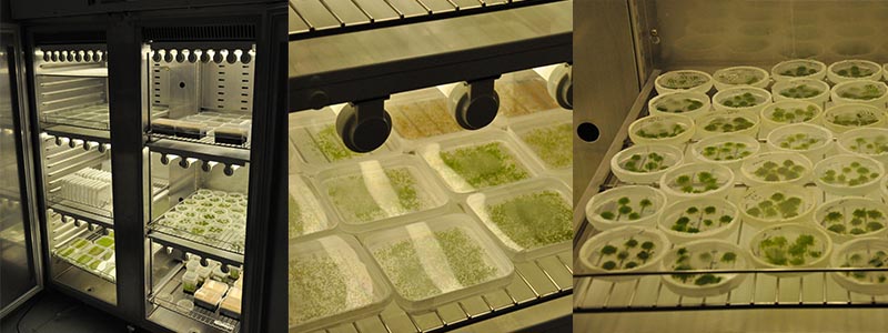 - 4 armoires de culture dédiées à la culture in vitro permettant un contrôle rigoureux des conditions climatiques qui y sont appliquées.